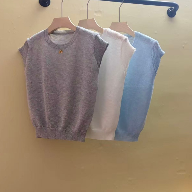 0262 여름 얇고 가벼운 통기성 오래된 돈 라운드 넥 슬림해 보이는 반팔 니트 스웨터