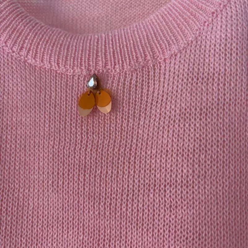 라운드 넥 2026 여름 신제품 반팔 자수 장식 티셔츠 니트 통기성 풀오버