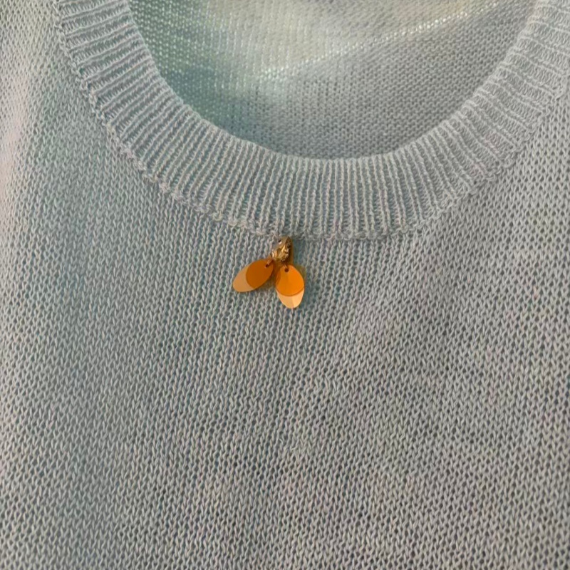mz 작은 키 레이스 꽃 장식 항공기 소매 26 여름 신제품 아마 라운드 넥 여성 티셔츠 니트 스웨터