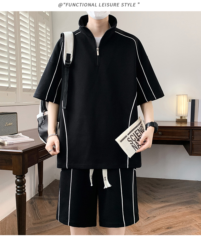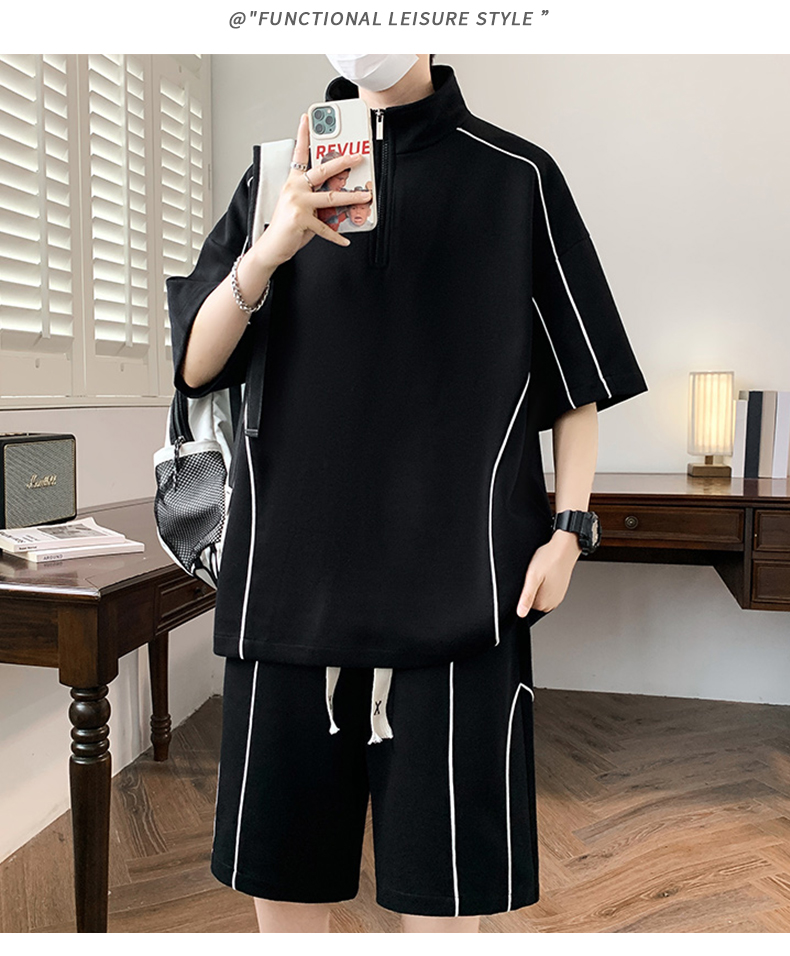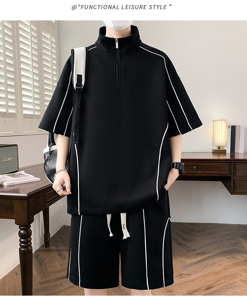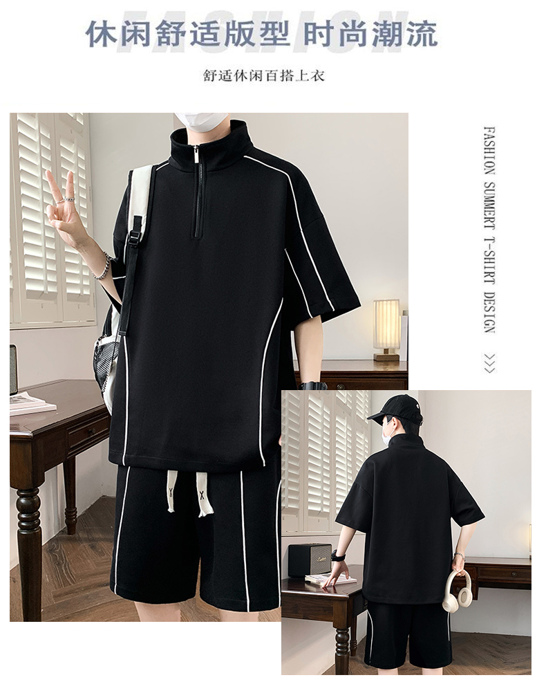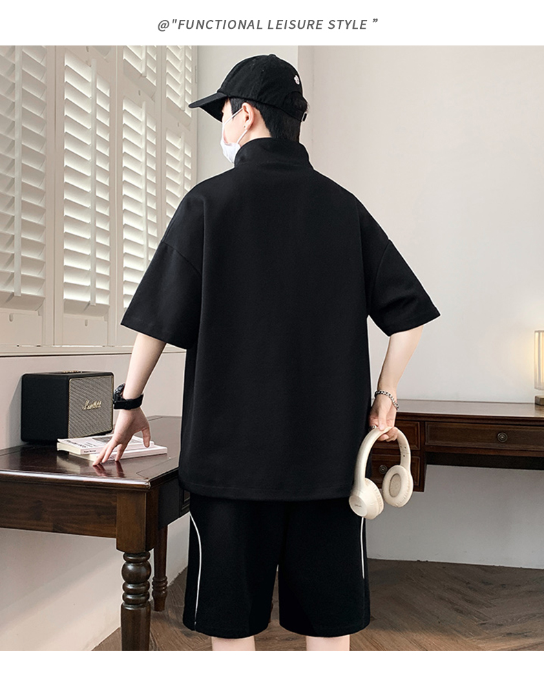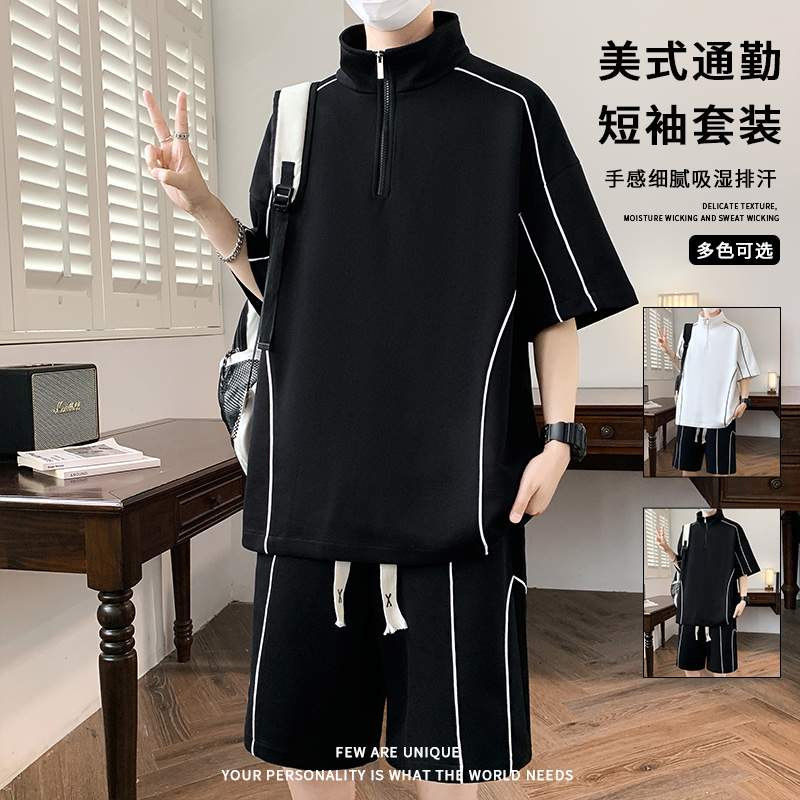 여름 신제품 스포츠 슈트 남성 실행 페이스 건조한 라운드 넥 반팔 티셔츠 루즈핏 연주 중 훈련 서비스 투피스 세트