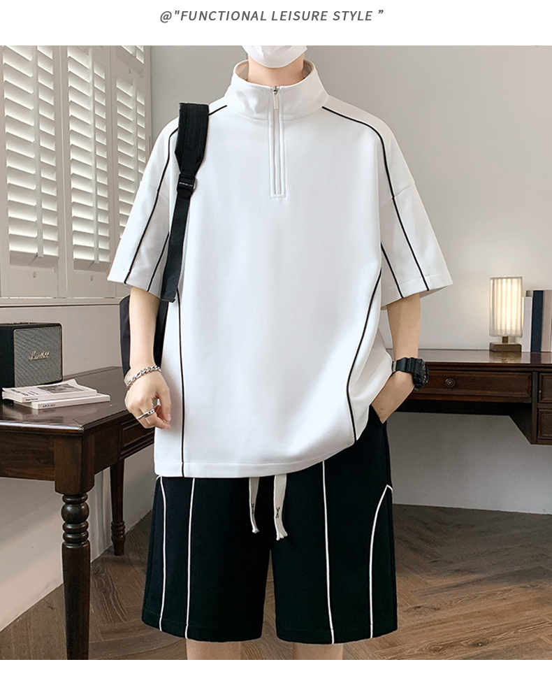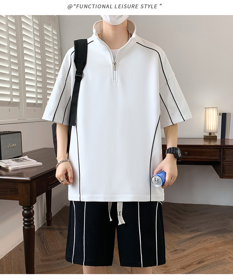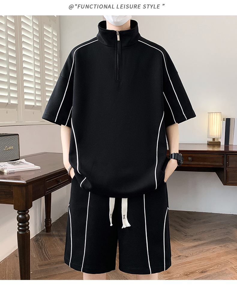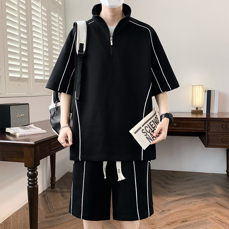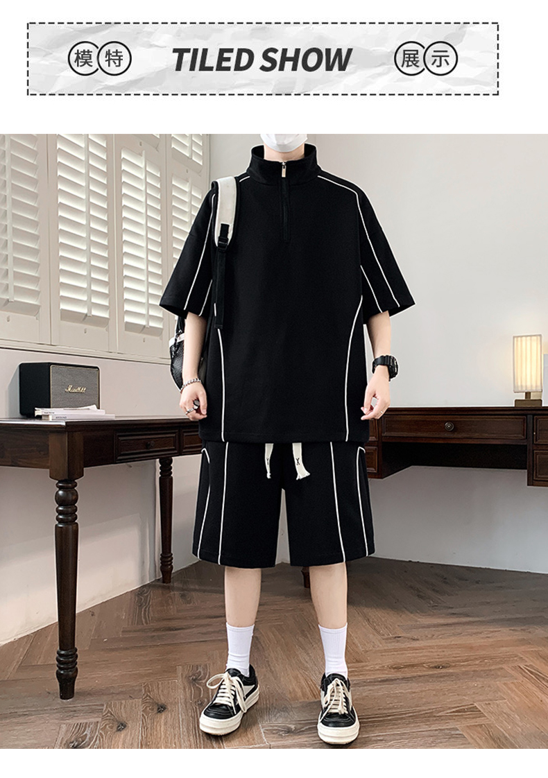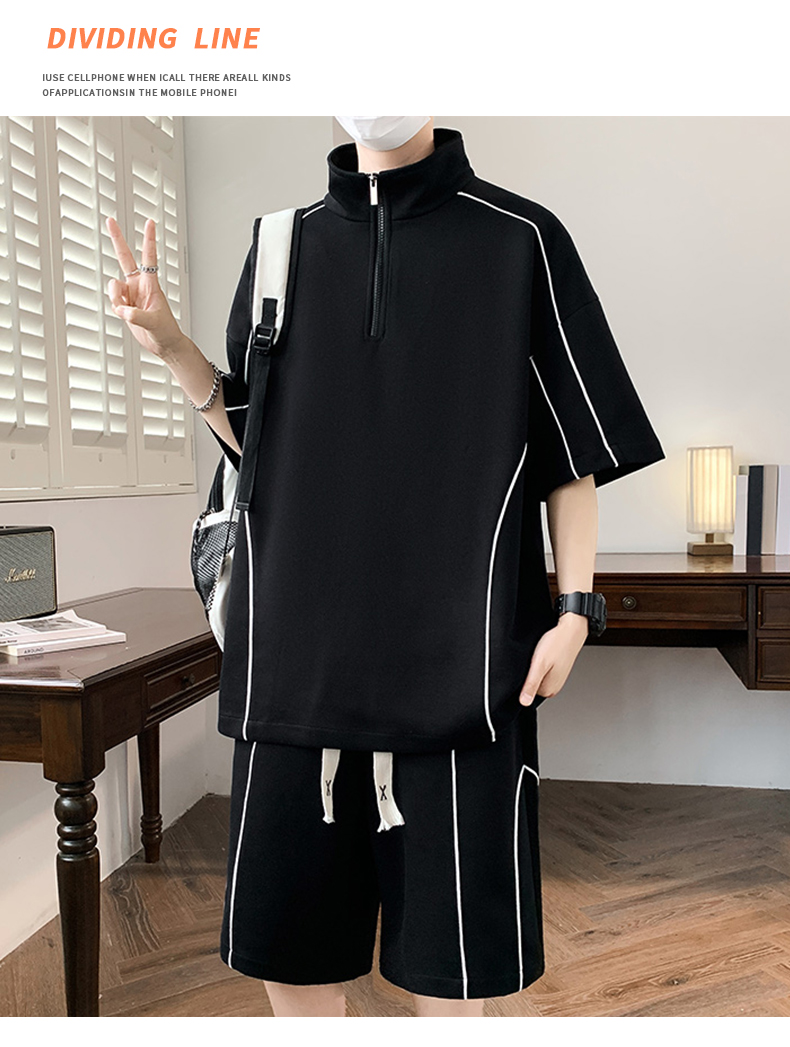 여름 신제품 스포츠 슈트 남성 실행 페이스 건조한 라운드 넥 반팔 티셔츠 루즈핏 연주 중 훈련 서비스 투피스 세트
