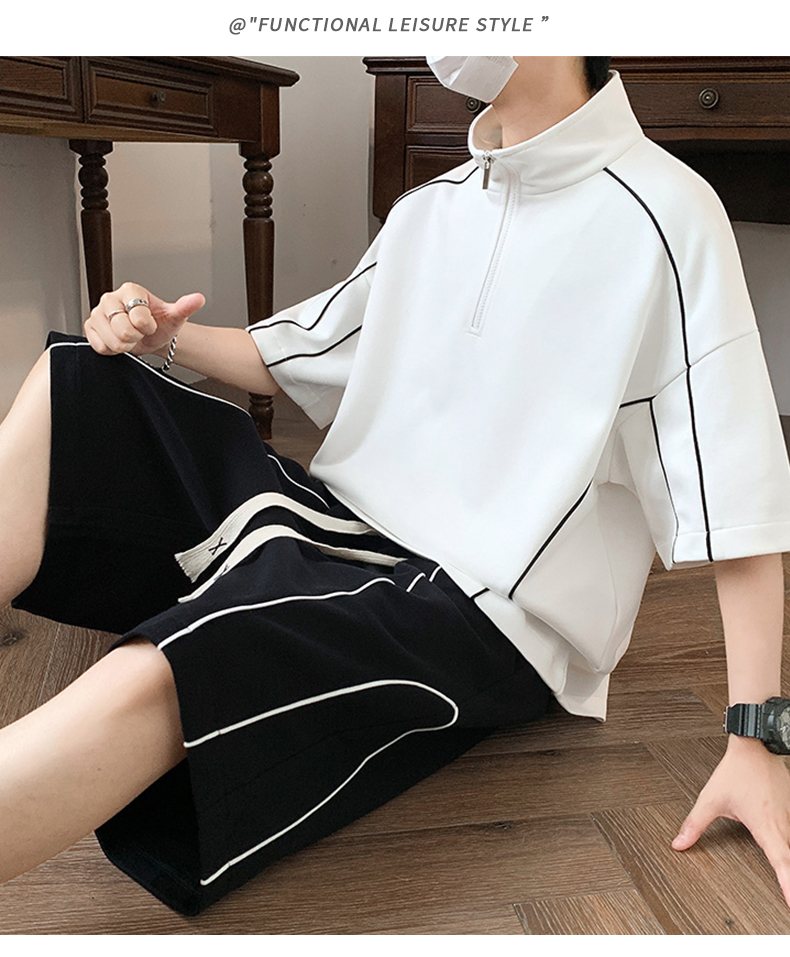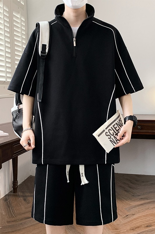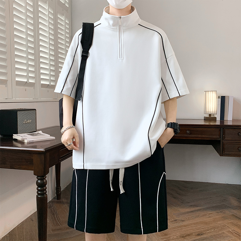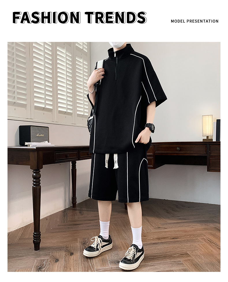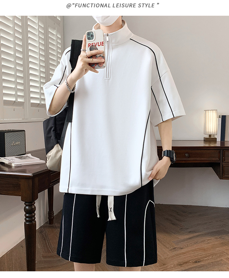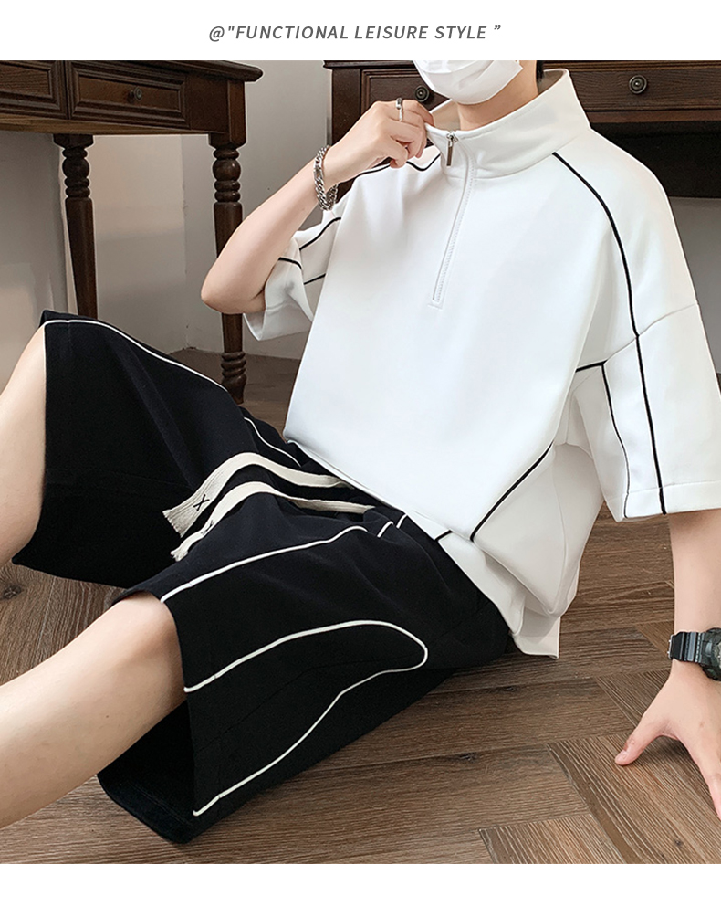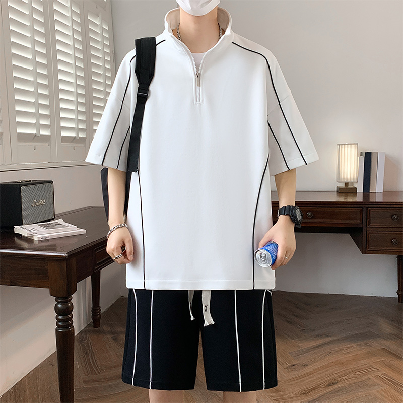 여름 신제품 스포츠 슈트 남성 실행 페이스 건조한 라운드 넥 반팔 티셔츠 루즈핏 연주 중 훈련 서비스 투피스 세트
