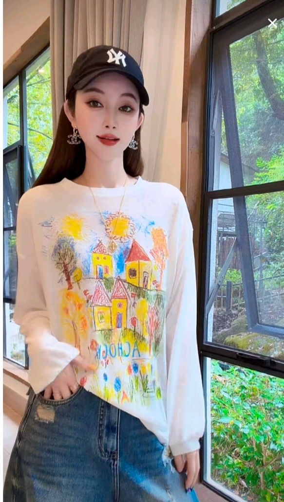 콩 최적의 봄 여름 새로운 수채화 낙서 얇은 스타일 통기성 자외선 차단 블라우스 티셔츠 여성 dz880m67739