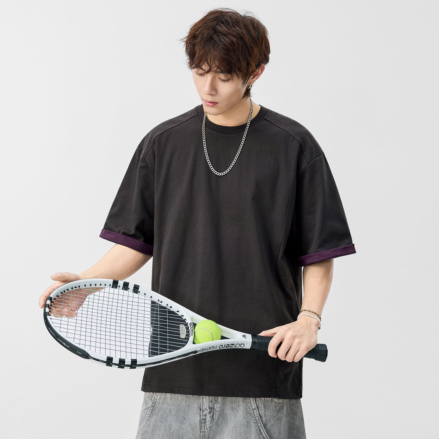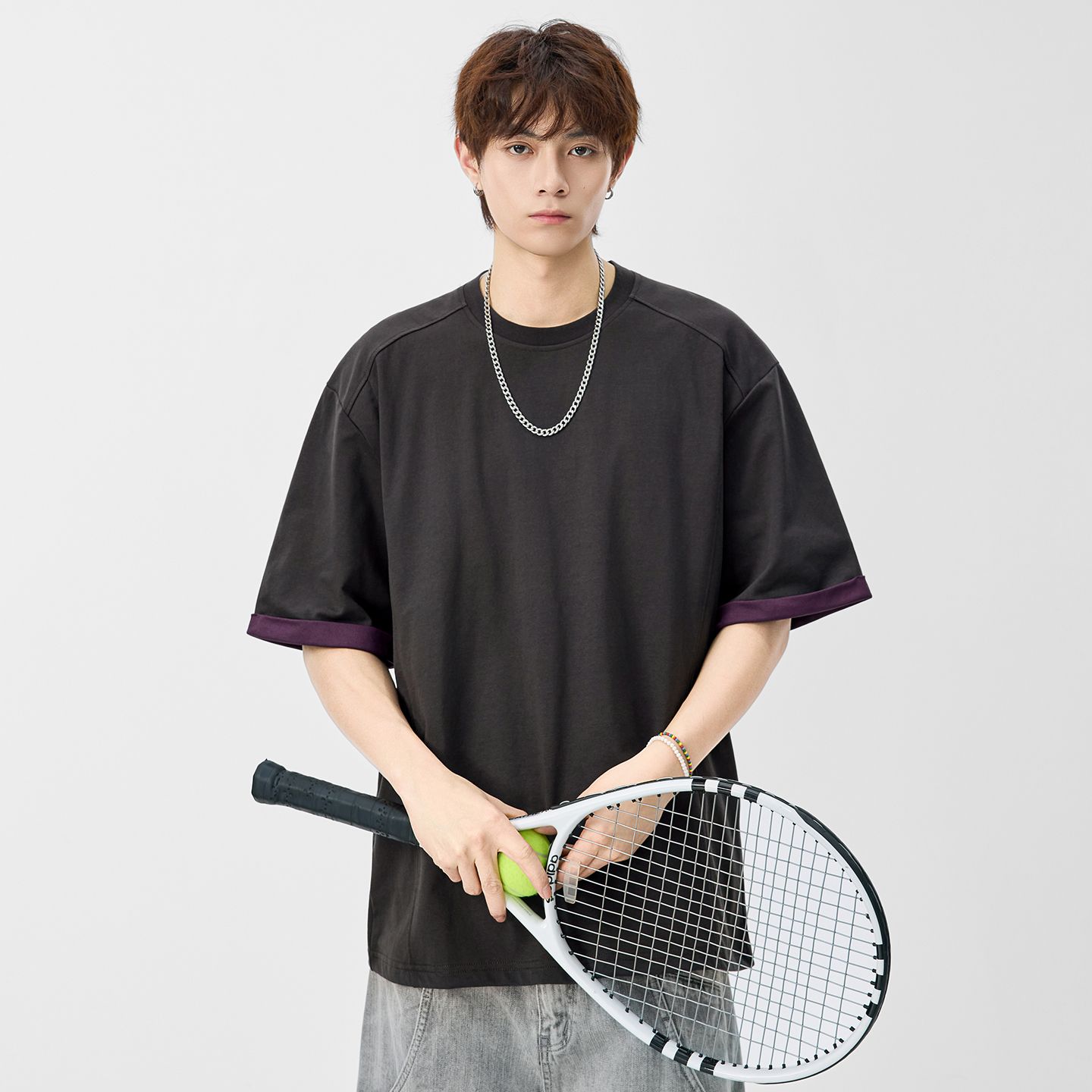 차가운 센스 통기성 반팔 티셔츠 남성 2026 여름 새로운 루즈핏 다용도 캐주얼 티셔츠 단색 미니멀리즘 트렌디 t