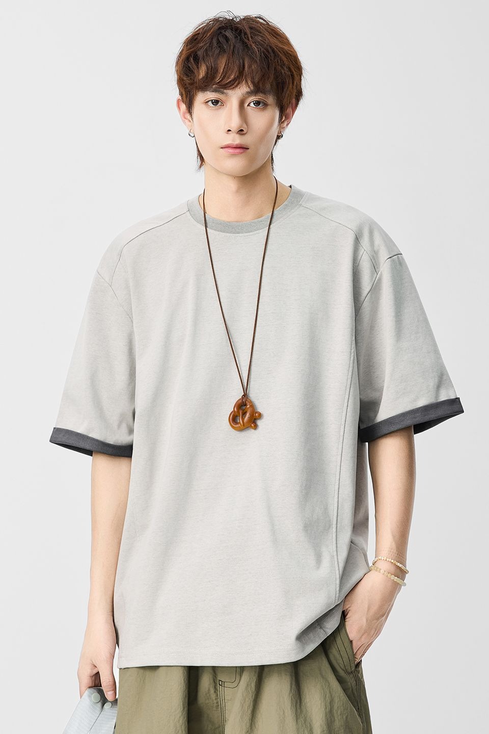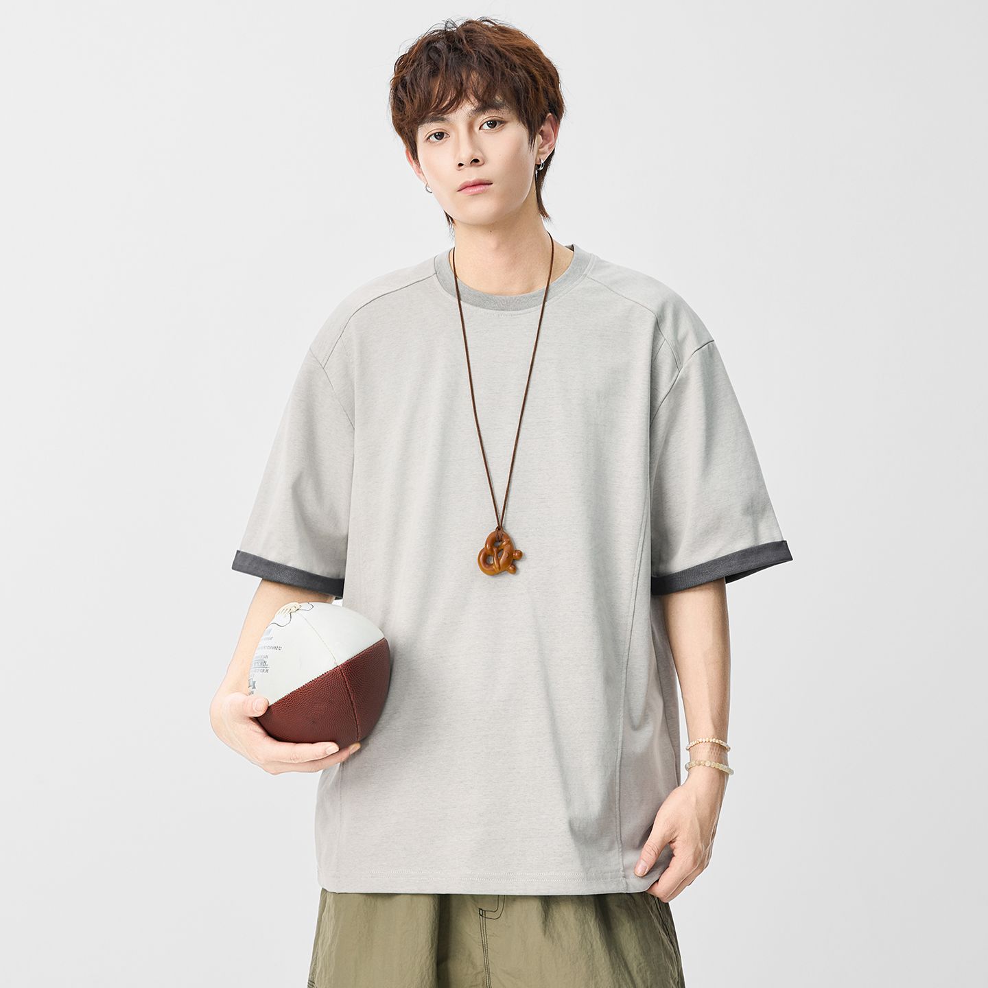 실사 2026 여름 새로운 얼음 센스 일본식 라운드 넥 반팔 티셔츠 남자 루즈핏 다용도 한국 스타일 미니멀리즘 티셔츠