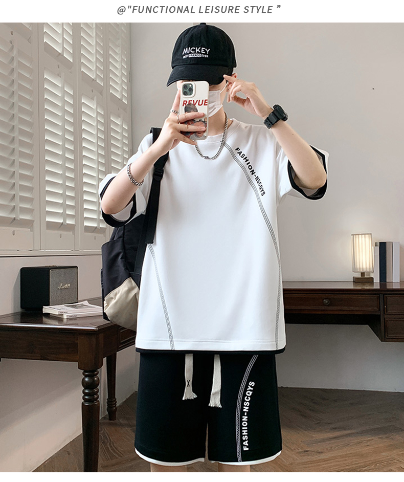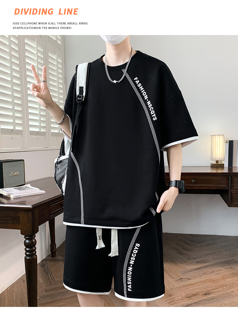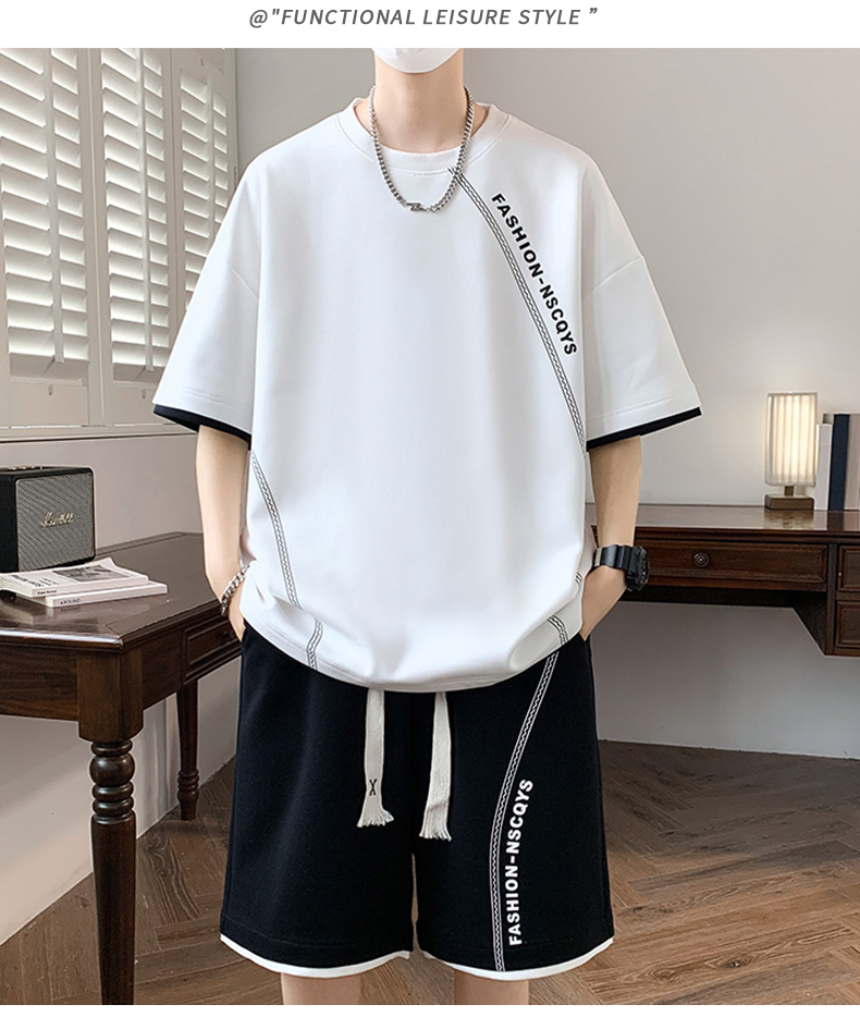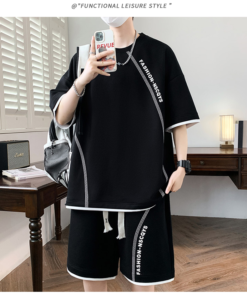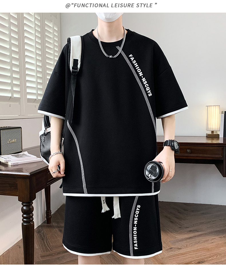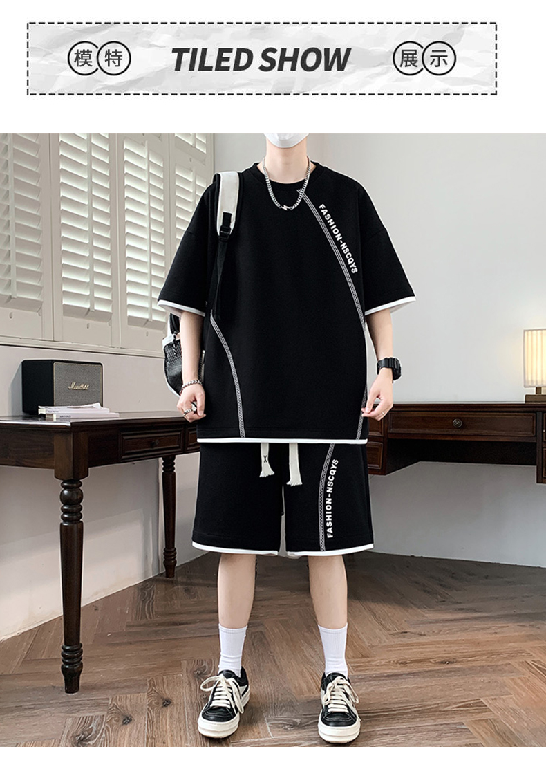 여름 신제품 스포츠 슈트 남성 실행 페이스 건조한 라운드 넥 반팔 티셔츠 루즈핏 연주 중 훈련 서비스 투피스 세트