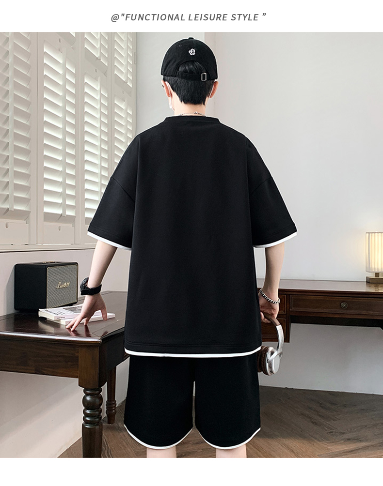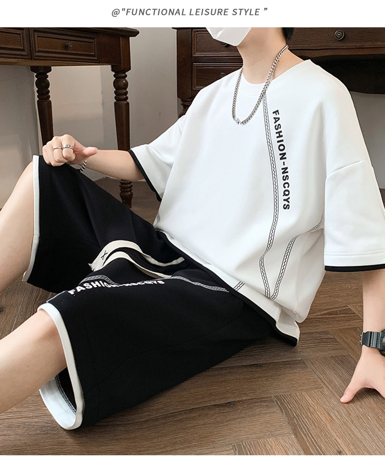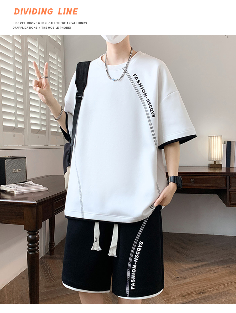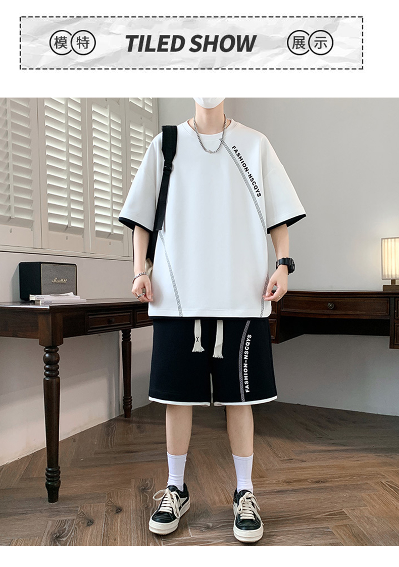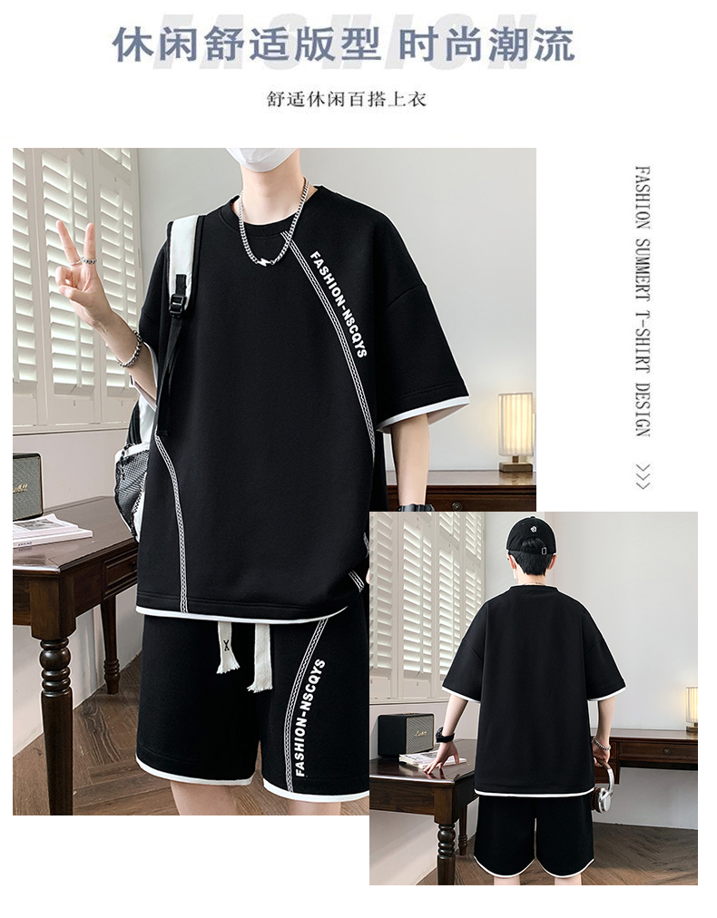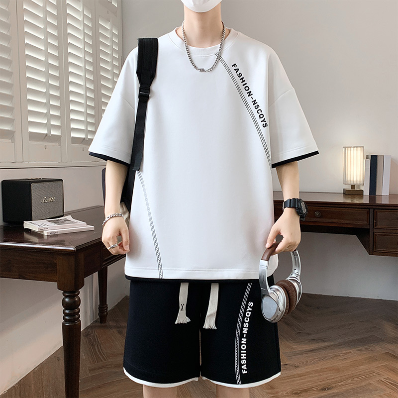 여름 신제품 스포츠 슈트 남성 실행 페이스 건조한 라운드 넥 반팔 티셔츠 루즈핏 연주 중 훈련 서비스 투피스 세트