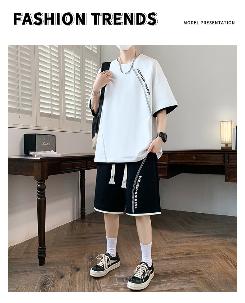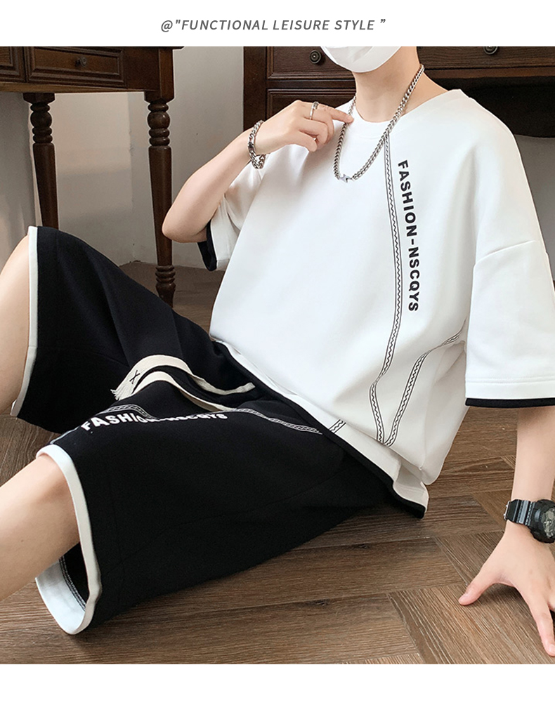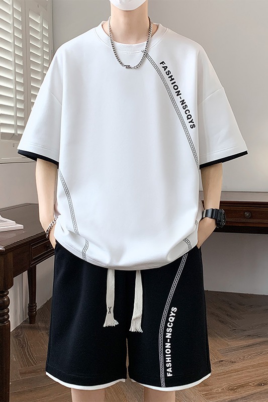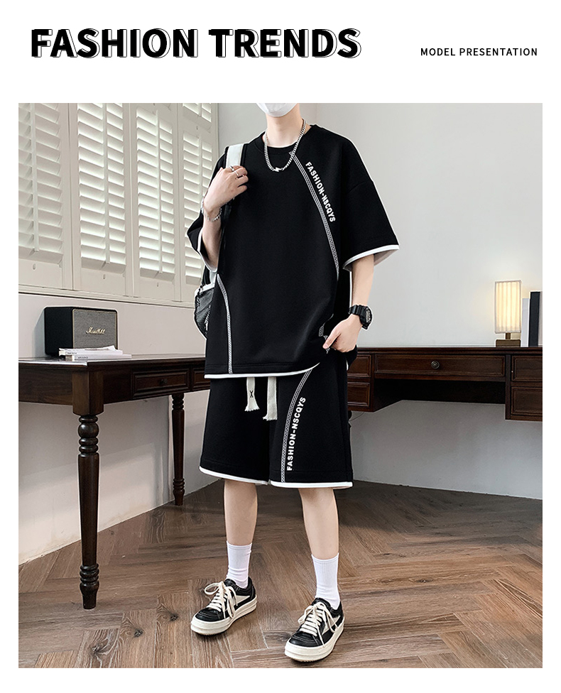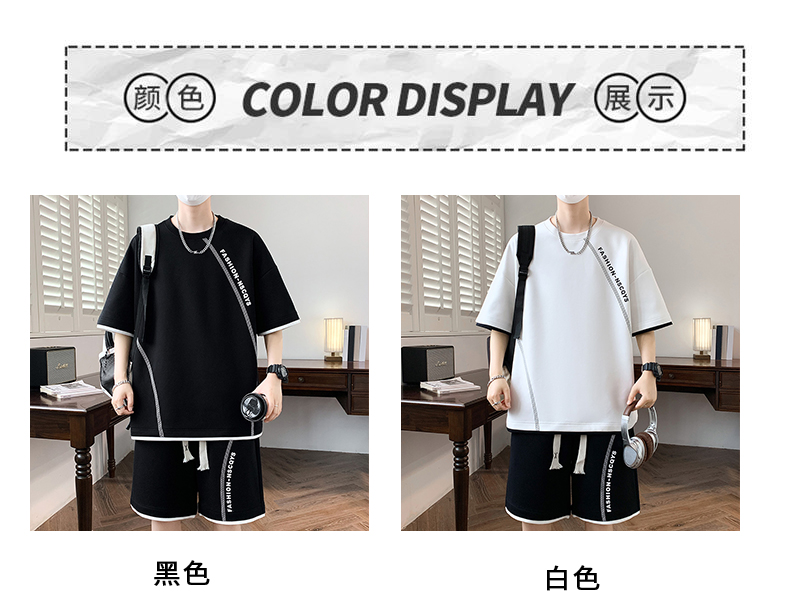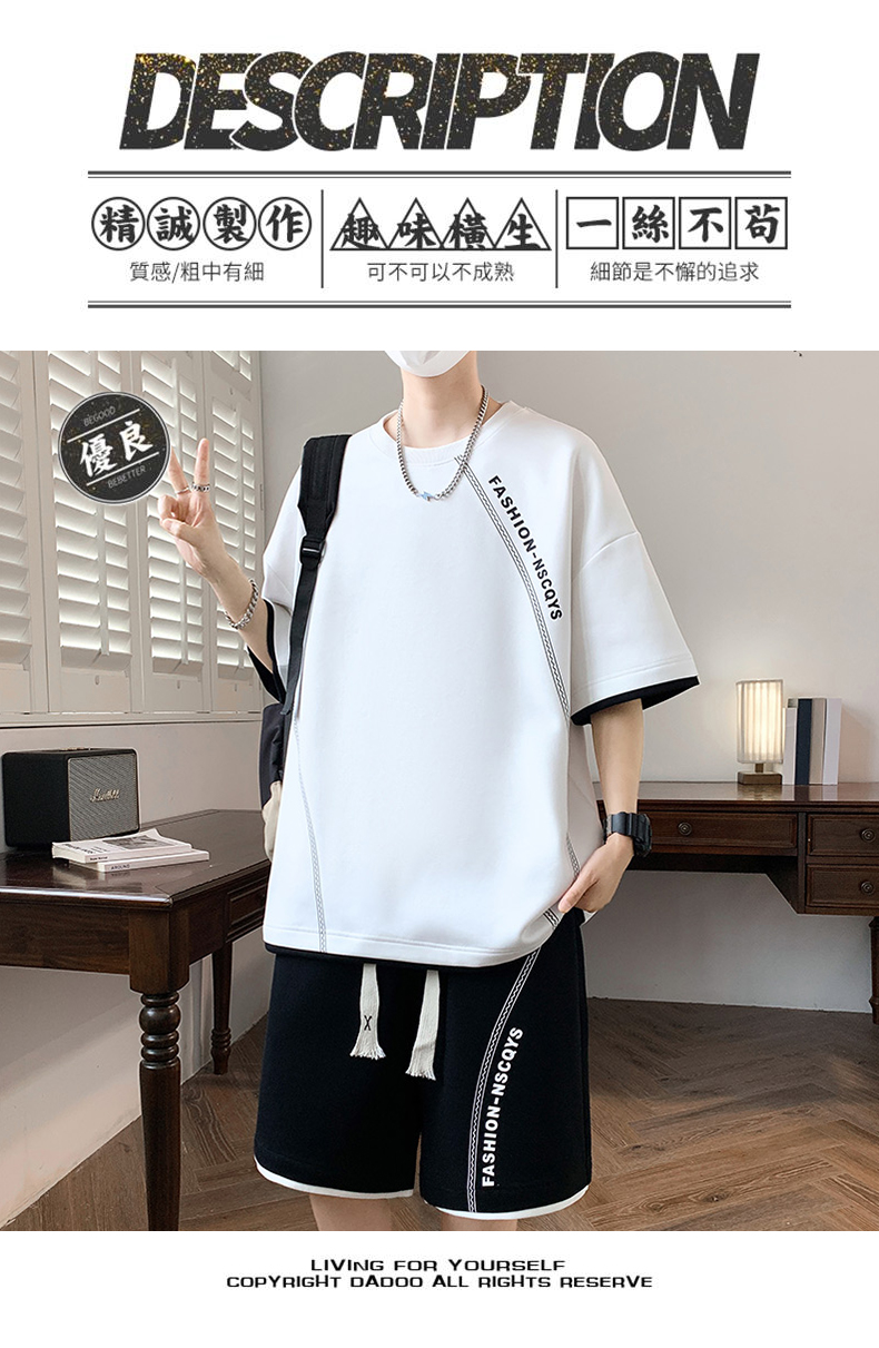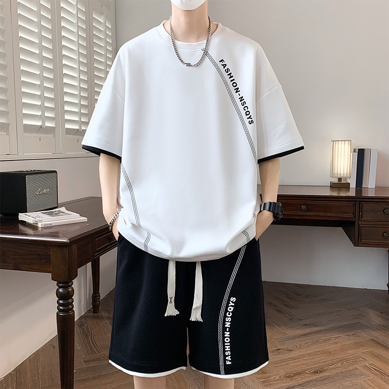 여름 신제품 스포츠 슈트 남성 실행 페이스 건조한 라운드 넥 반팔 티셔츠 루즈핏 연주 중 훈련 서비스 투피스 세트