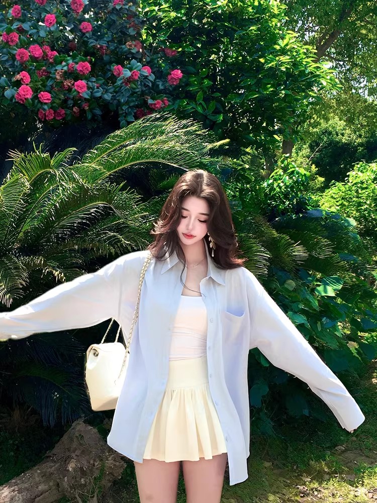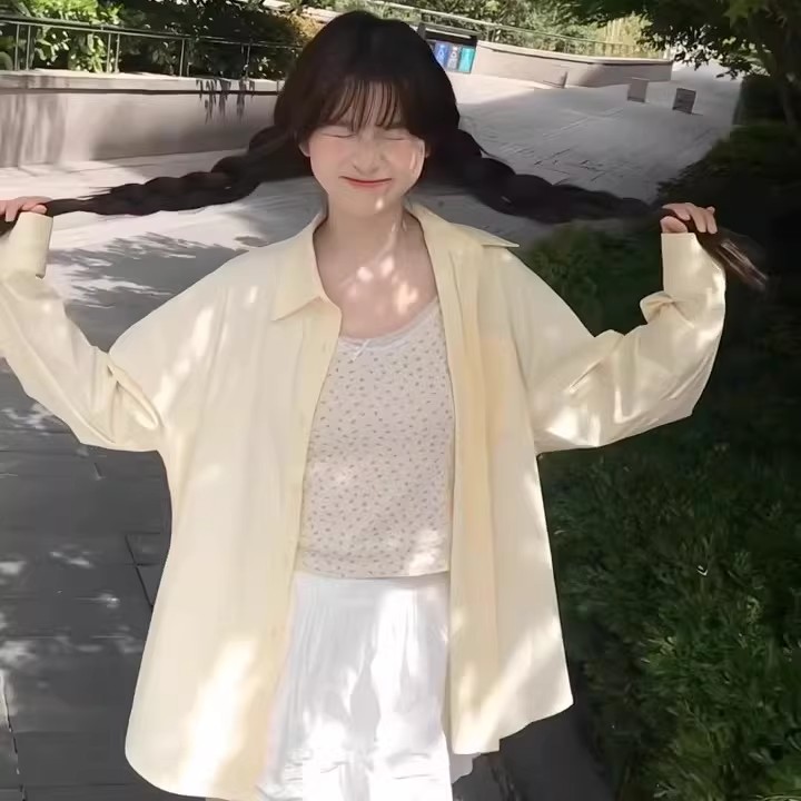 법률 시스템 고급 센스 새로운 스택 착용 격자 무늬 셔츠 여성 긴 소매 자외선 차단 느긋한 바람 외출용 편안함 다용도 셔츠