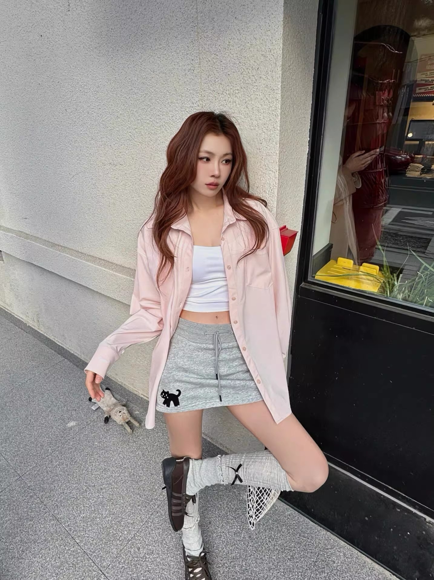 패션 핫걸 아메리칸 허리밴드 운동 바지 캐주얼 와이드 레깅스 바지 2026 봄 여름 새로운 루즈핏 바닥 청소 바지