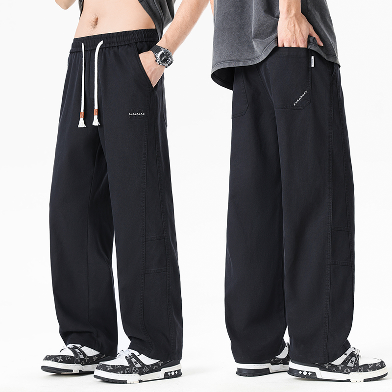 아메리칸 레트로 석재 연마 밀 귀 단추 디자인 센스 스트레이트 다용도 한 마디 캐주얼 바지 남녀 중성 트렌디 루즈핏 바지