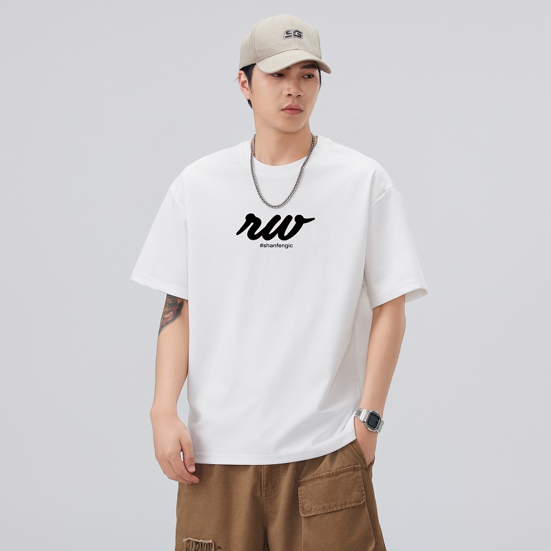 실사 2026 여름 새로운 티셔츠 남성 고급 라운드 넥 프린트 미니멀리즘 캐주얼 다용도 티셔츠