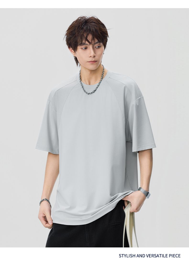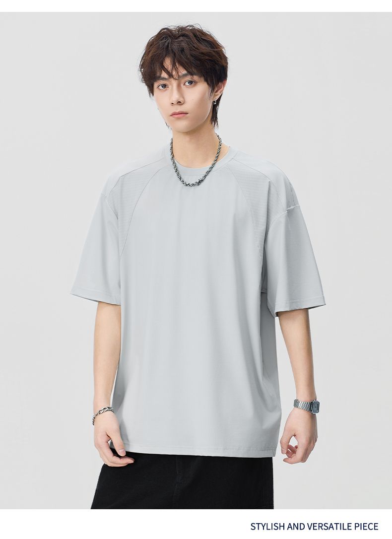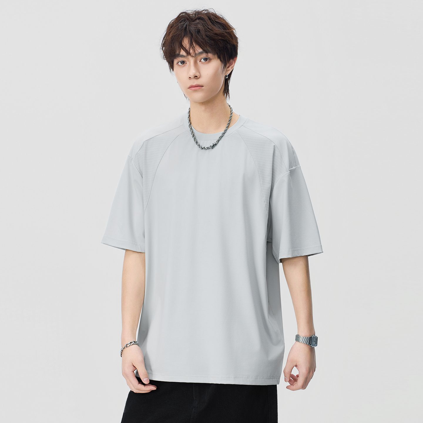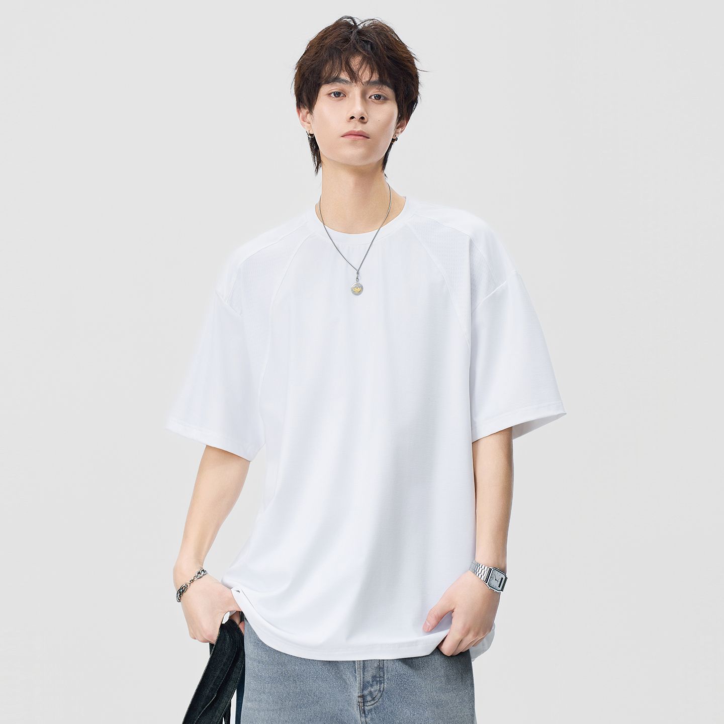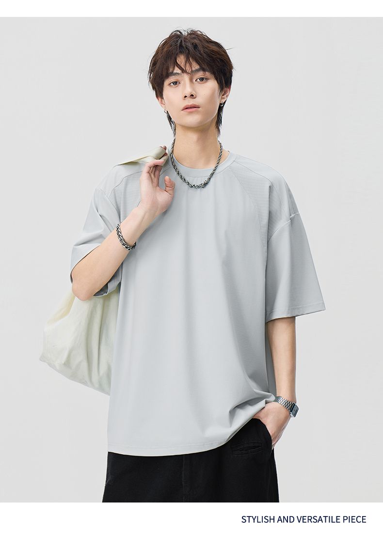 실사 2026 여름 새로운 얼음 센스 일본식 라운드 넥 반팔 티셔츠 남자 루즈핏 다용도 한국 스타일 미니멀리즘 티셔츠