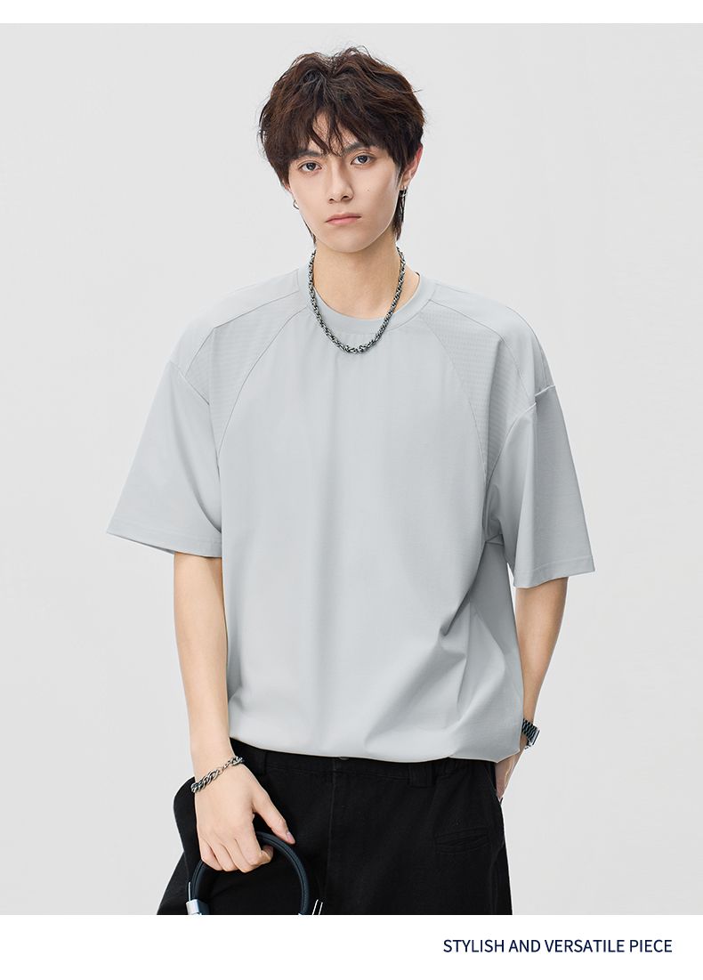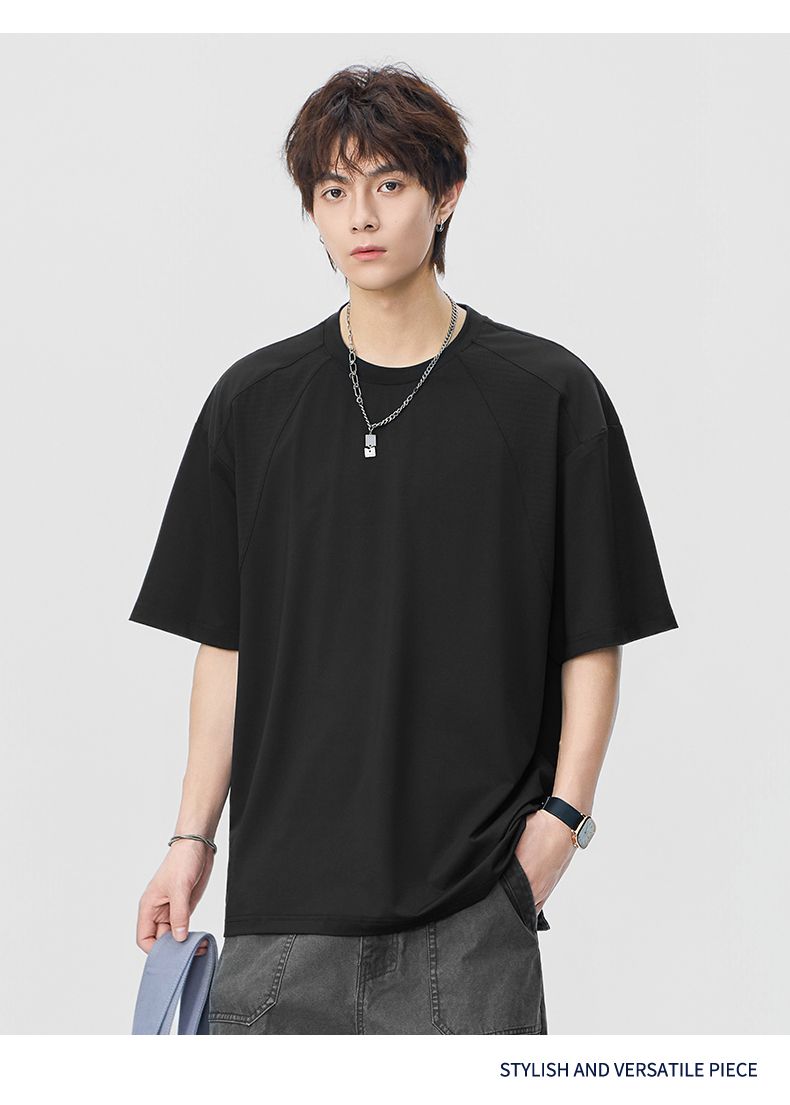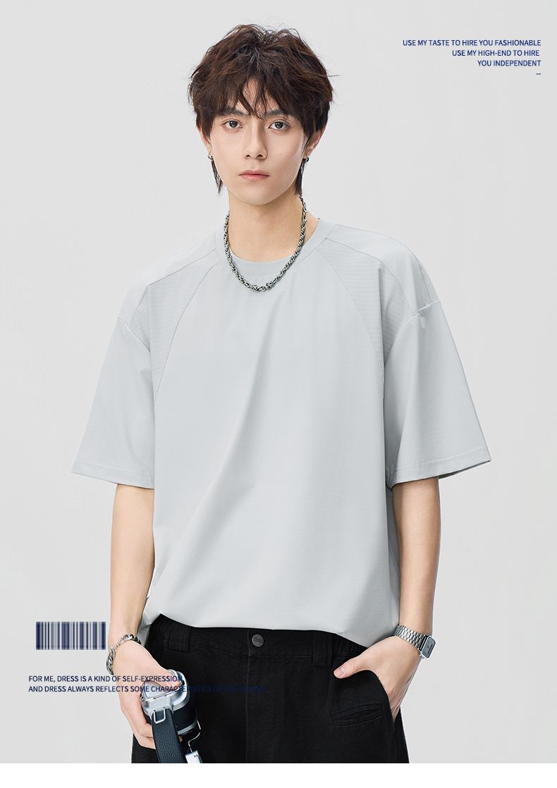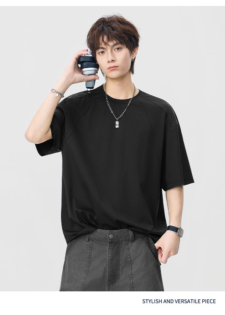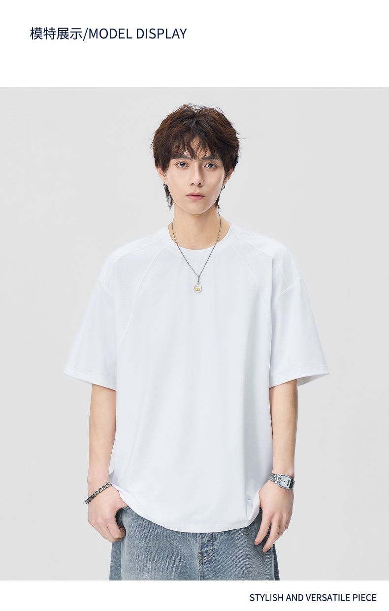 실사 2026 여름 새로운 얼음 센스 일본식 라운드 넥 반팔 티셔츠 남자 루즈핏 다용도 한국 스타일 미니멀리즘 티셔츠