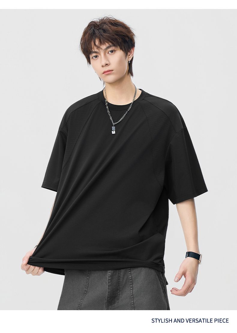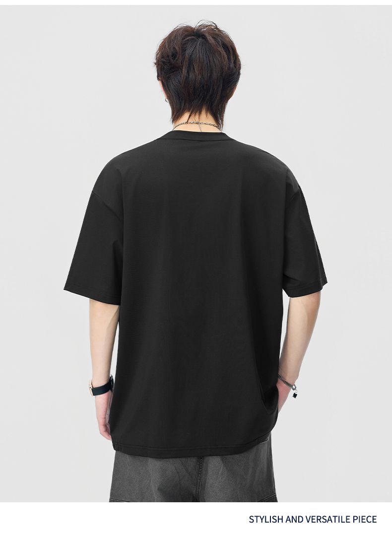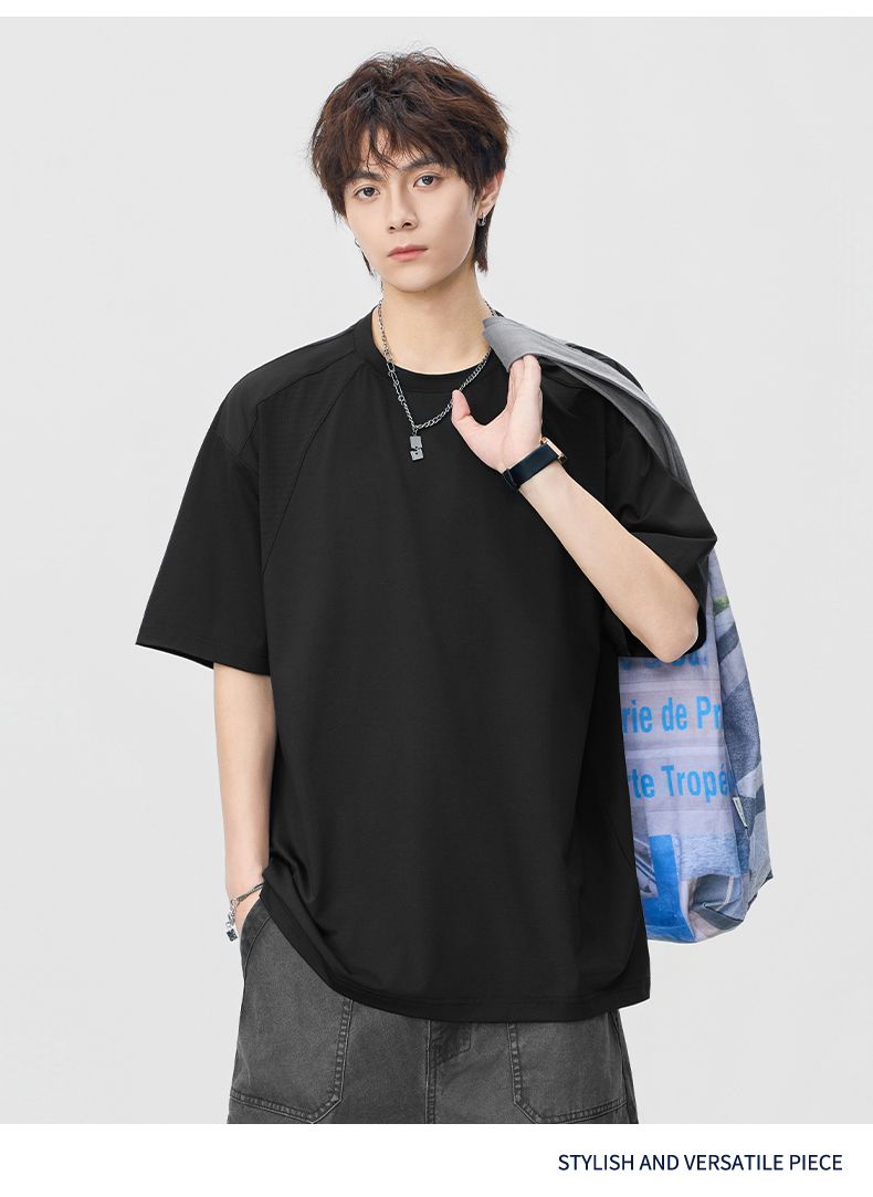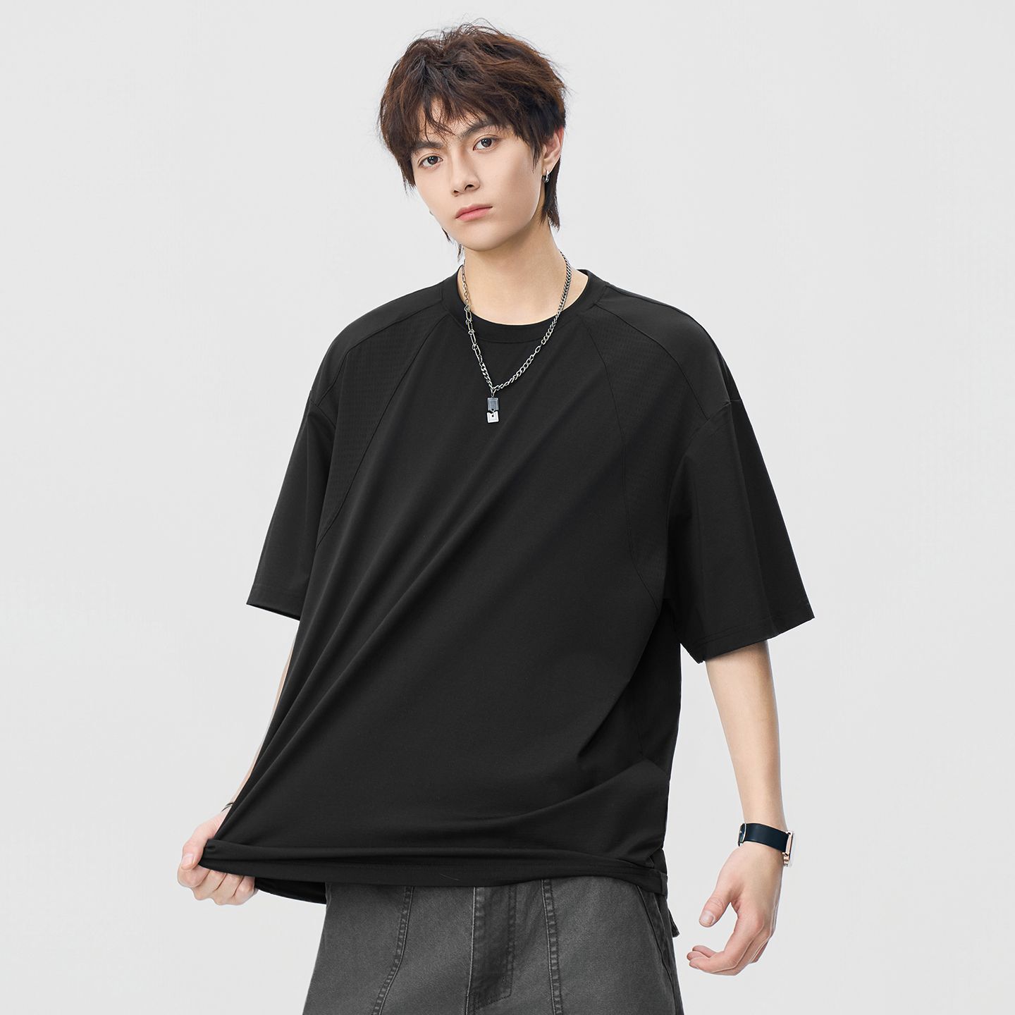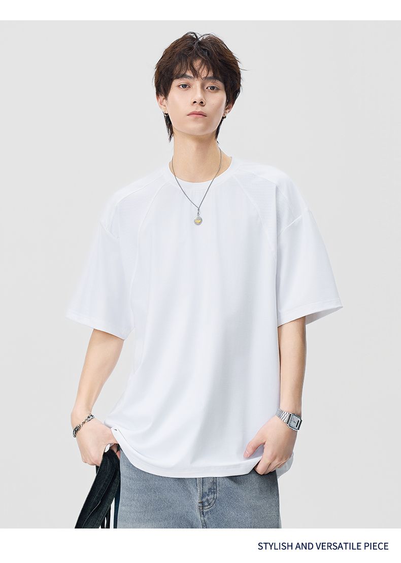 실사 2026 여름 새로운 얼음 센스 일본식 라운드 넥 반팔 티셔츠 남자 루즈핏 다용도 한국 스타일 미니멀리즘 티셔츠
