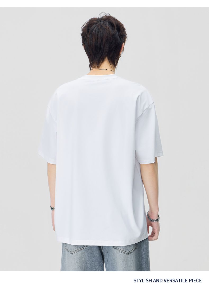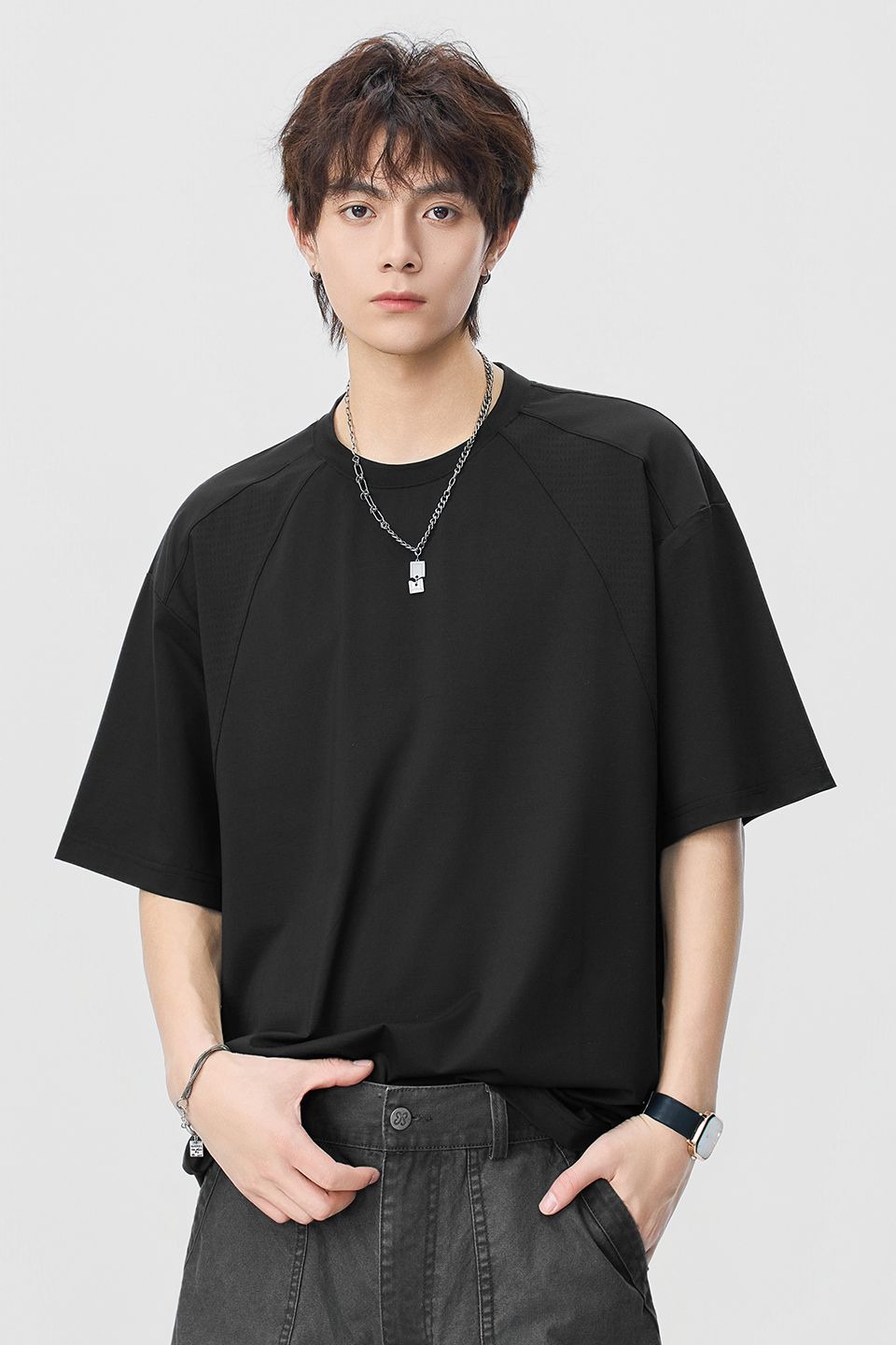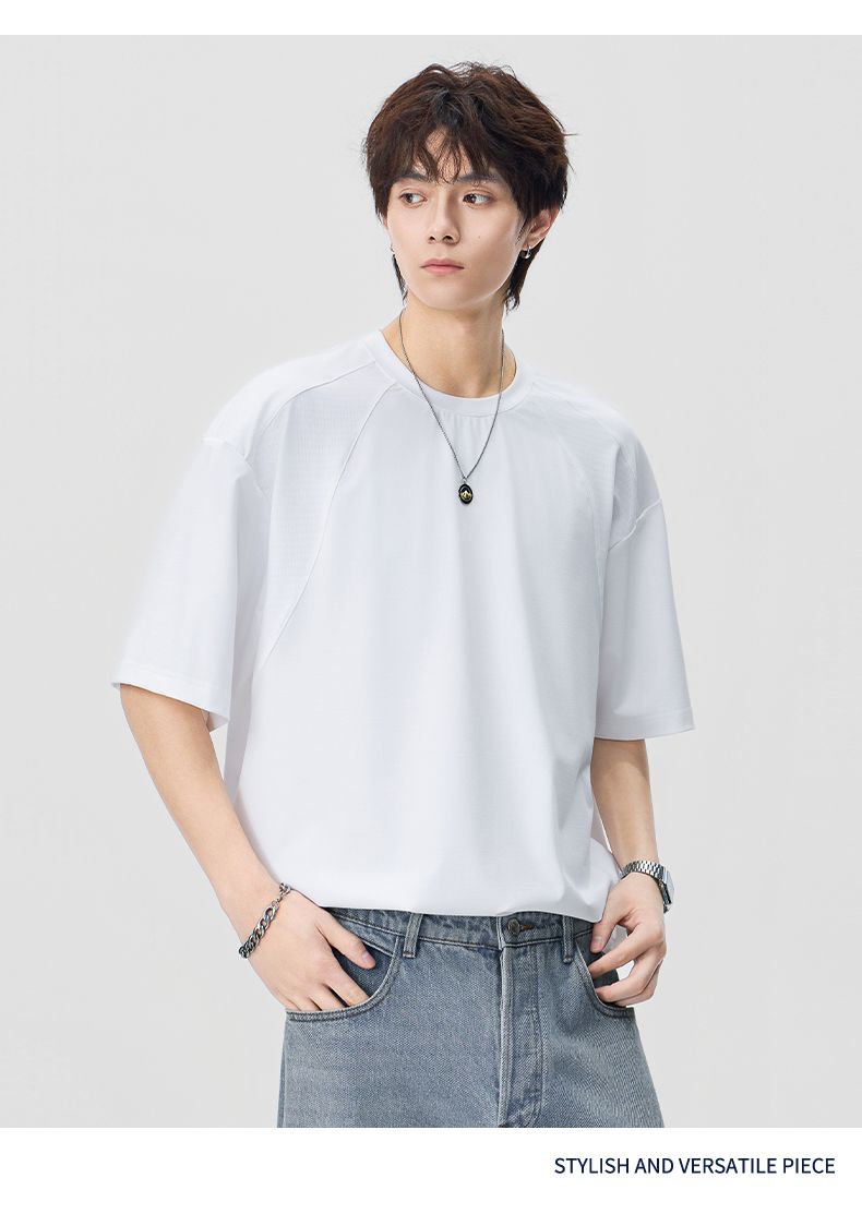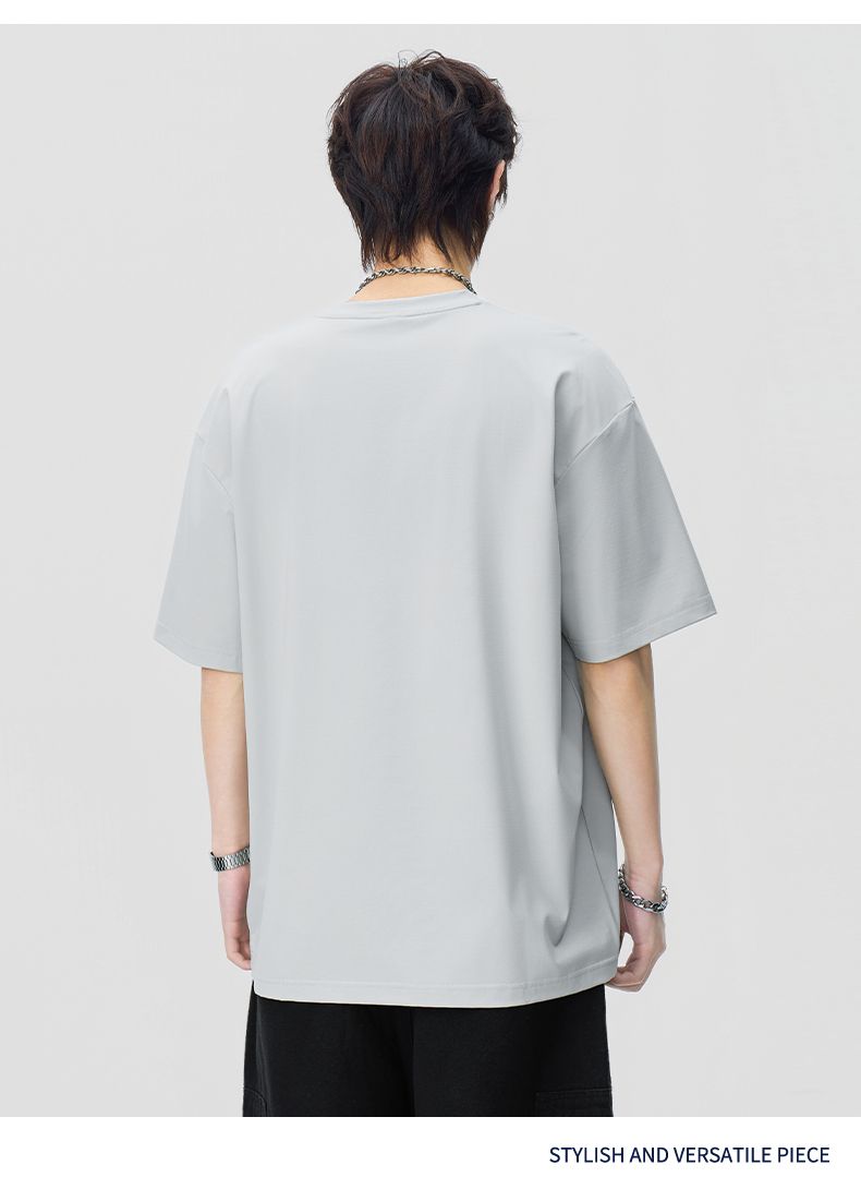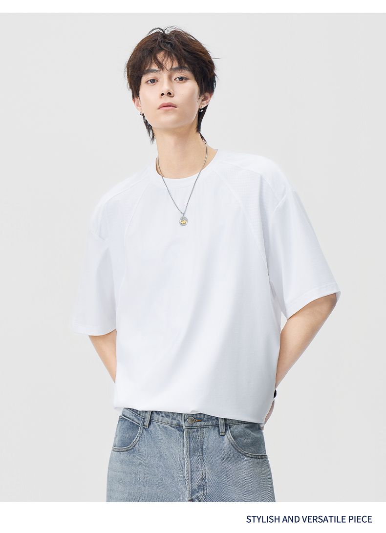 실사 2026 여름 새로운 얼음 센스 일본식 라운드 넥 반팔 티셔츠 남자 루즈핏 다용도 한국 스타일 미니멀리즘 티셔츠
