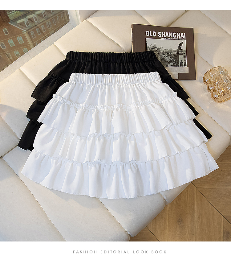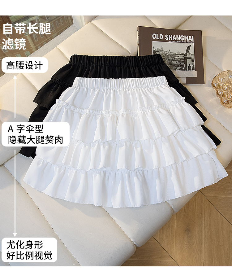 빅 사이즈 프릴 케이크 반신 스커트 여성 여름 발레 바람 하이웨이스트 한 마디 퍼프 짧은 치마 노출 방지 치마바지