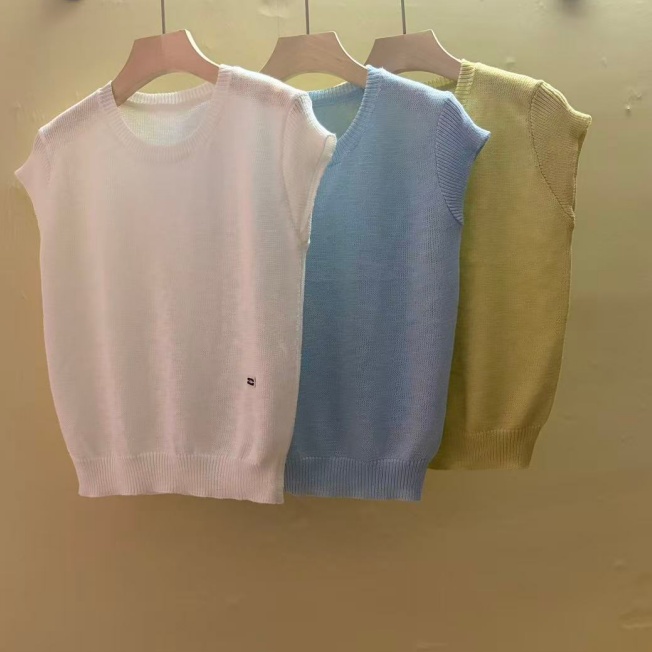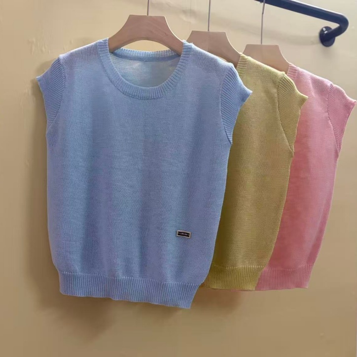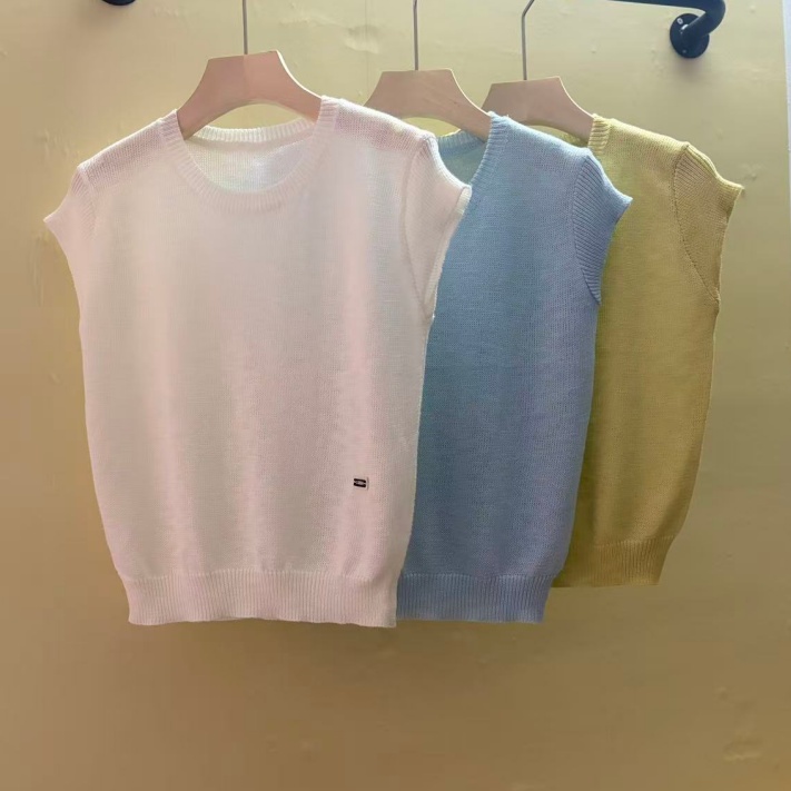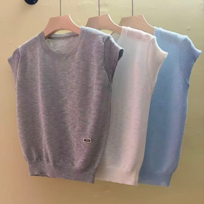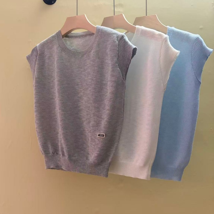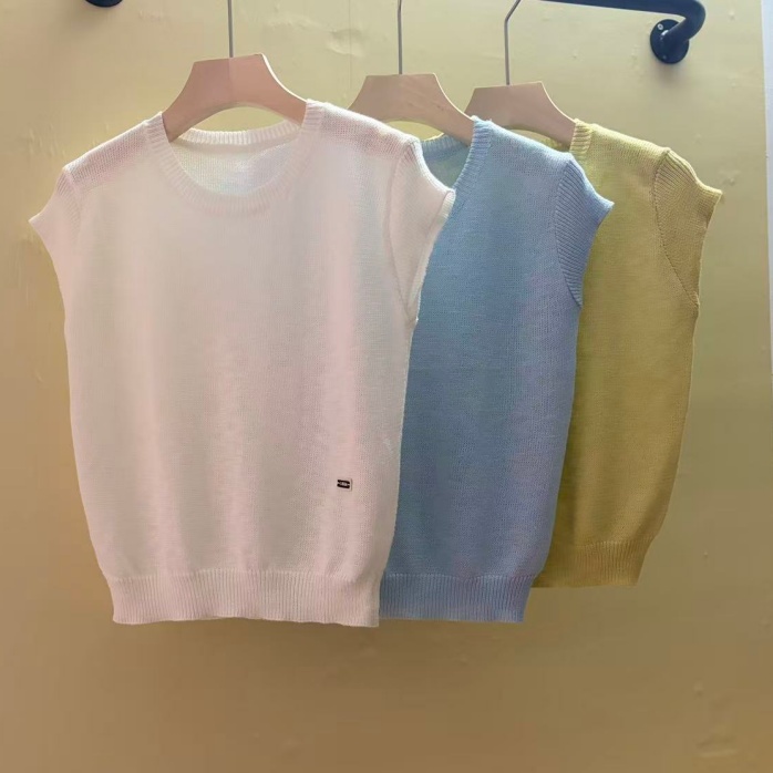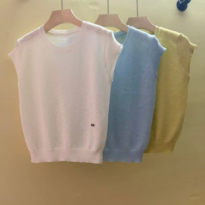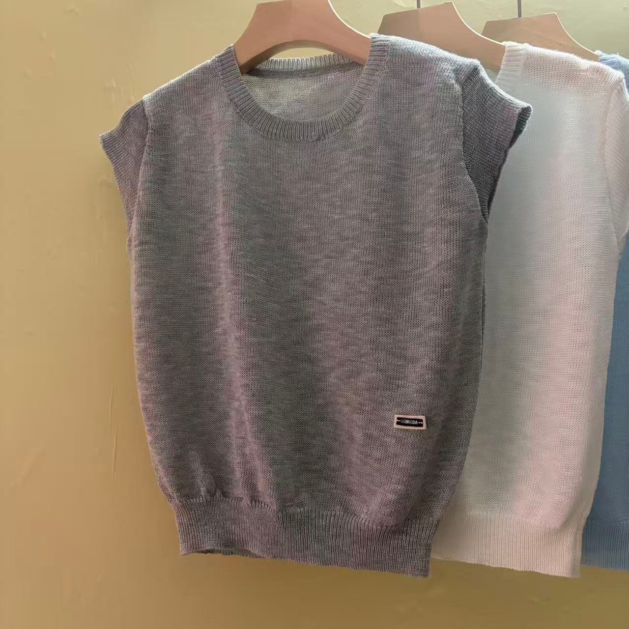 0262 여름 얇고 가벼운 통기성 오래된 돈 라운드 넥 슬림해 보이는 반팔 니트 스웨터