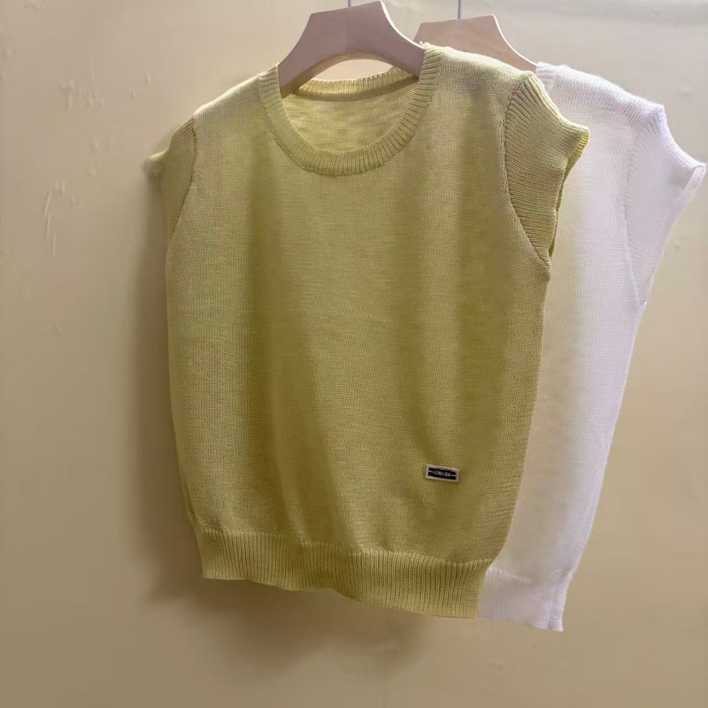 mz 작은 키 레이스 꽃 장식 항공기 소매 26 여름 신제품 아마 라운드 넥 여성 티셔츠 니트 스웨터