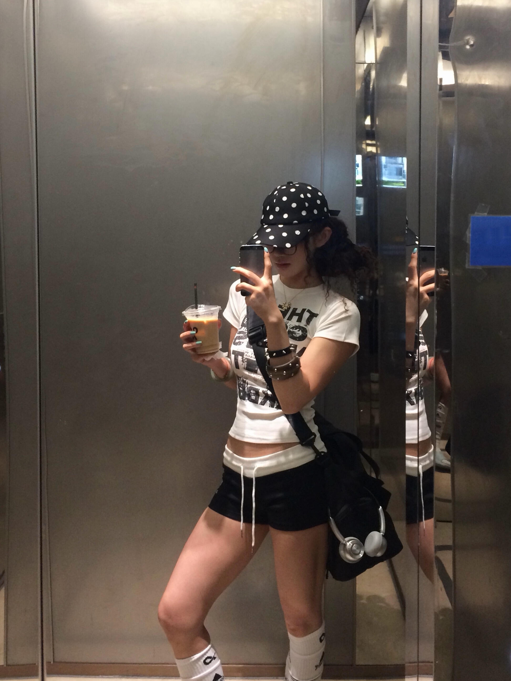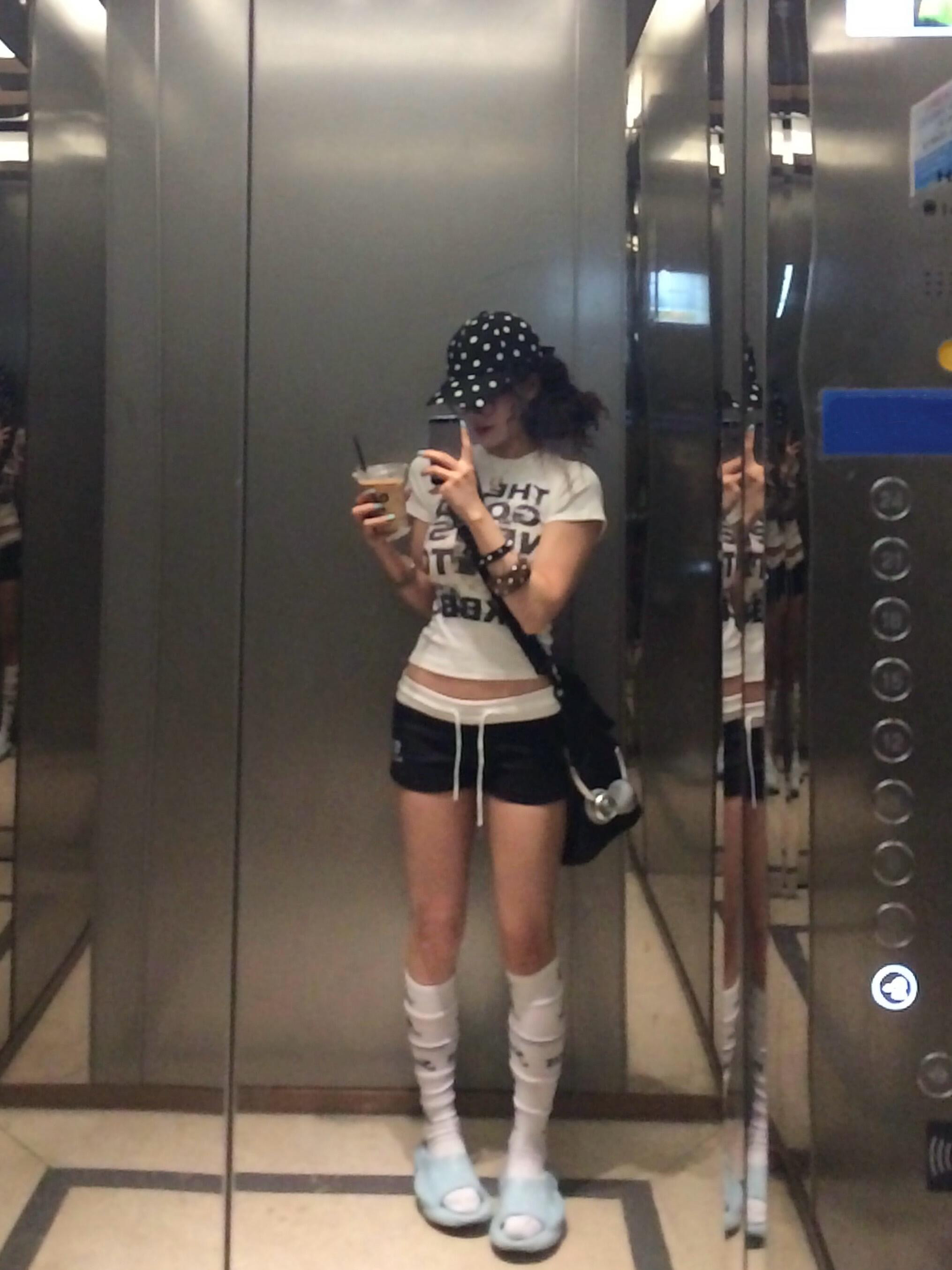 1 1 순면 V넥 도트 무늬 반팔 긍정적 인 어깨 일반 섹션 반팔 높은 탄력성 새로운 여름 맨위