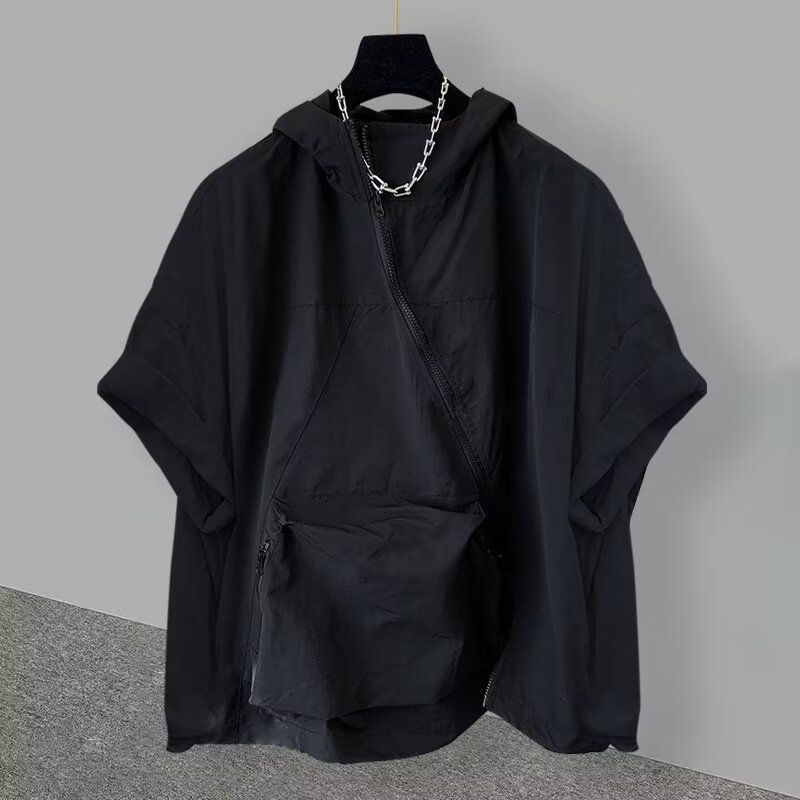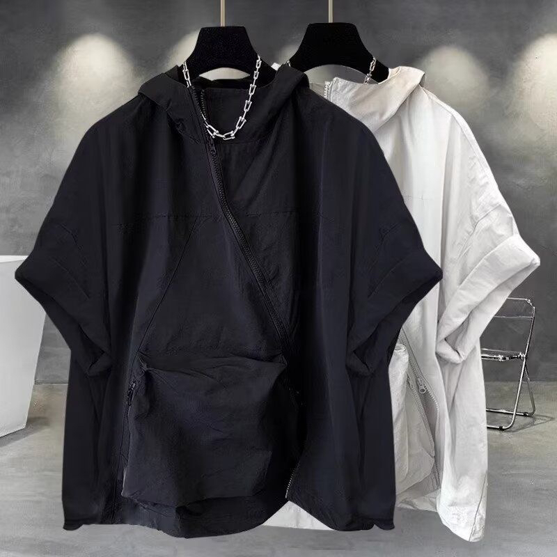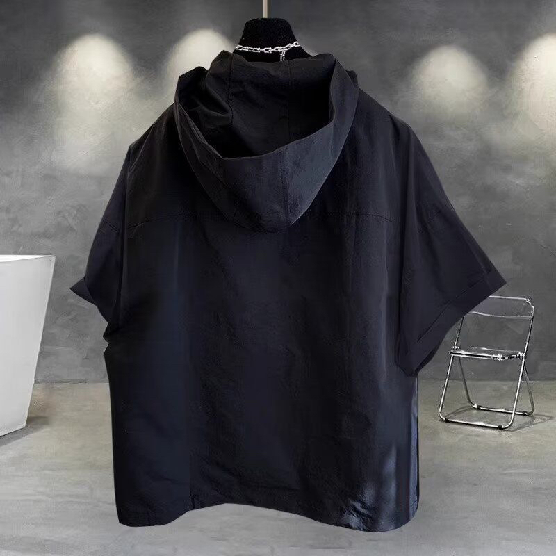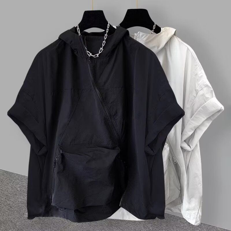 지퍼 디자인 후드 반팔 티셔츠 여성 여름 한국 스타일 트렌드 워크웨어 빅 포켓 반소매 동정 조수 브랜드 루즈핏