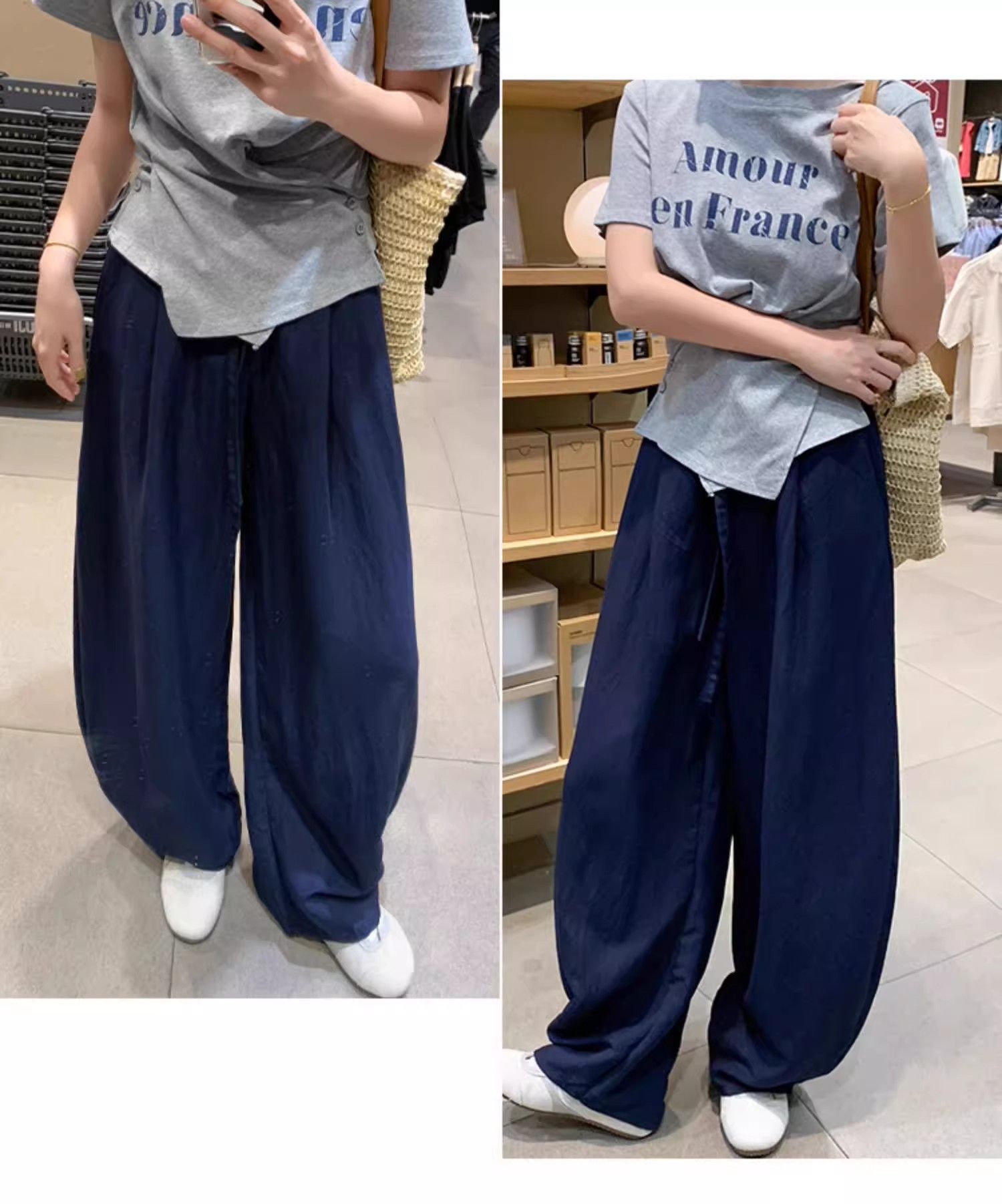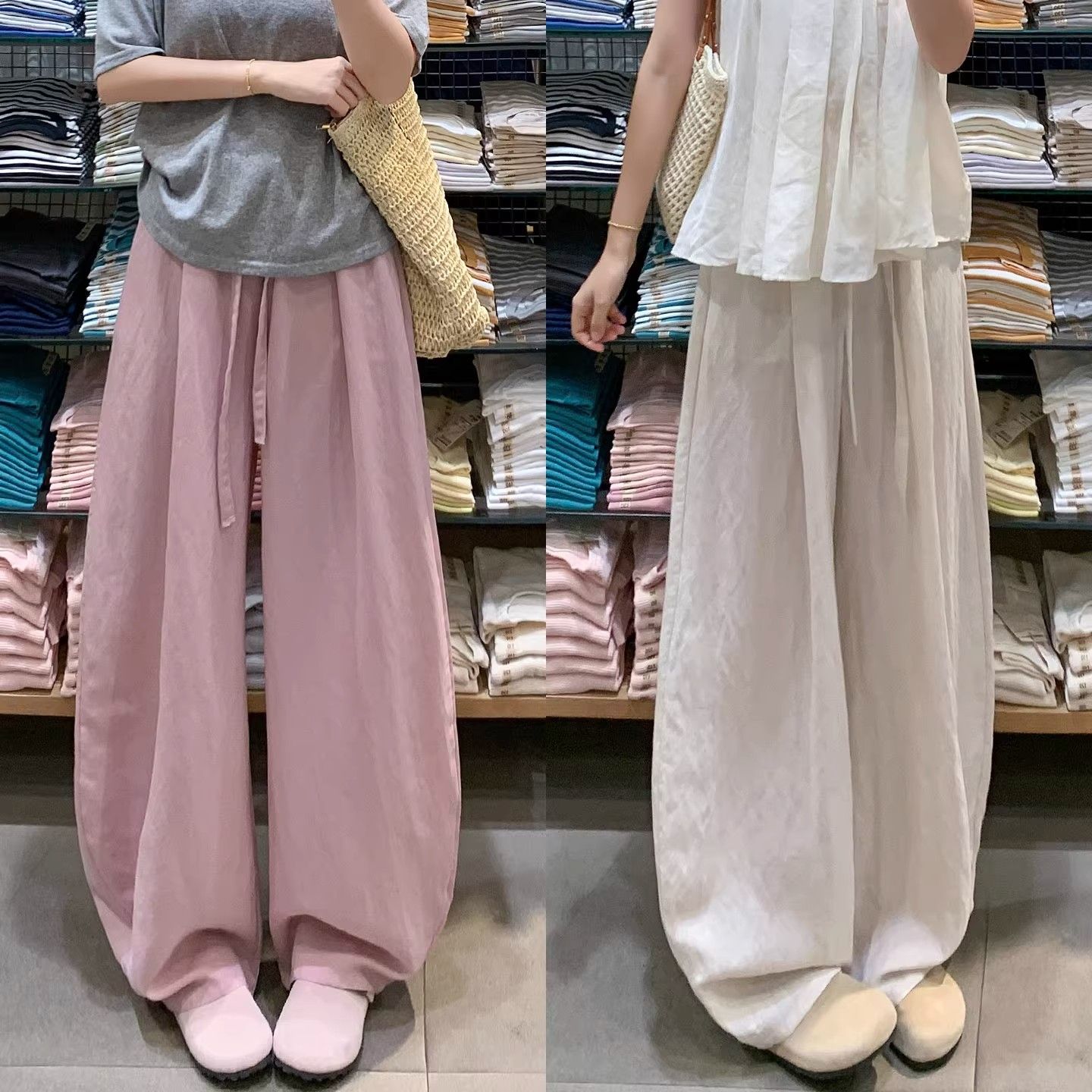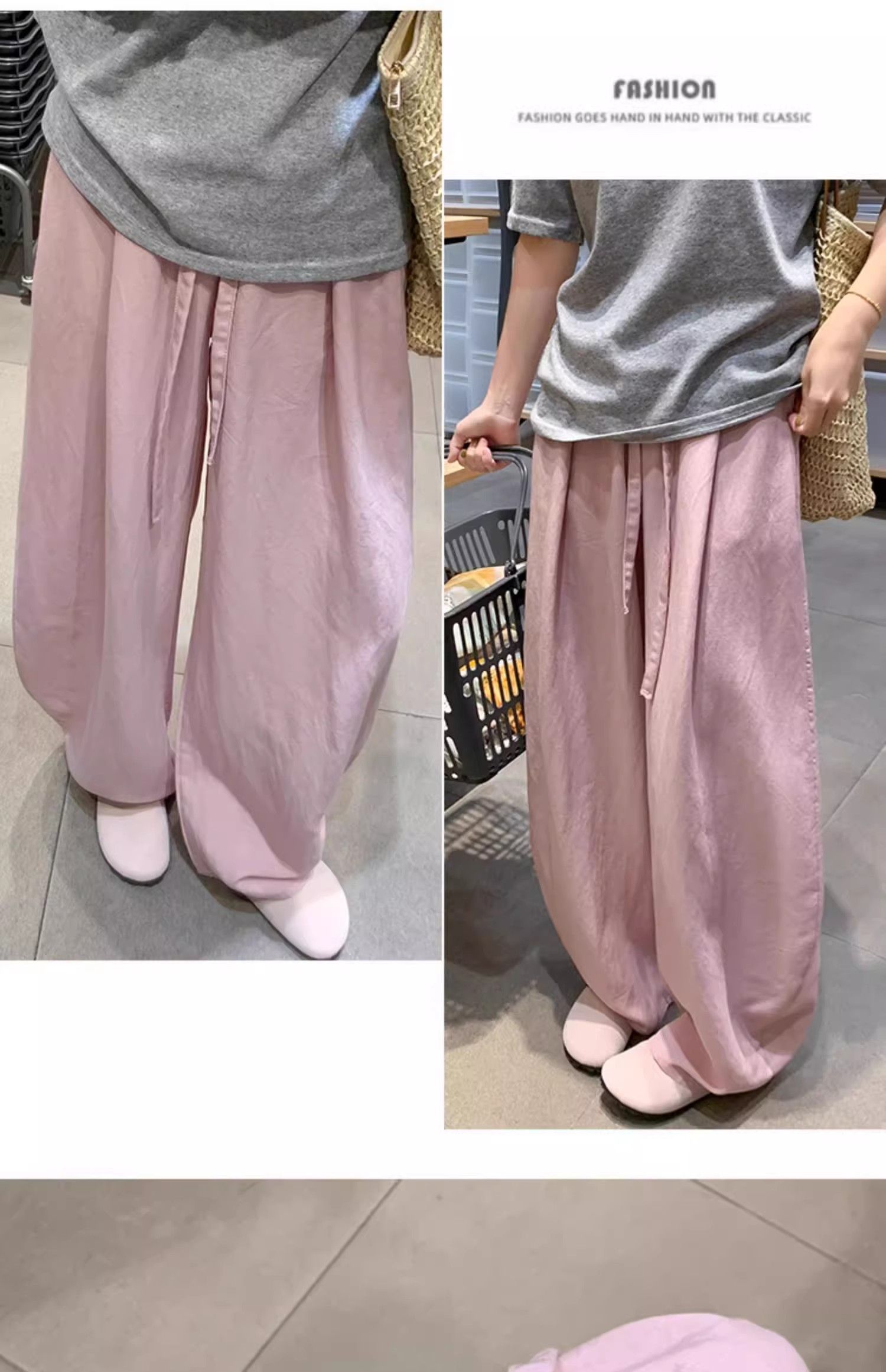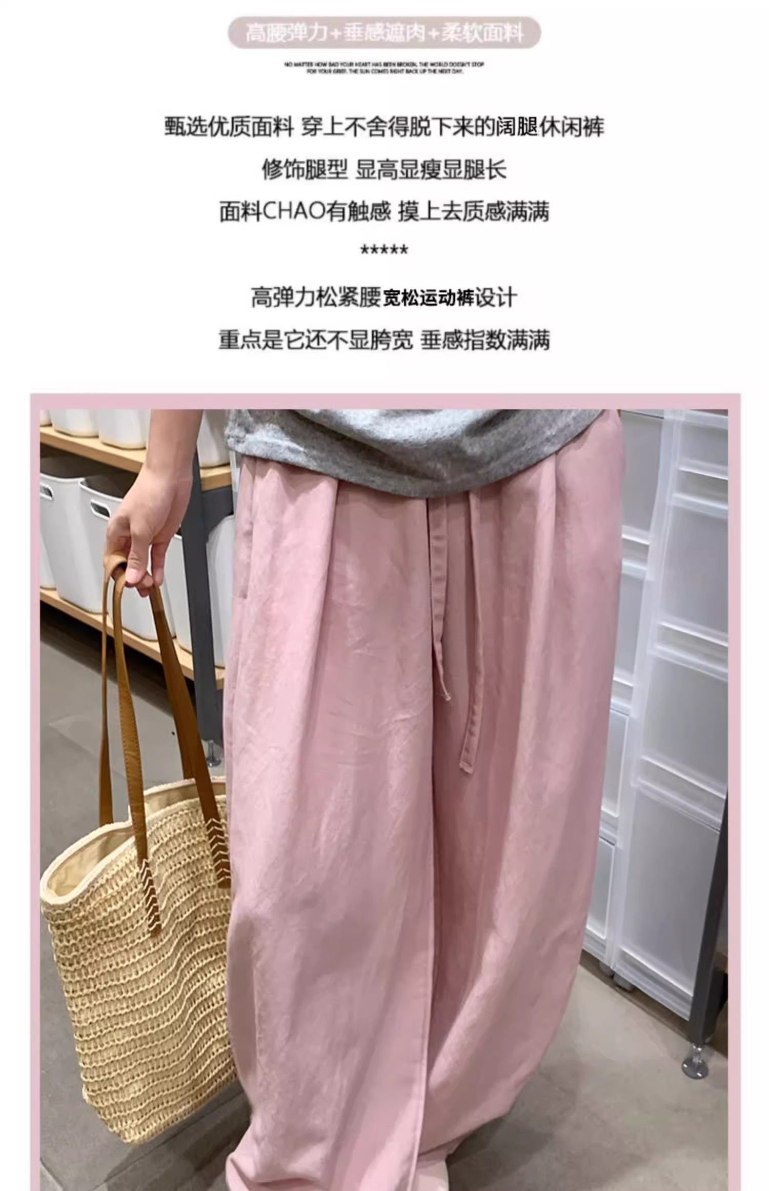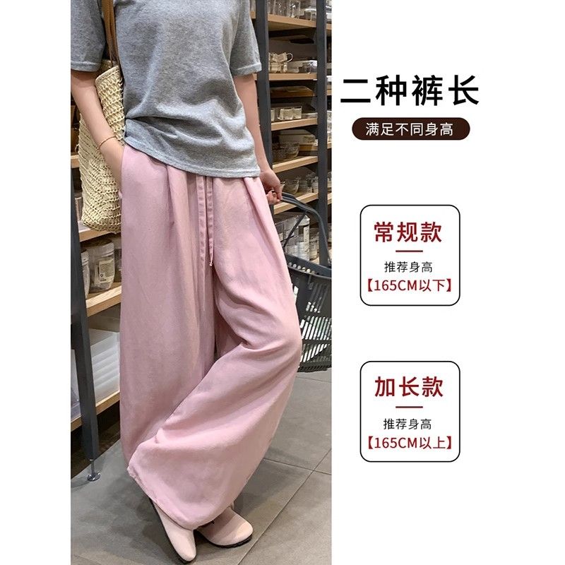 패션 핫걸 아메리칸 허리밴드 운동 바지 캐주얼 와이드 레깅스 바지 2026 봄 여름 새로운 루즈핏 바닥 청소 바지