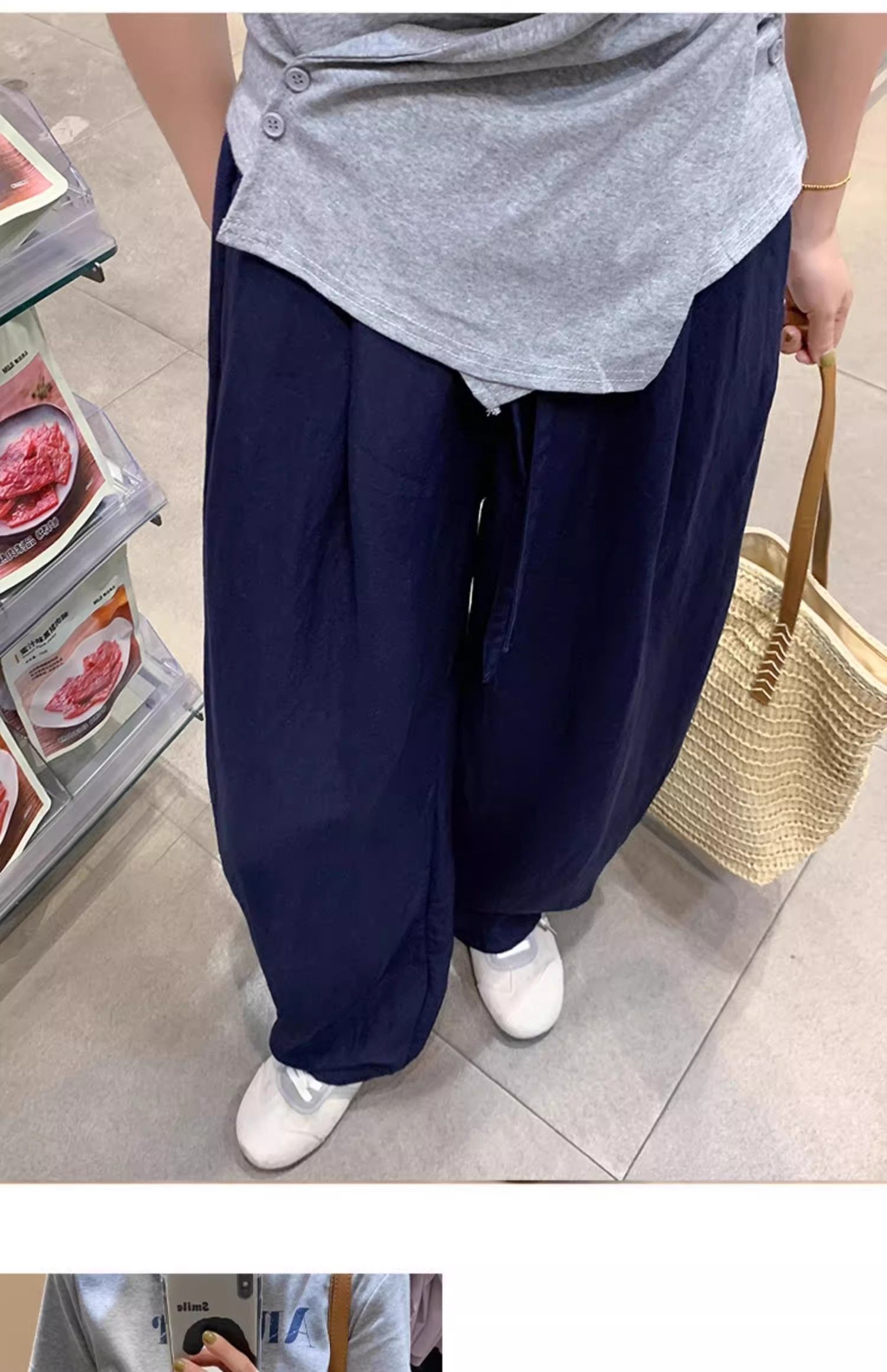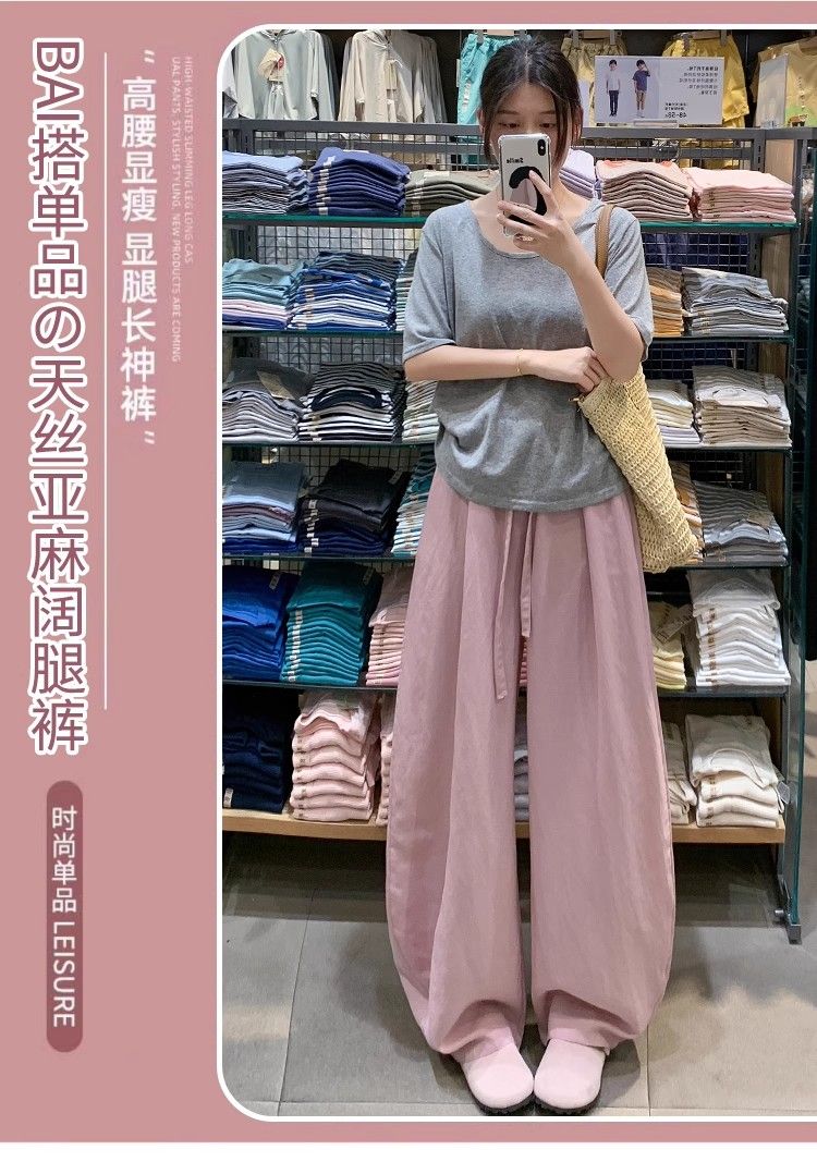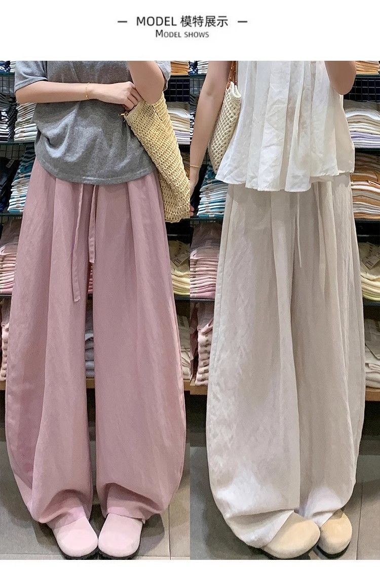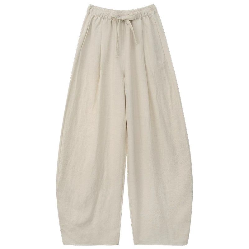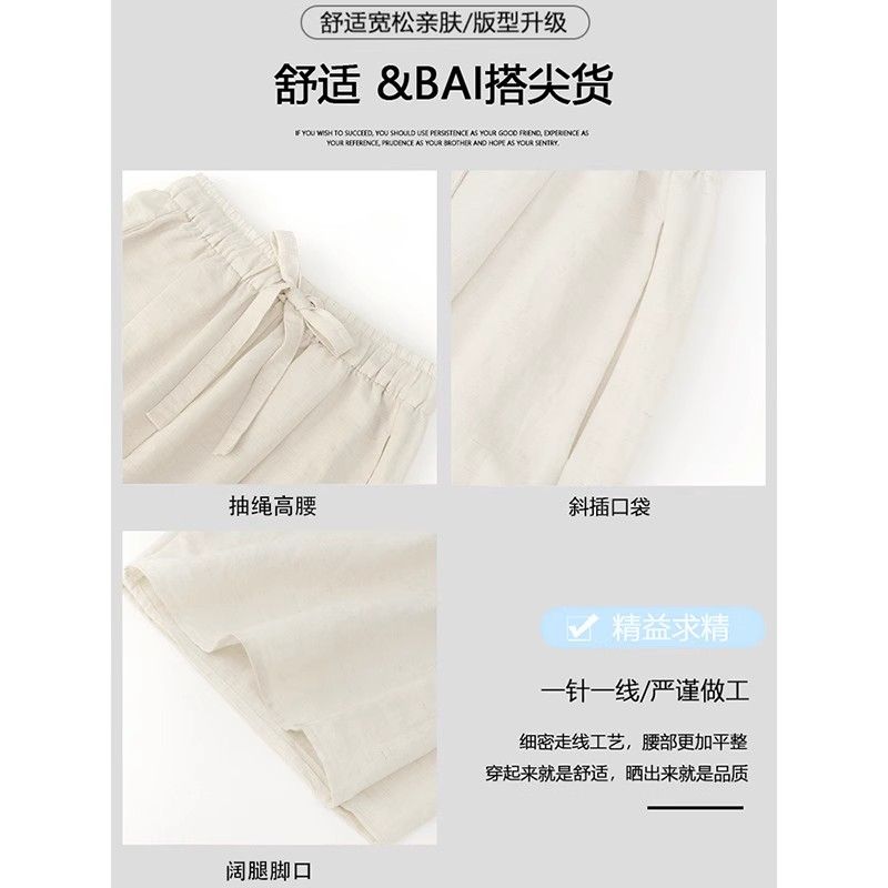 해군 주간 실크 아마 바지 아이들 여름 얇은 스타일 하이웨이스트 슬림해 보이는 모통이 칼 바지 루즈핏 캐주얼 면 린넨 바지 아이들
