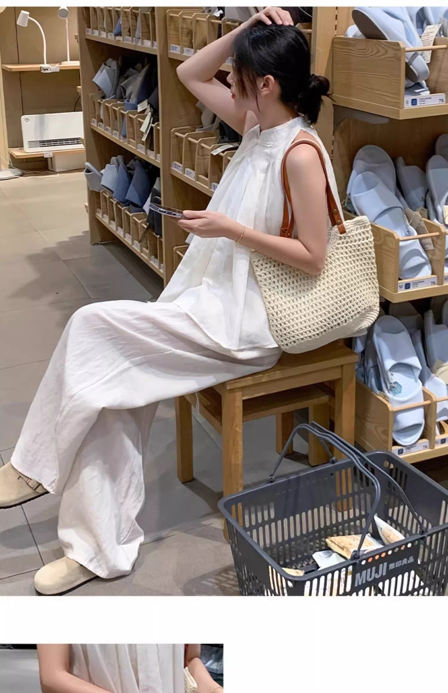 순면 일본식 워크웨어 반바지 여성 여름 얇은 스타일 하이웨이스트 다용도 슬림해 보이는 외출용 한 마디 와이드 레그 팬츠 캐주얼 바지