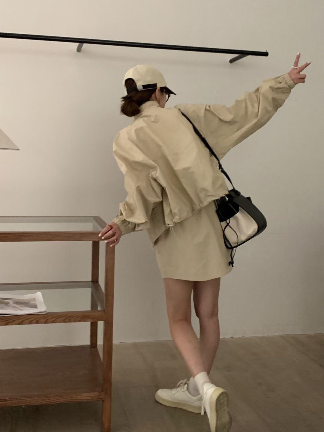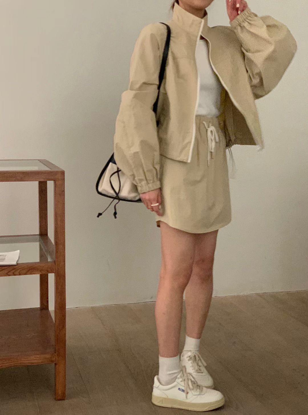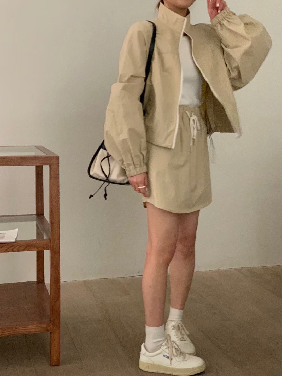 2026 봄 여름 새로운 캐주얼 자외선 차단 얇은 스타일 세트 루즈핏 작은 쇼트 스타일 긴팔 스탠드 칼라 재킷 펌프 로프 미니 스커트 여성