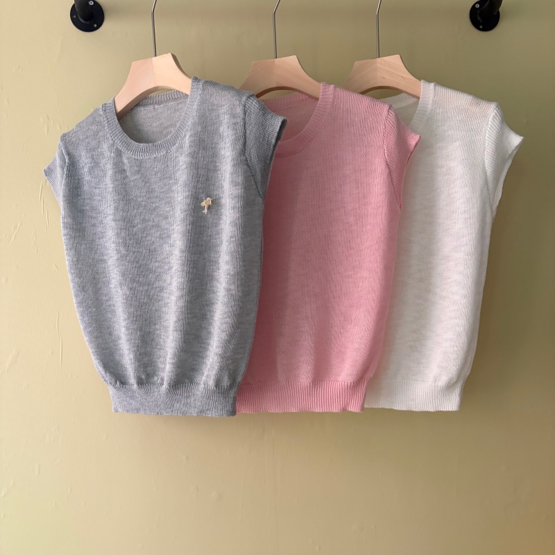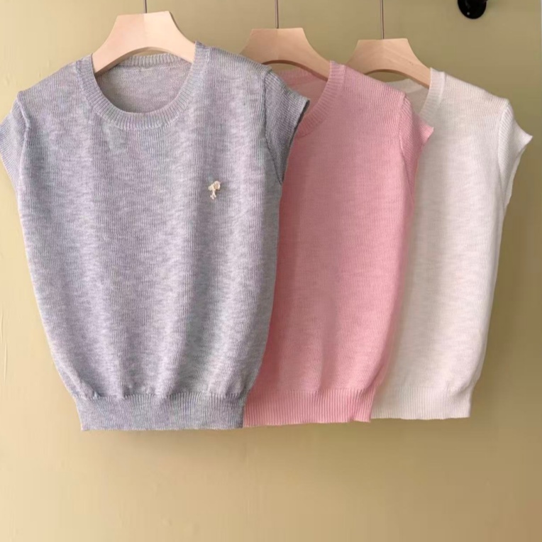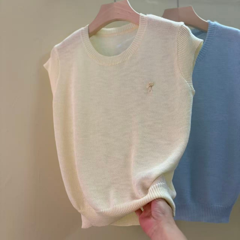 mz 반팔 니트 스웨터 여성 26 여름 질감 센스 부드러운 찹쌀 라운드 넥 슬림해 보이는 느긋한 센스 통기성 맨위