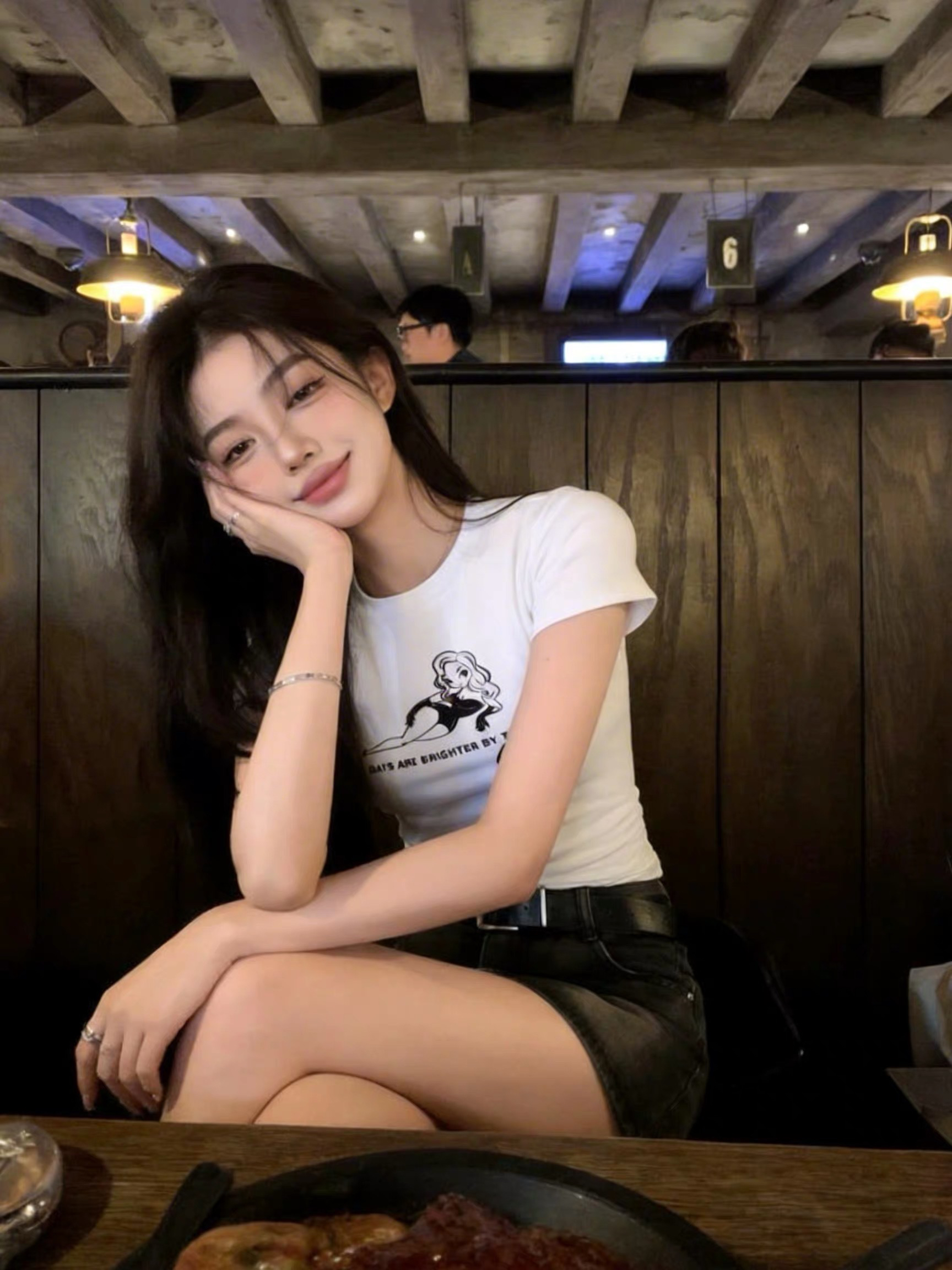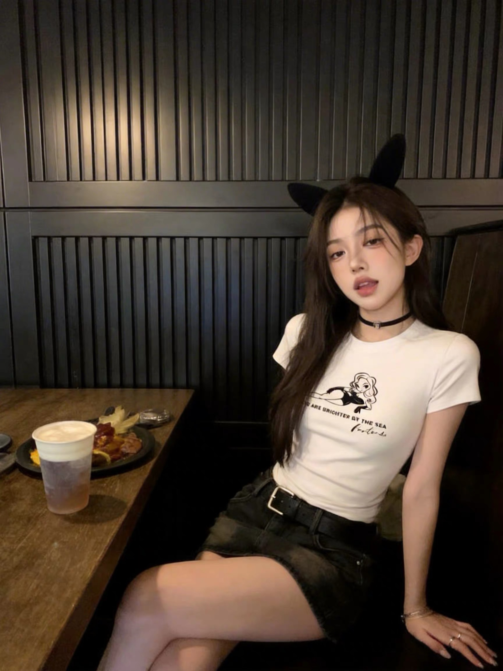 2026 한 부서 소녀 유니콘 참고 반팔 티셔츠 여성 여름 레이스 밑단 몸매 가꾸기 슬림해 보이는 쇼트 스타일 맨위