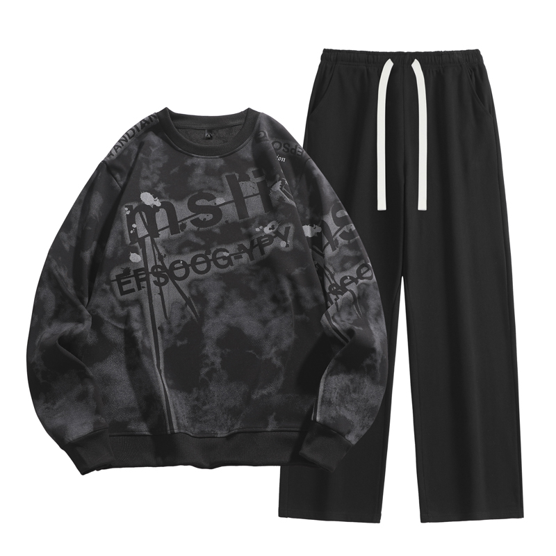 국경 간 봄 가을 겨울 일본식 미니멀리즘 캐주얼 세트 남성 조수 브랜드 루즈핏 다용도 운동 프린트 긴팔 투피스 세트