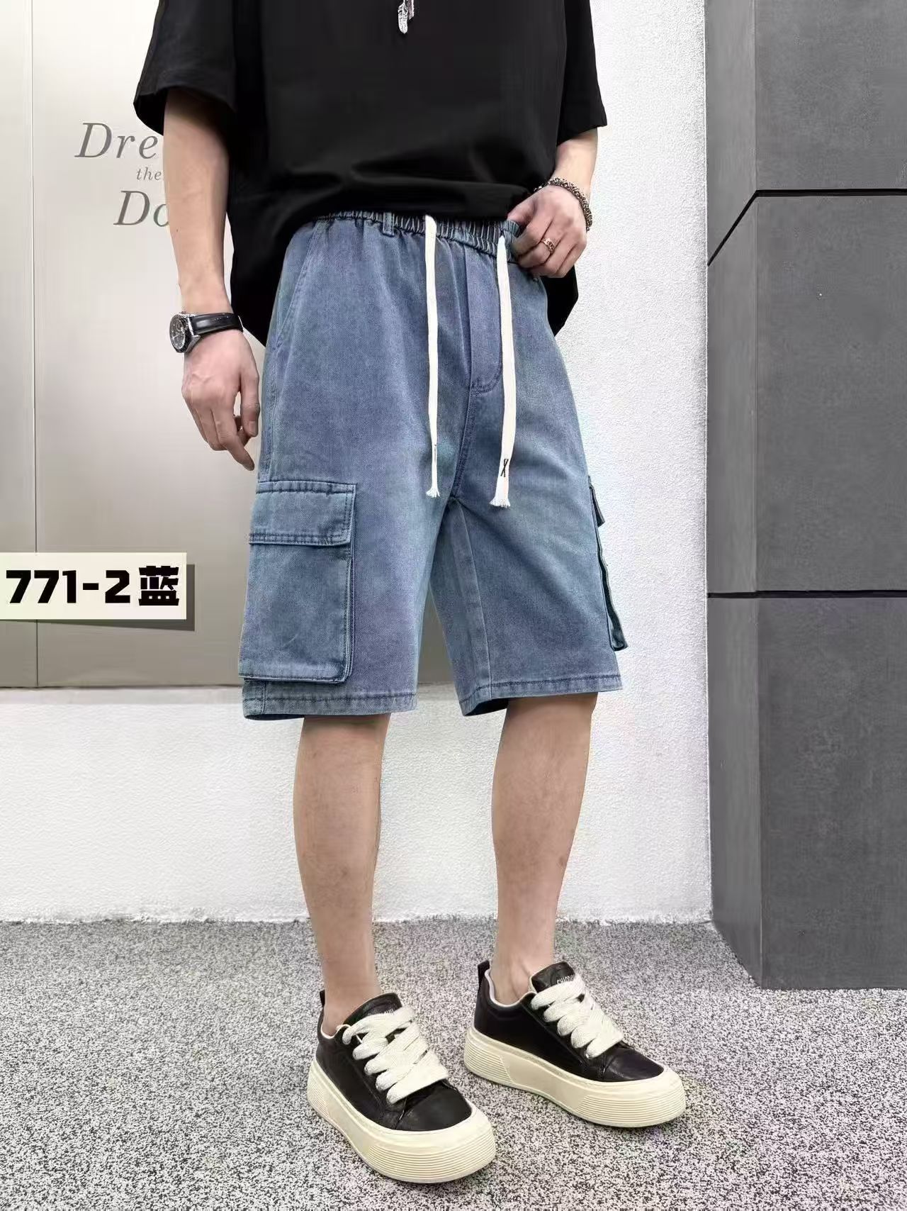 국경 간 물리적 저장소 높은 품질 남성 새로운 워시 물 청바지 여름 캐주얼 루즈핏 트렌드 워크웨어 반바지