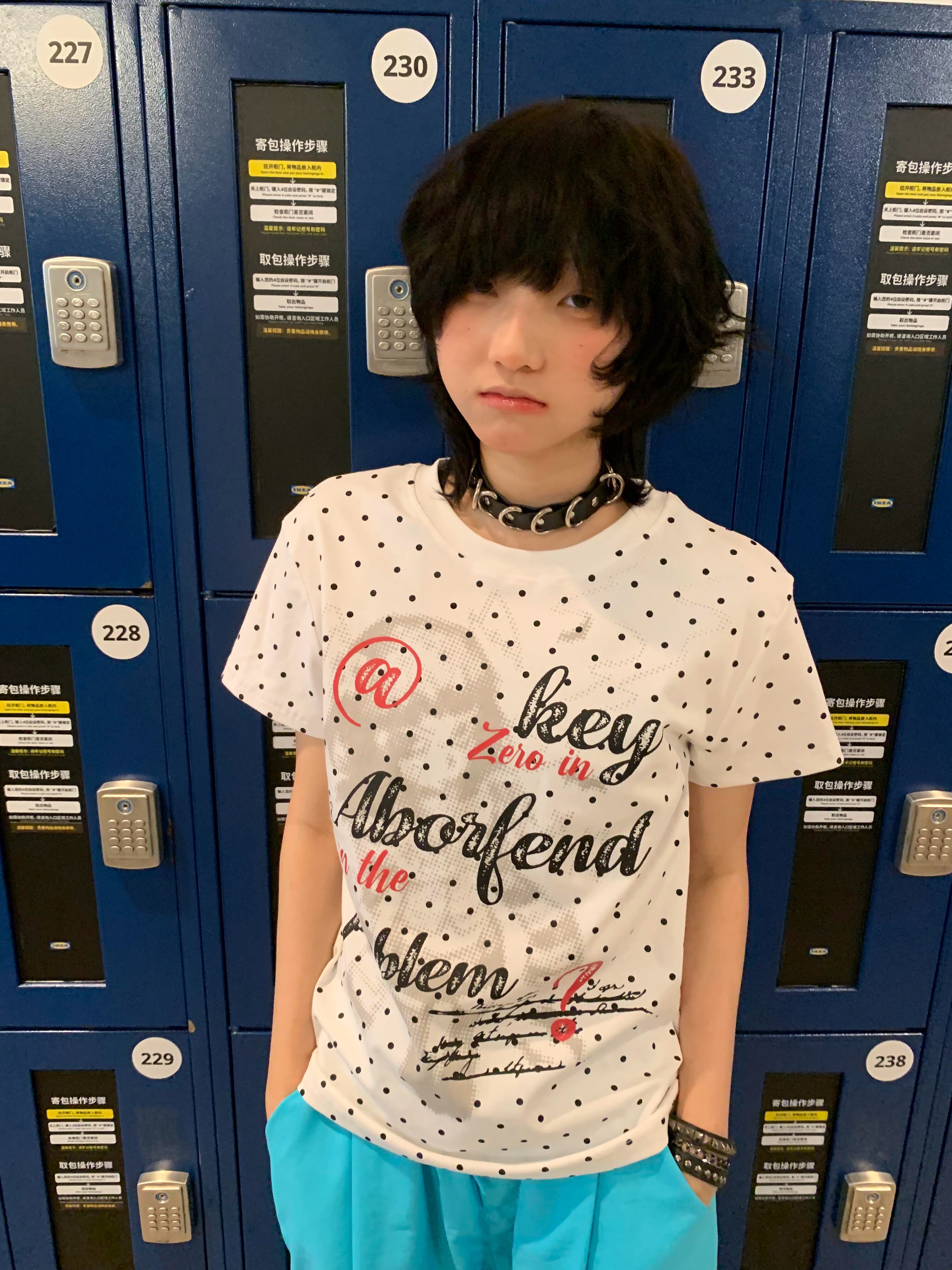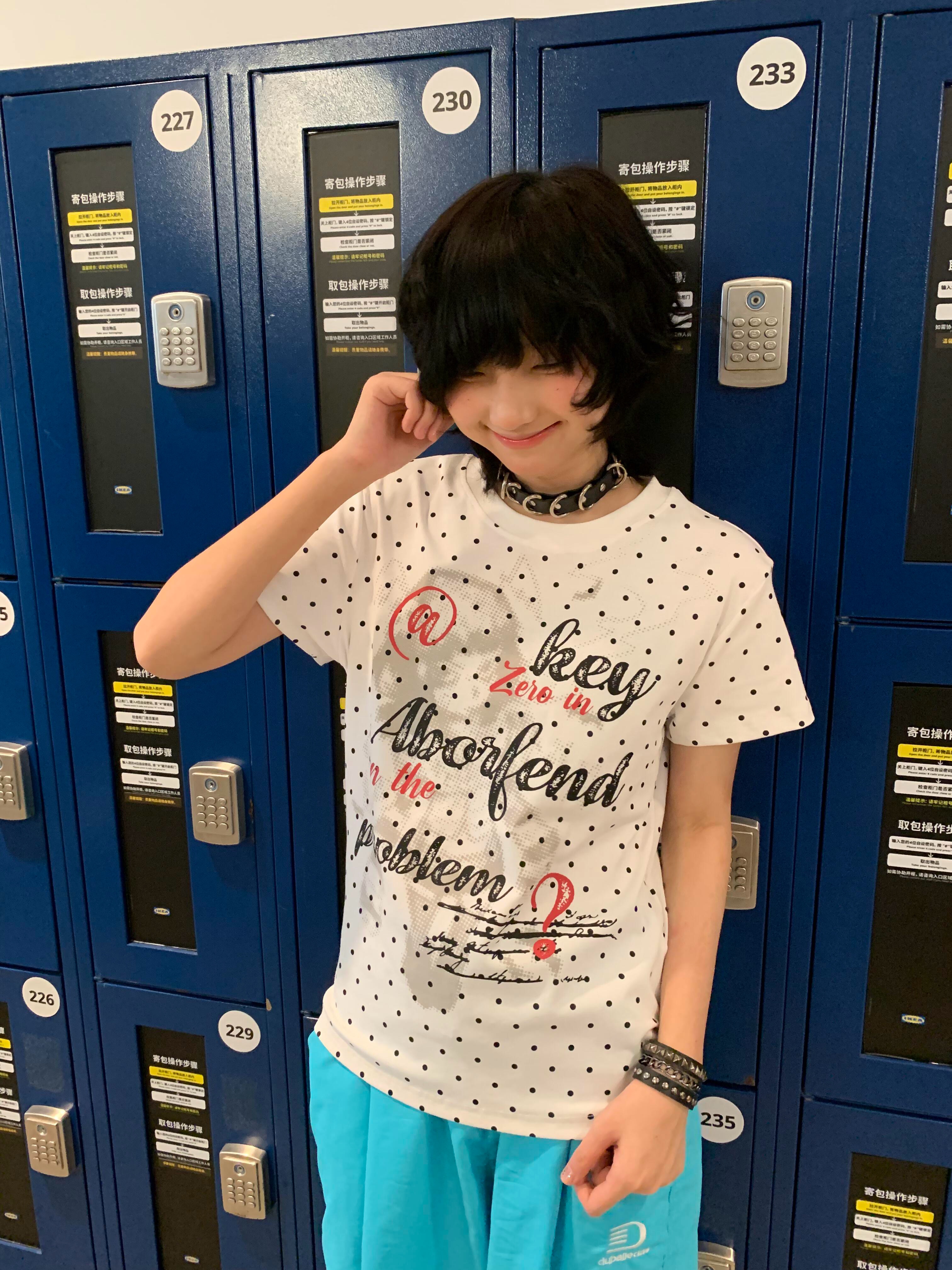 1 1 순면 V넥 도트 무늬 반팔 긍정적 인 어깨 일반 섹션 반팔 높은 탄력성 새로운 여름 맨위