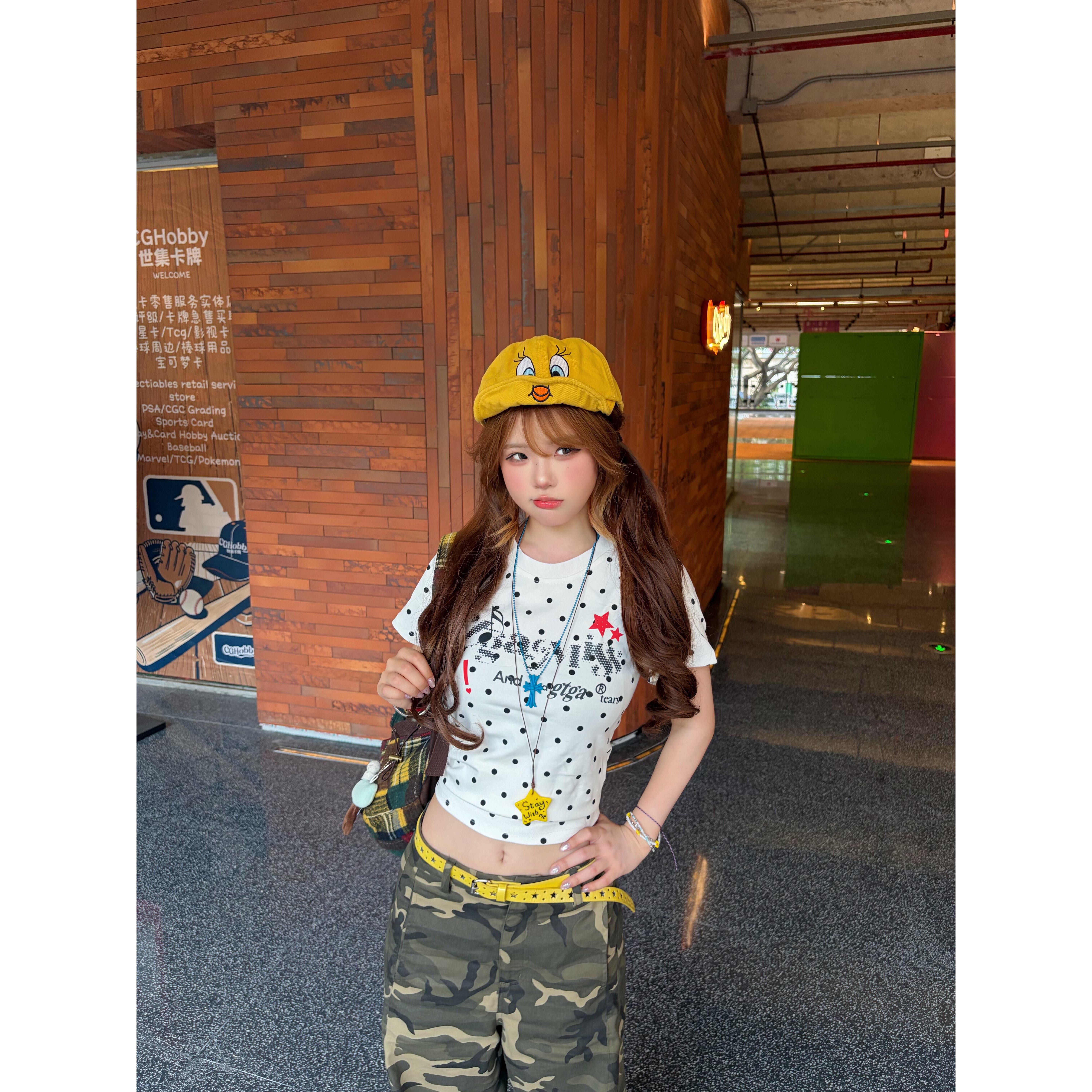 2026 한 부서 소녀 유니콘 참고 반팔 티셔츠 여성 여름 레이스 밑단 몸매 가꾸기 슬림해 보이는 쇼트 스타일 맨위
