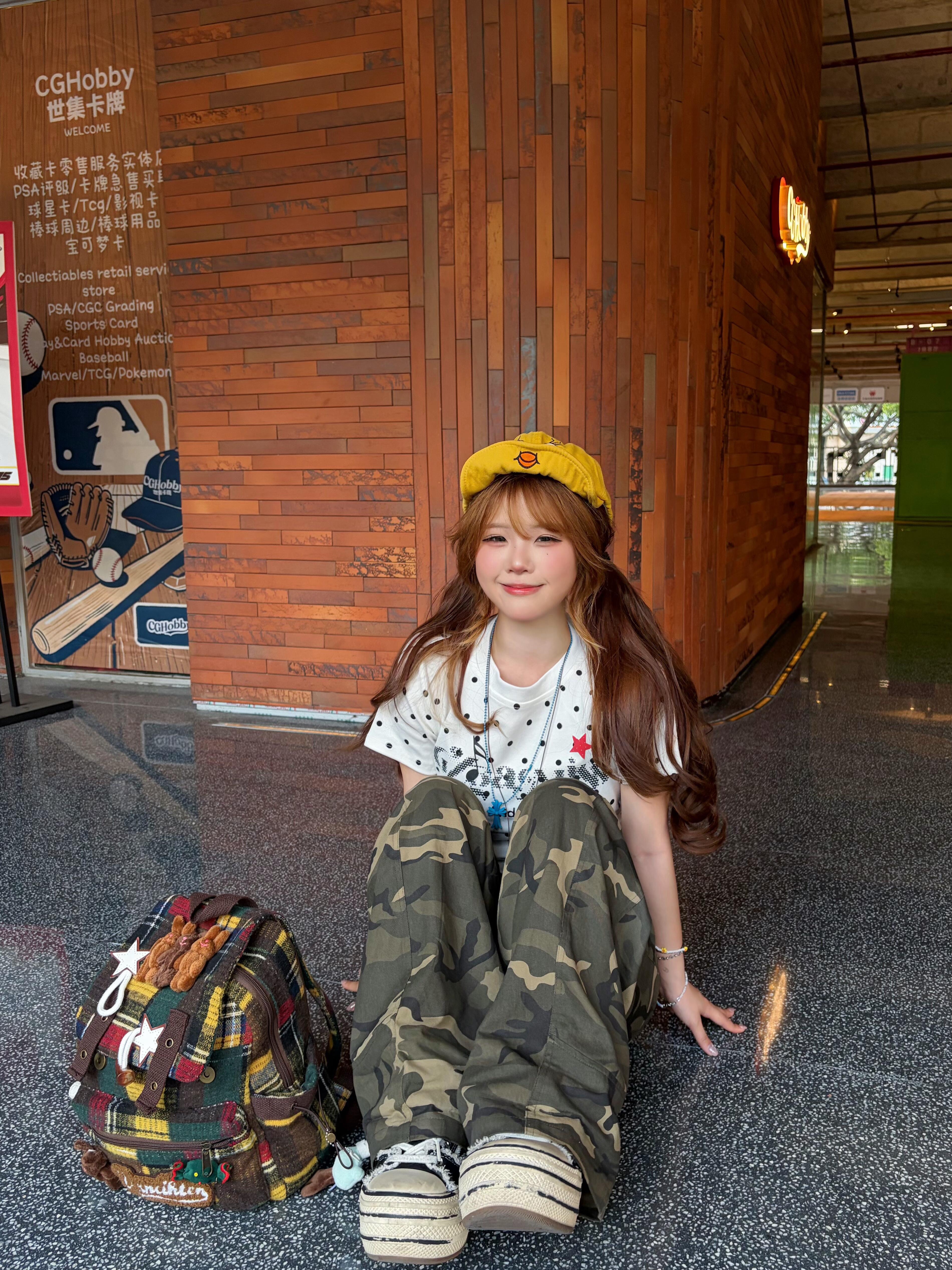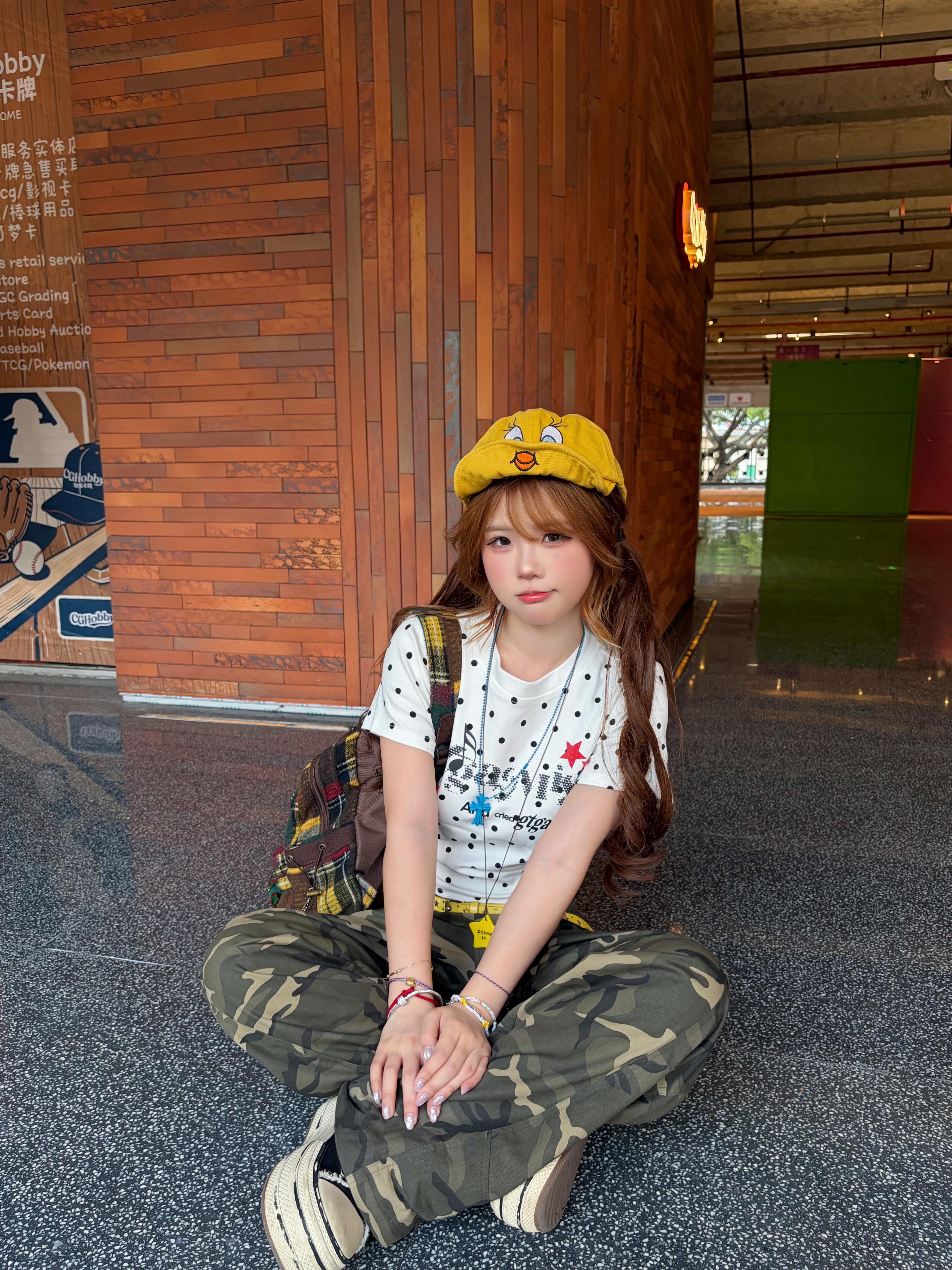아메리칸 핫걸 디자인 작은 대중 전체 인쇄 보조 요소 도트 무늬 픽셀 애니메이션 패치워크 긴팔 티셔츠 몸매 가꾸기 슬림해 보이는 ins