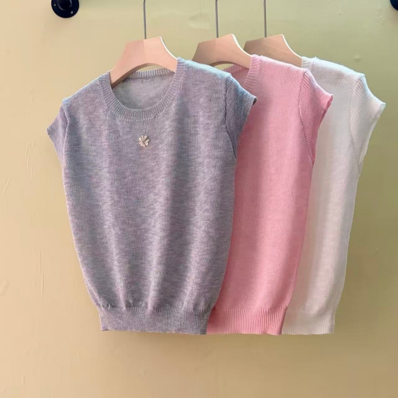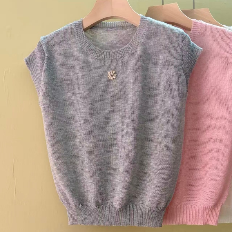 0262 여름 얇고 가벼운 통기성 오래된 돈 라운드 넥 슬림해 보이는 반팔 니트 스웨터