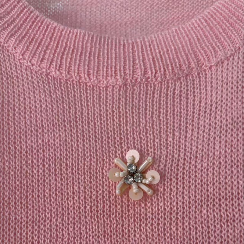 mz2026 여름 새로운 라운드 넥 니트 티셔츠 비즈 박기 반팔 맨위