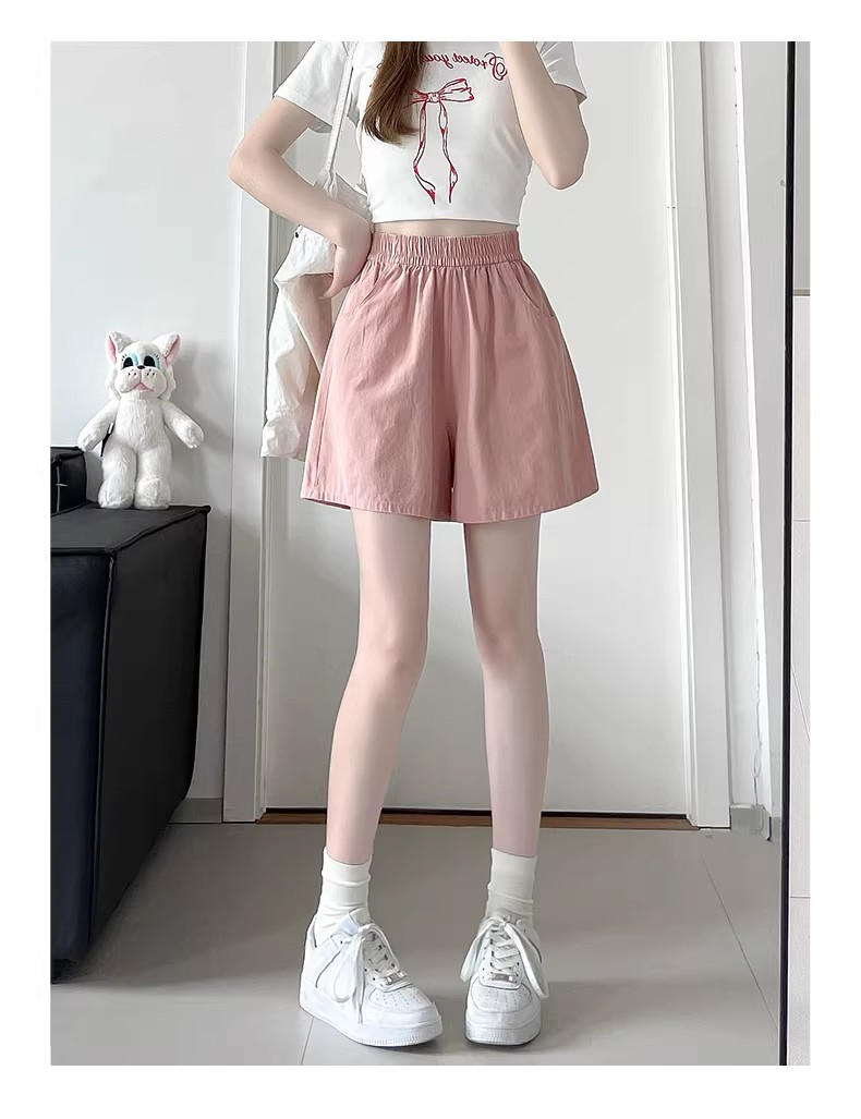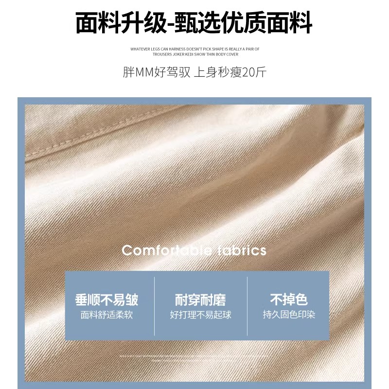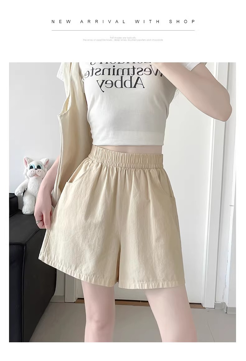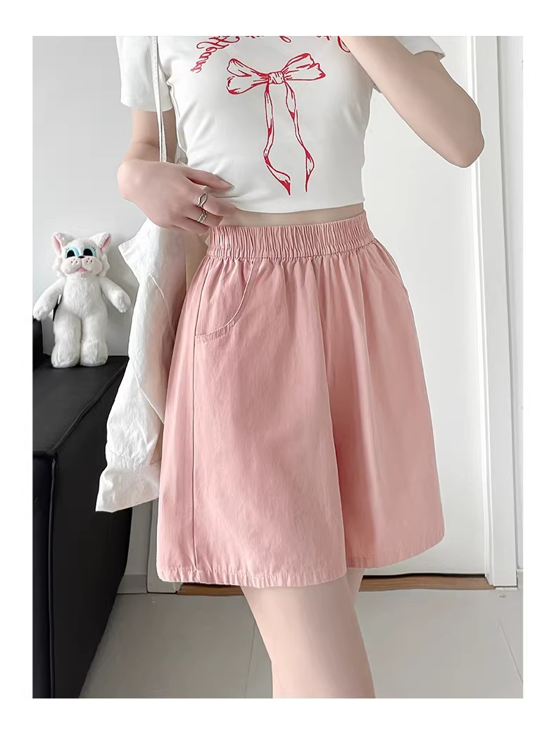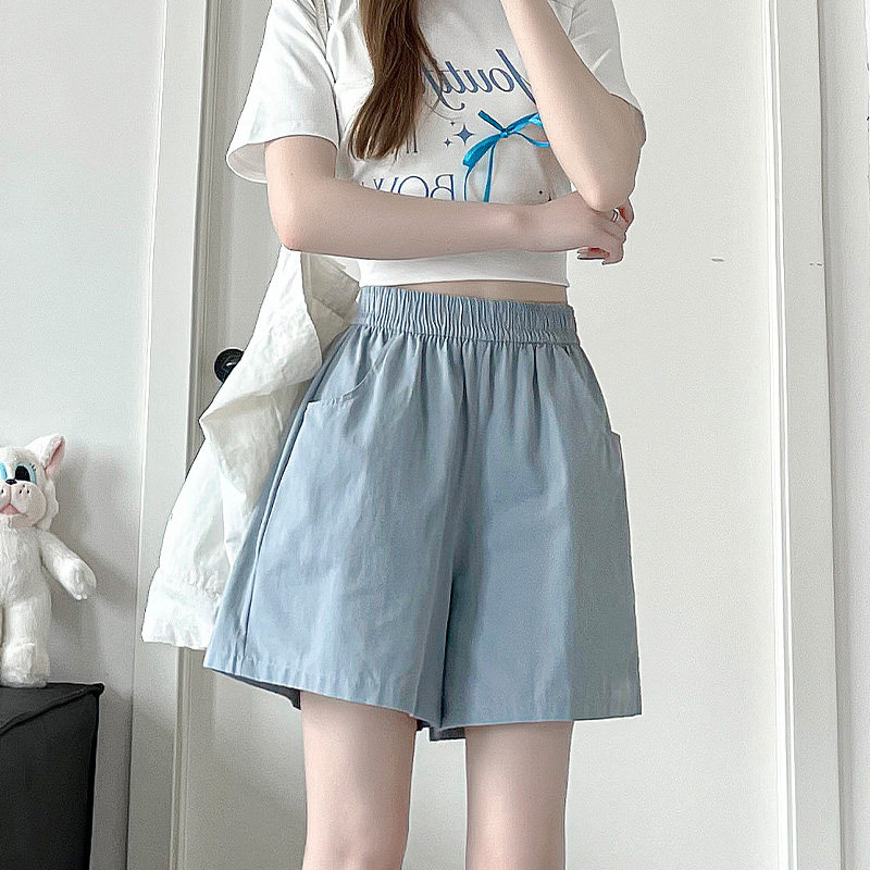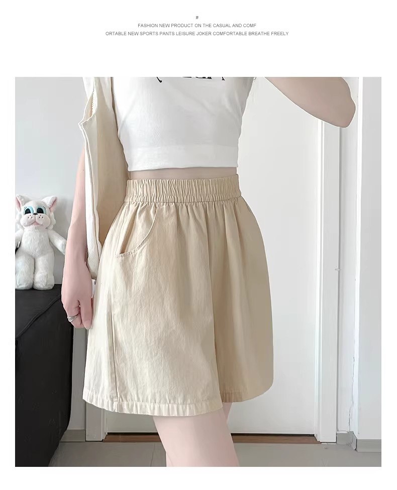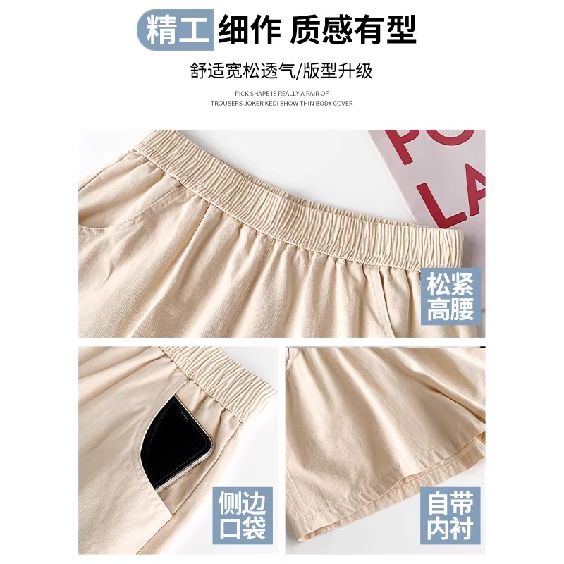 순면 일본식 워크웨어 반바지 여성 여름 얇은 스타일 하이웨이스트 다용도 슬림해 보이는 외출용 한 마디 와이드 레그 팬츠 캐주얼 바지