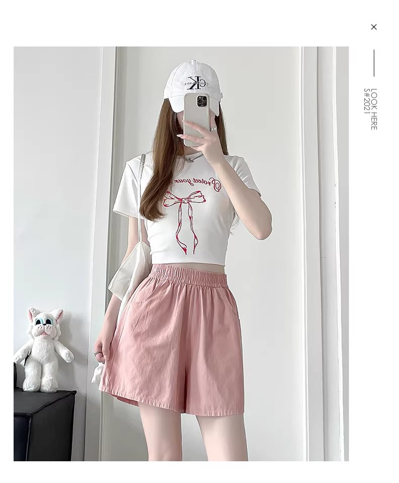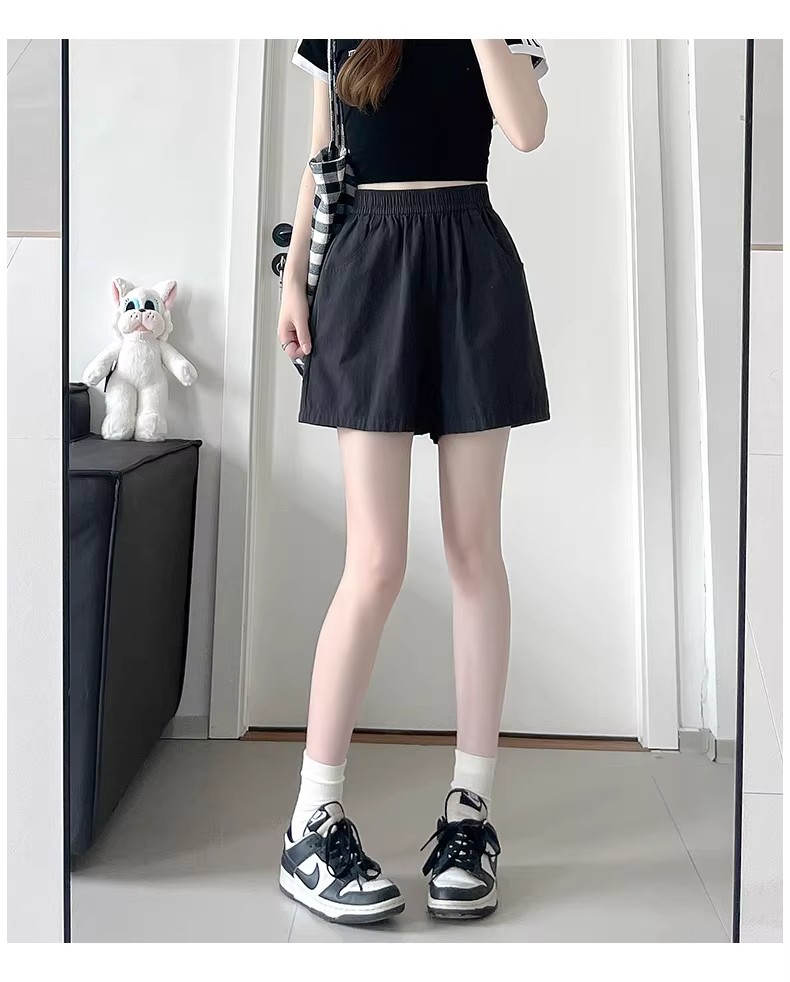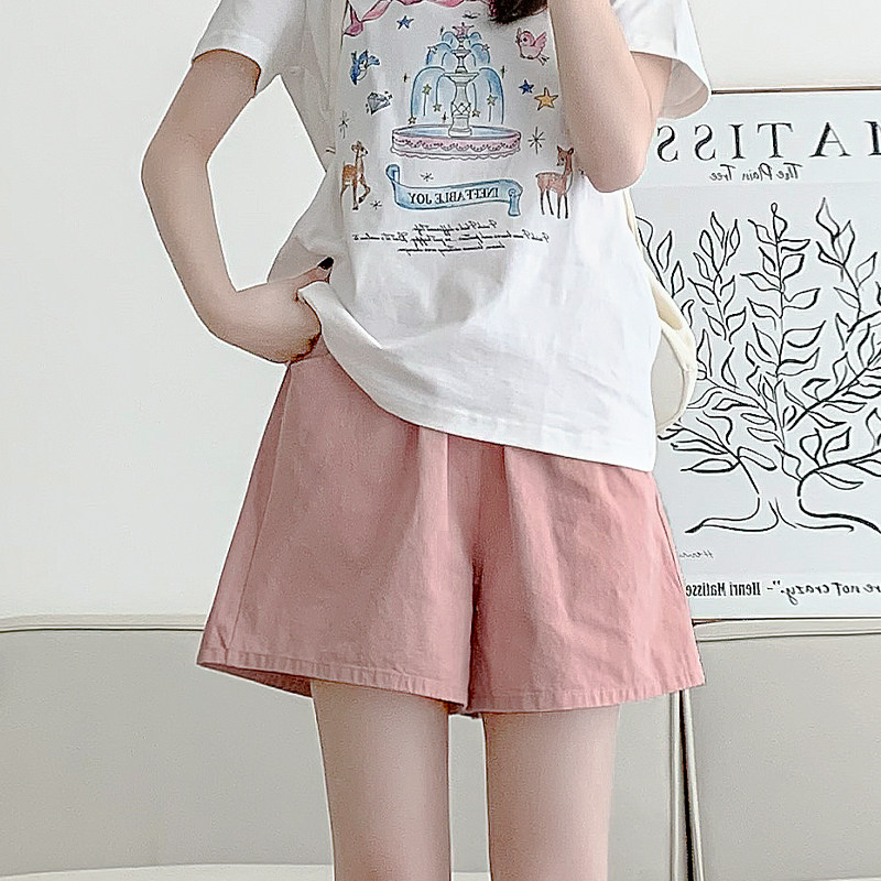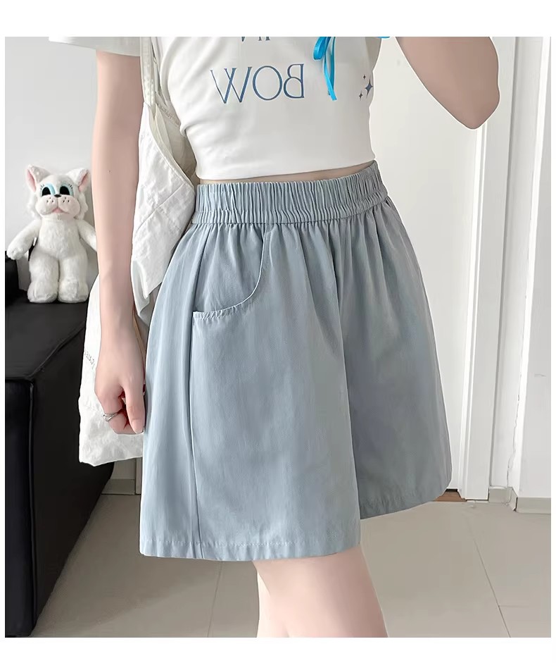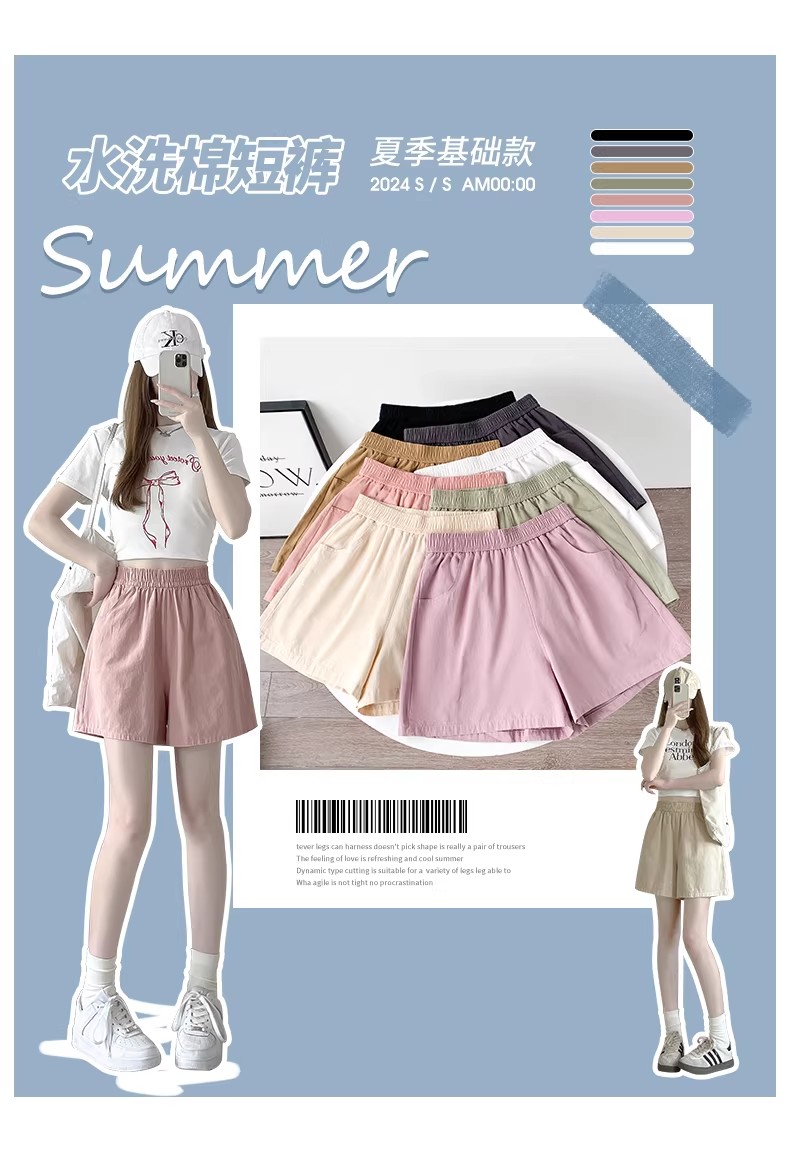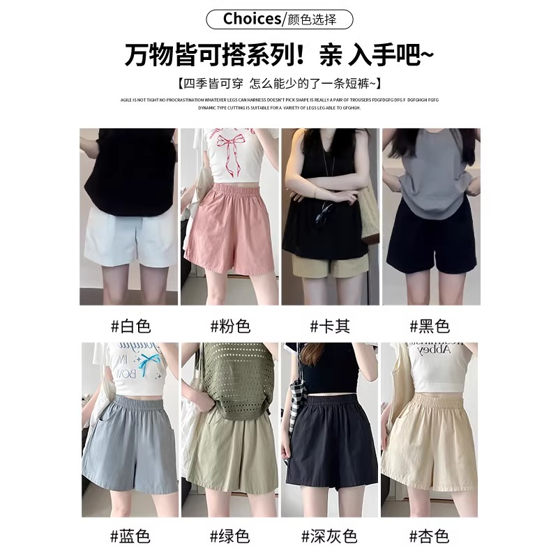순면 일본식 워크웨어 반바지 여성 여름 얇은 스타일 하이웨이스트 다용도 슬림해 보이는 외출용 한 마디 와이드 레그 팬츠 캐주얼 바지
