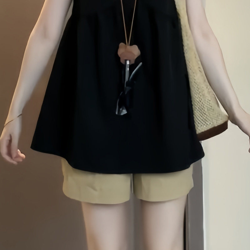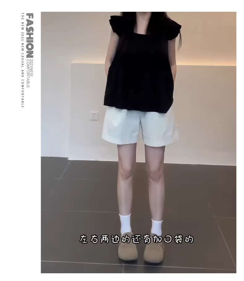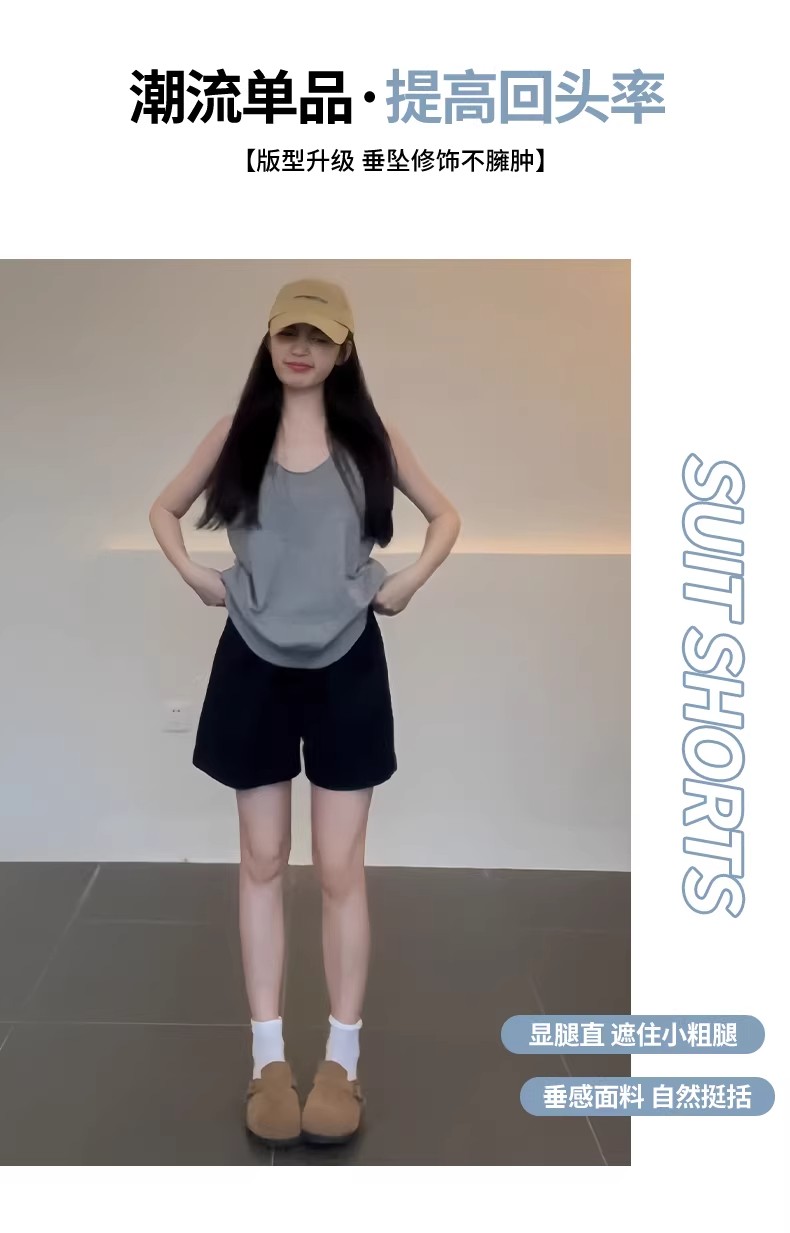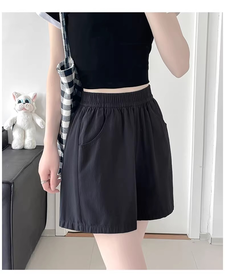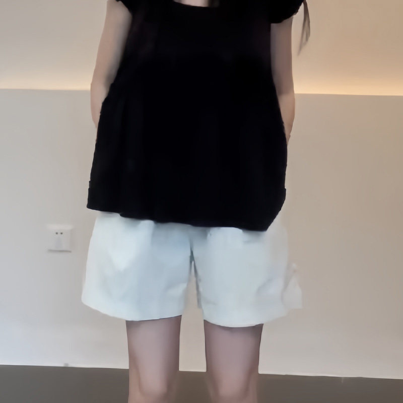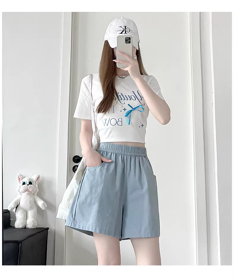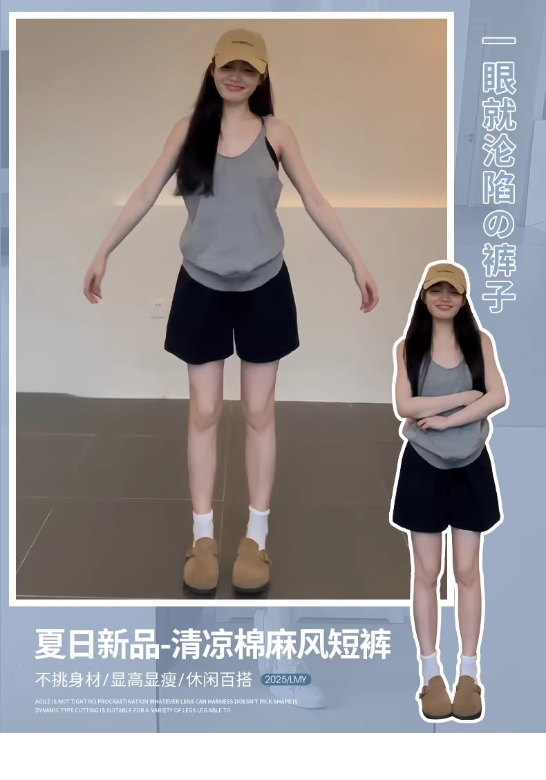 순면 일본식 워크웨어 반바지 여성 여름 얇은 스타일 하이웨이스트 다용도 슬림해 보이는 외출용 한 마디 와이드 레그 팬츠 캐주얼 바지