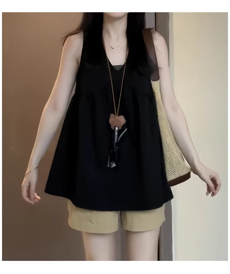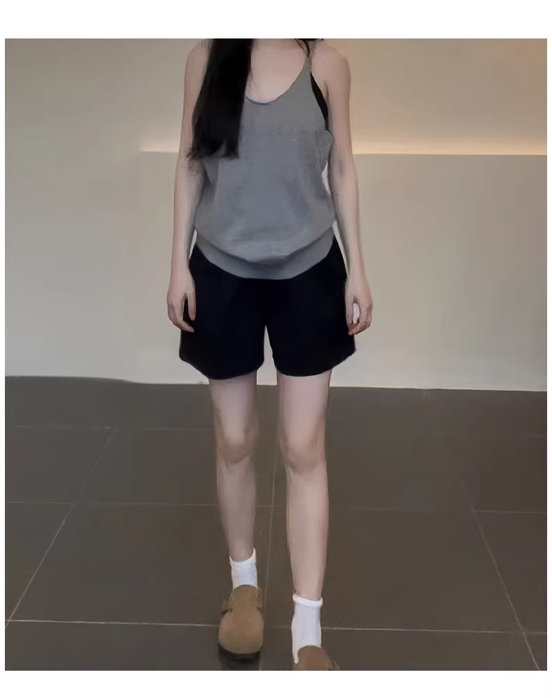 와 사고 방식 비스듬한 어깨 배색 조끼 다용도 배색 티셔츠 여성 여름 알파벳 자수 몸매 가꾸기 민소매 맨위 여성