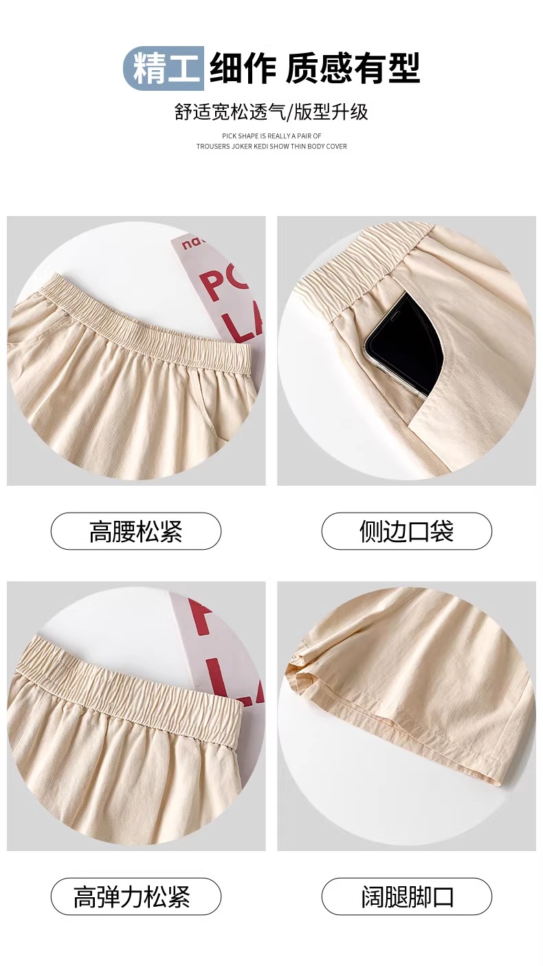 해군 주간 실크 아마 바지 아이들 여름 얇은 스타일 하이웨이스트 슬림해 보이는 모통이 칼 바지 루즈핏 캐주얼 면 린넨 바지 아이들