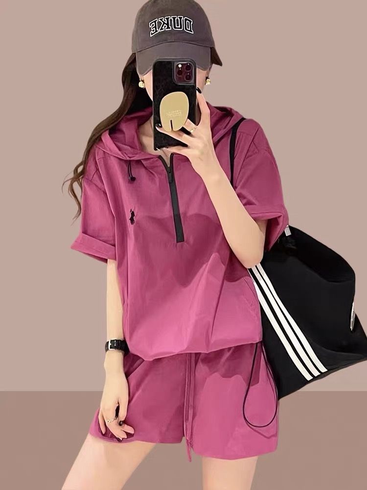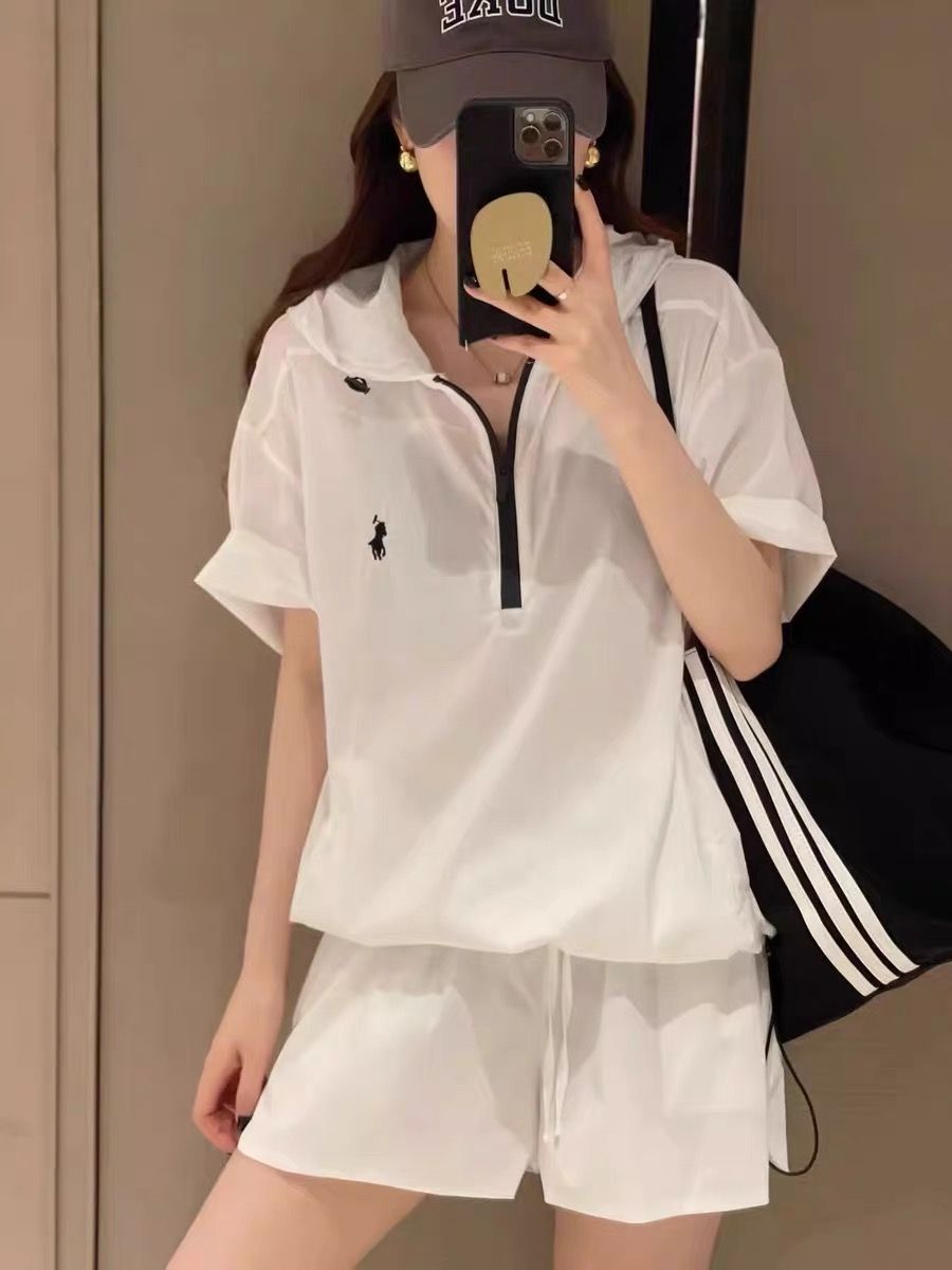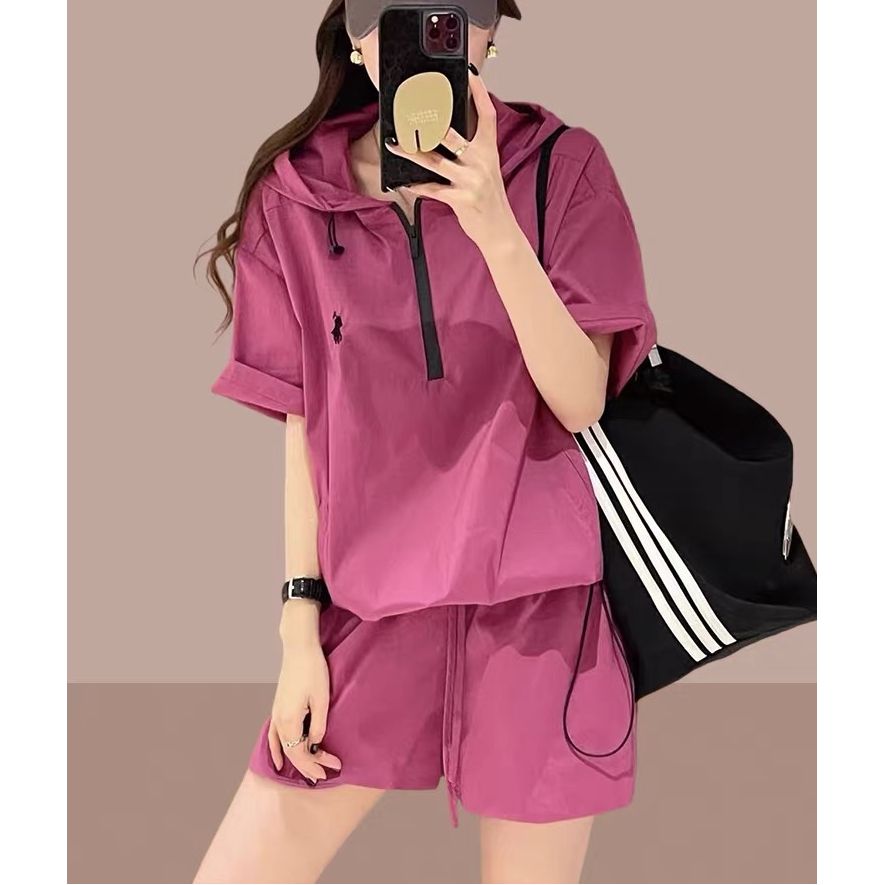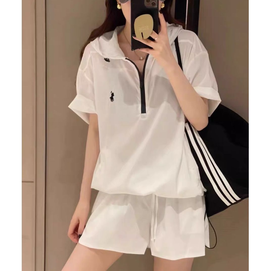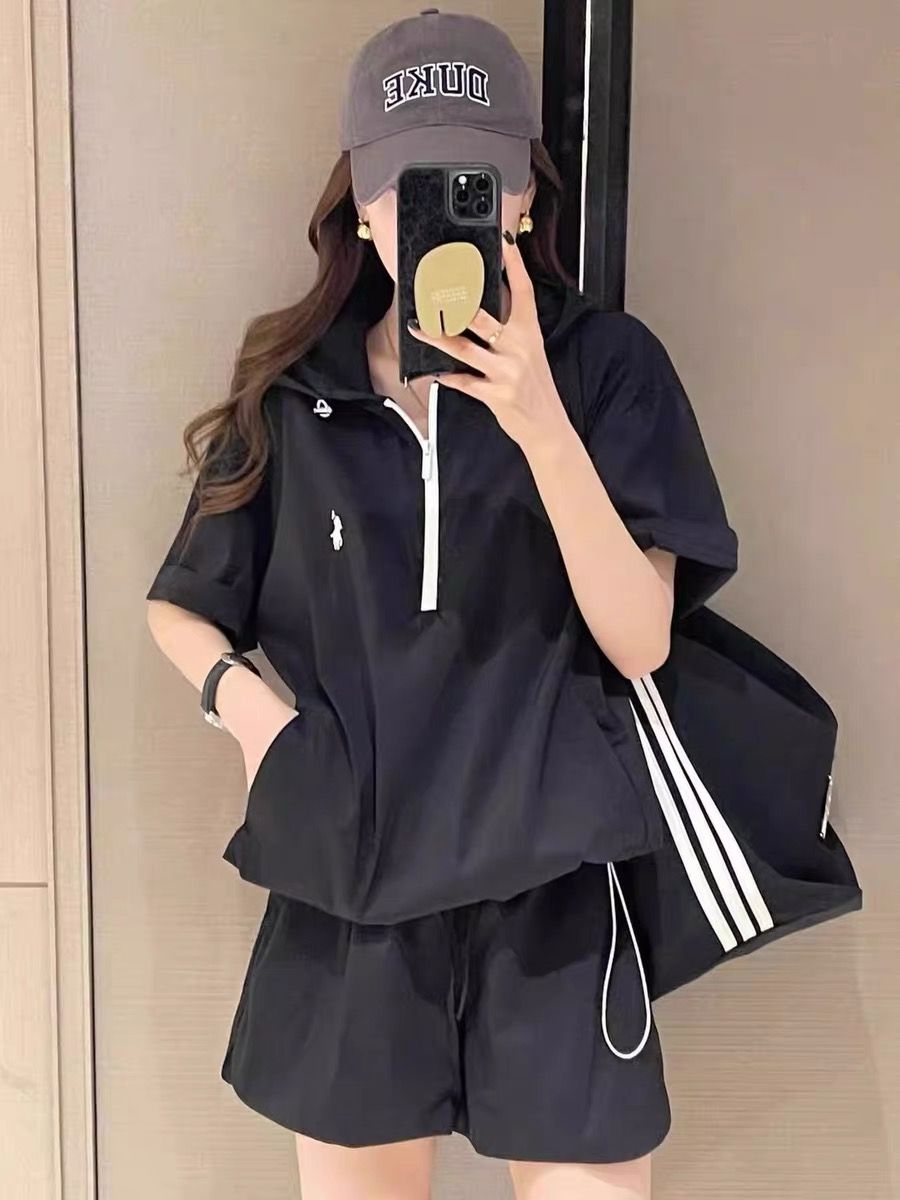 한국 chic 여름 미니멀리즘 품격 펌프 로프 후드 지퍼 자외선 차단 재킷 레이스업 하이웨이스트 운동 반바지 여성