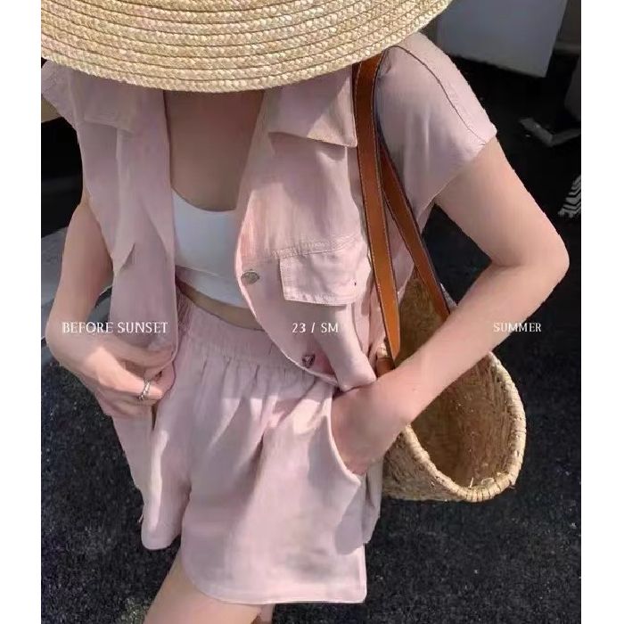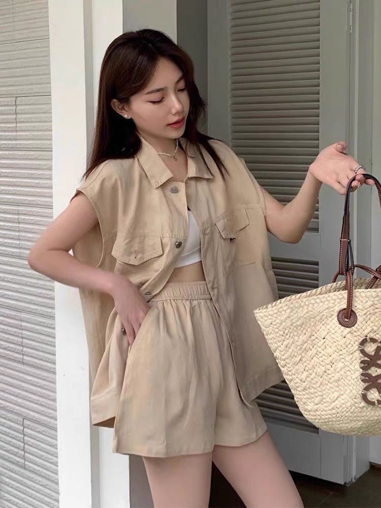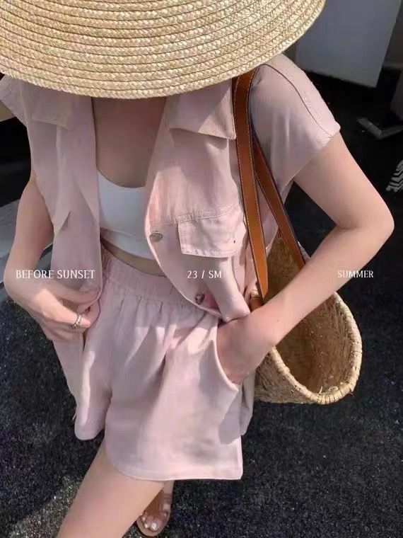 프랑스식 작은 대중 디자인 센스 캐주얼 민소매 슬립 맨위 반바지 세트 2026 여름 새로운 Chic 투피스 세트