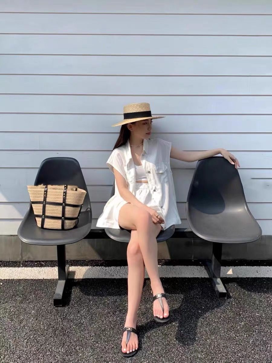 한국 chic 여름 새로운 연령 감소 모방 데님 캐미솔 캐주얼 다용도 허리밴드 스트레이트 팬츠 세트