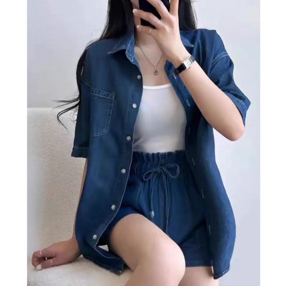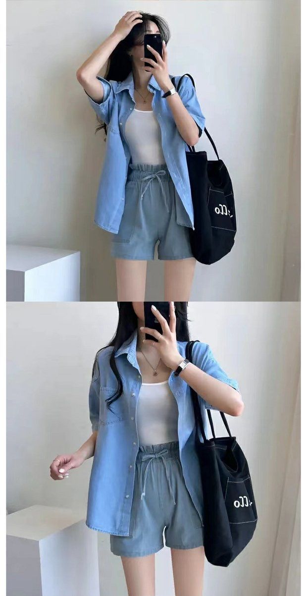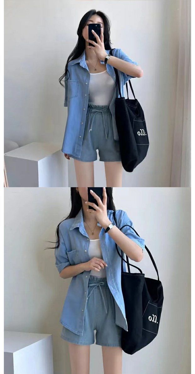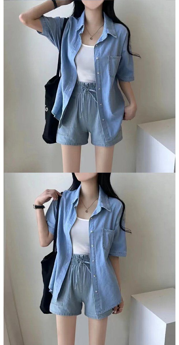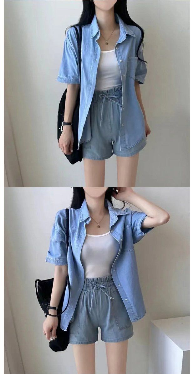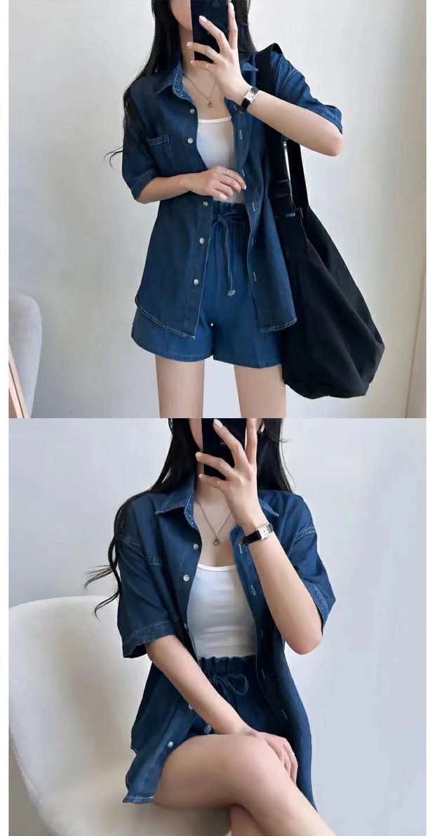 26 빅 사이즈 자수 모방 데님 세트 여름 오픈 가디건 맨위 지방 mm 넓은 다리가 짧다. 바지 마이크로 지방 착용 가져 가라. 전체 집합