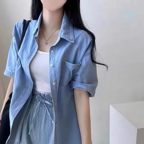 2026 새로운 레트로 폴로 칼라 여성 셔츠 외출용 다용도 한 바람 루즈핏 중간 길이 다용도 오픈 가디건 맨위