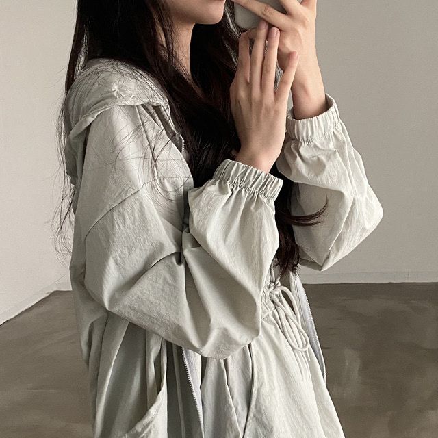 26 한국 chic 가을 레트로 항구 바람 스탠드 칼라 지퍼 디자인 루즈핏 캐주얼 다용도 긴팔 쇼트 스타일 여성 코트