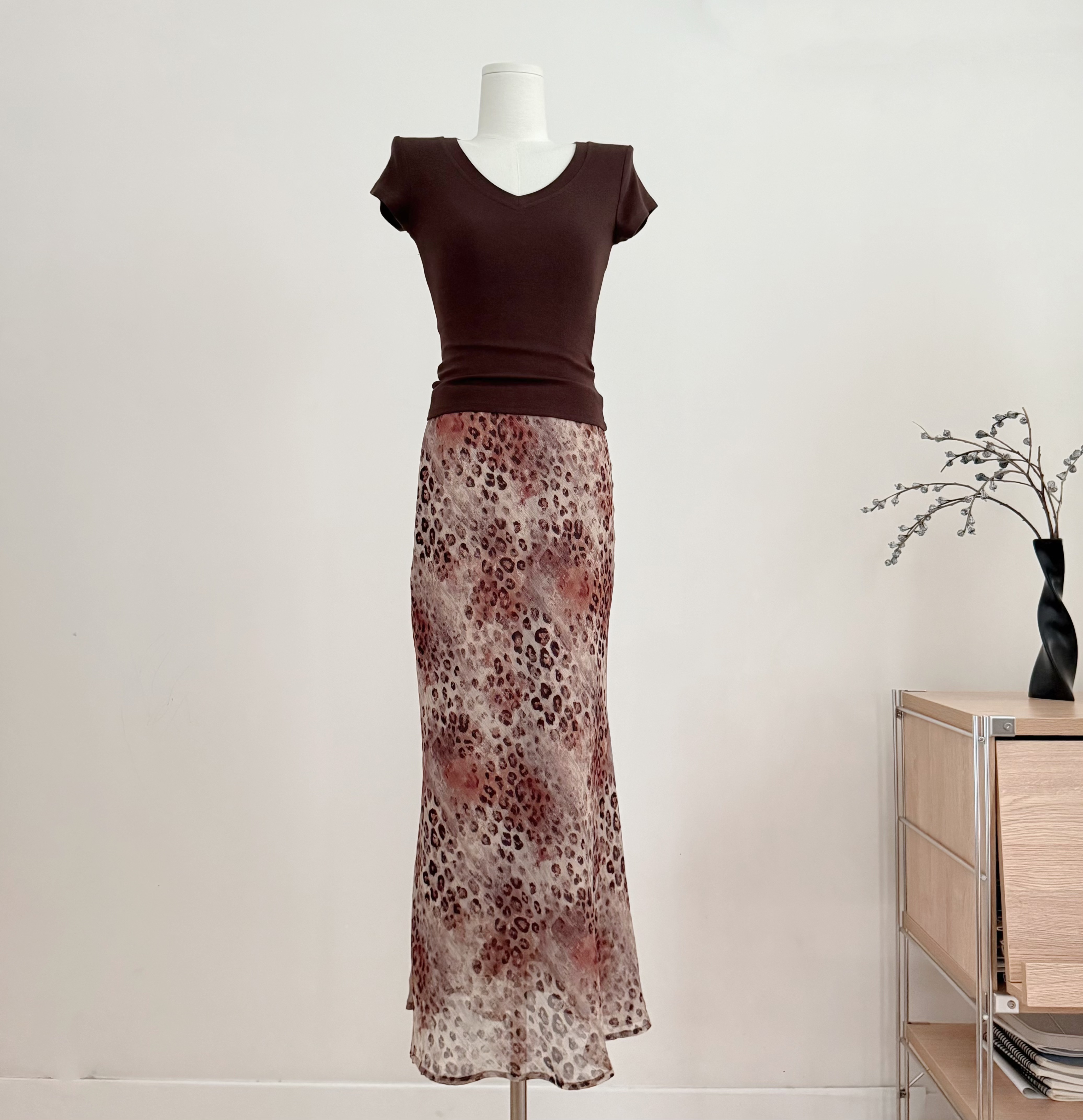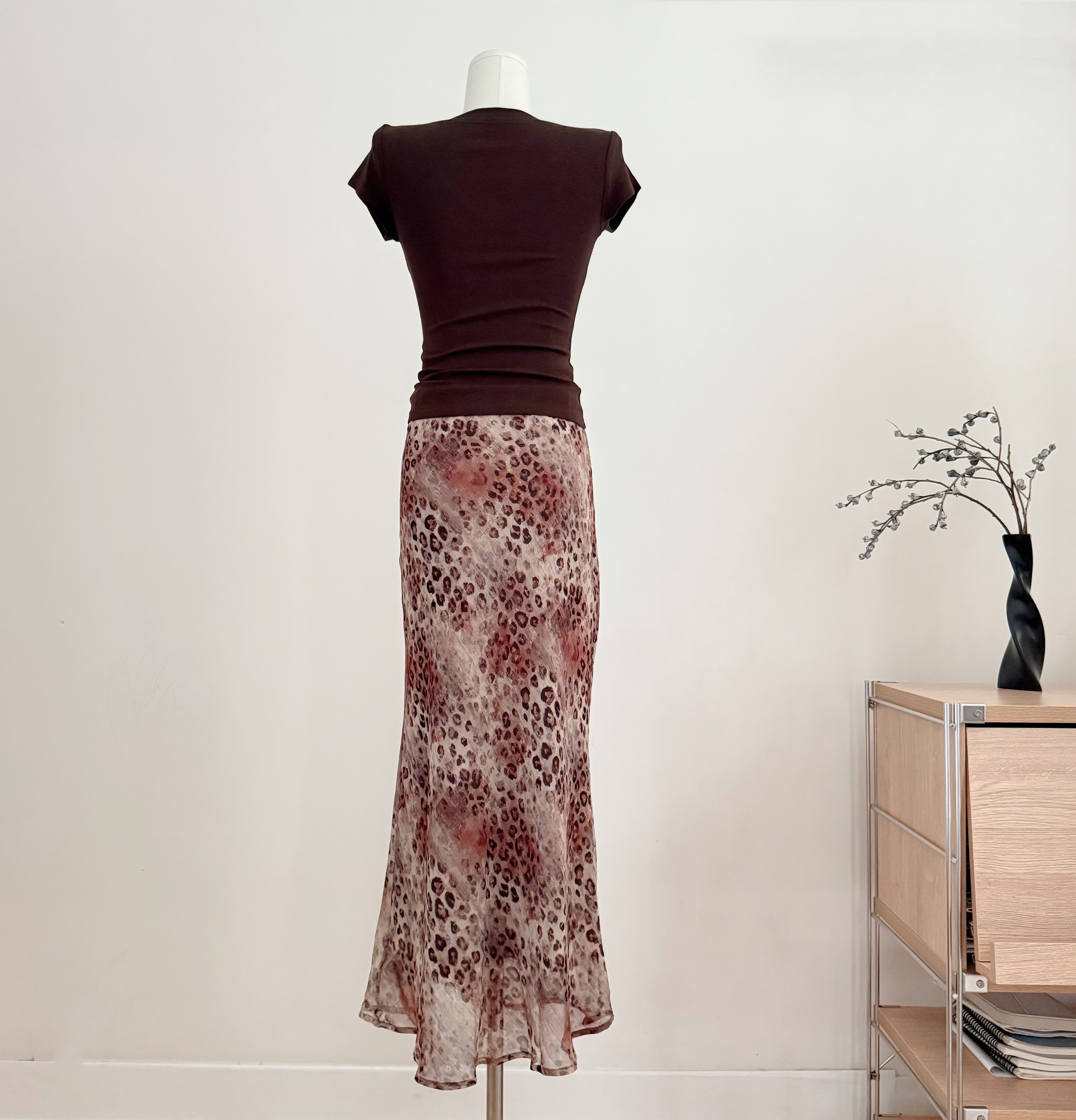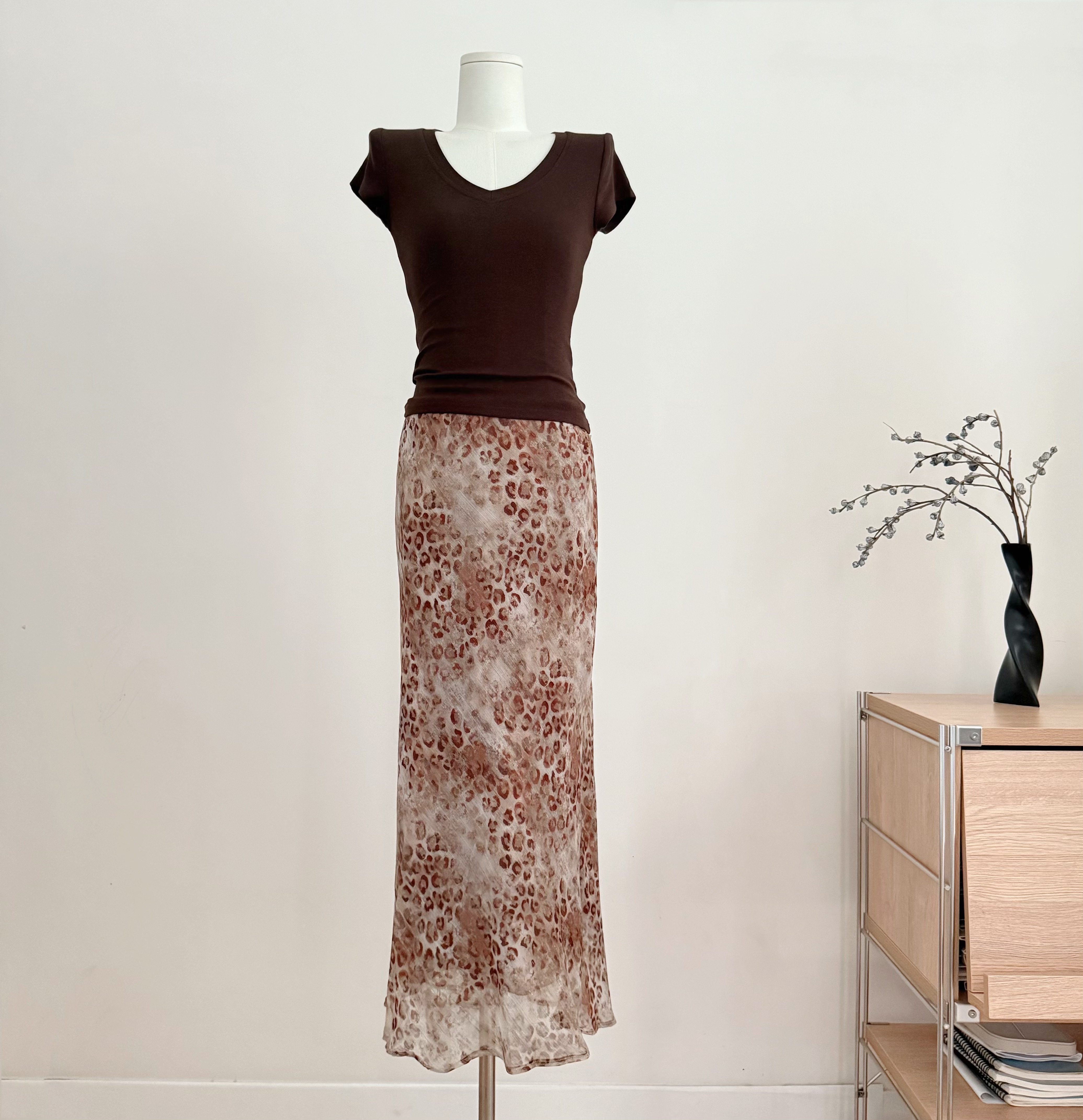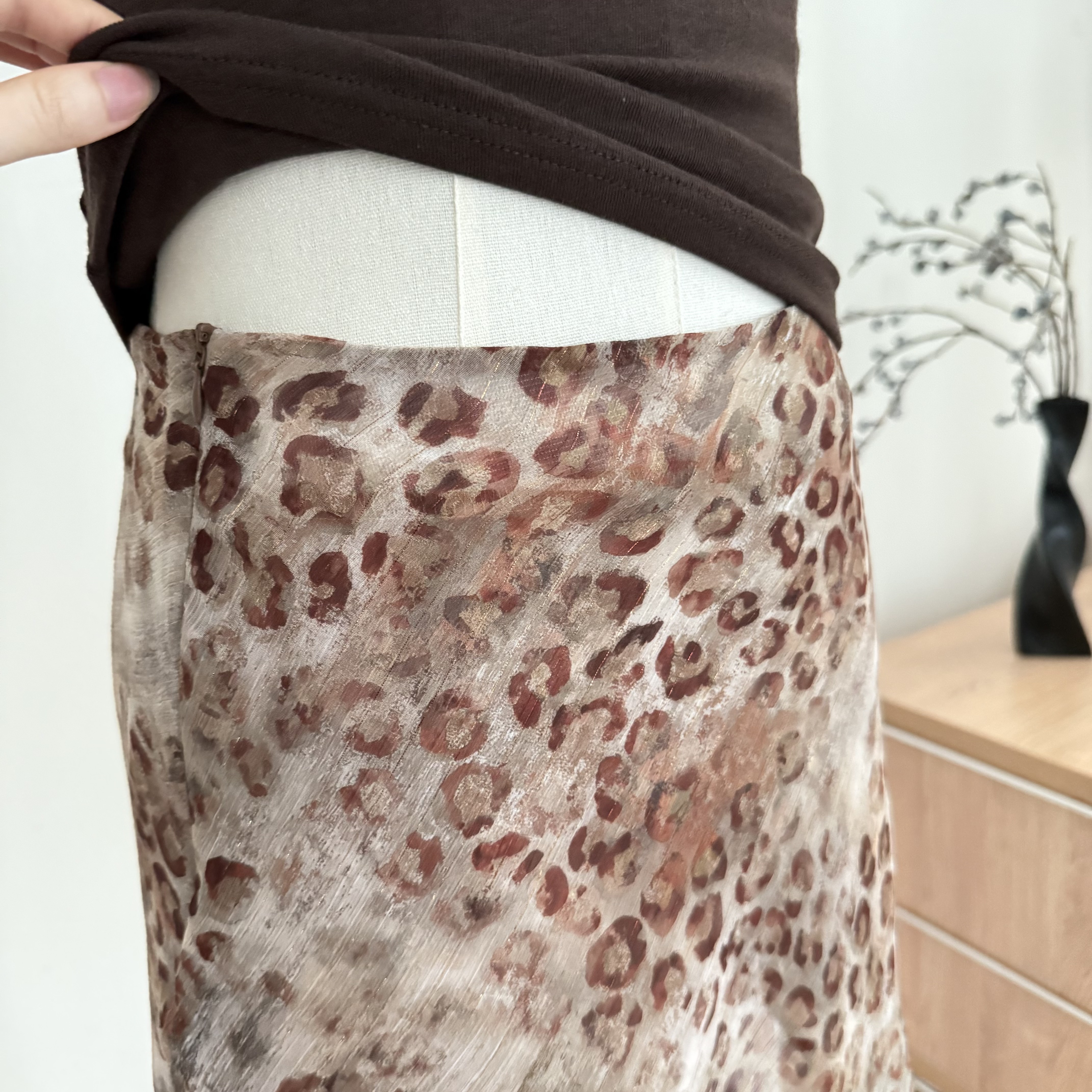 흔들어서 톤 simmyjoy 레오파드 무늬 스키니 바지 느긋한 질감 센스 프린트 레오파드 무늬 바지 루즈핏 슬림해 보이는 와이드 레그 팬츠